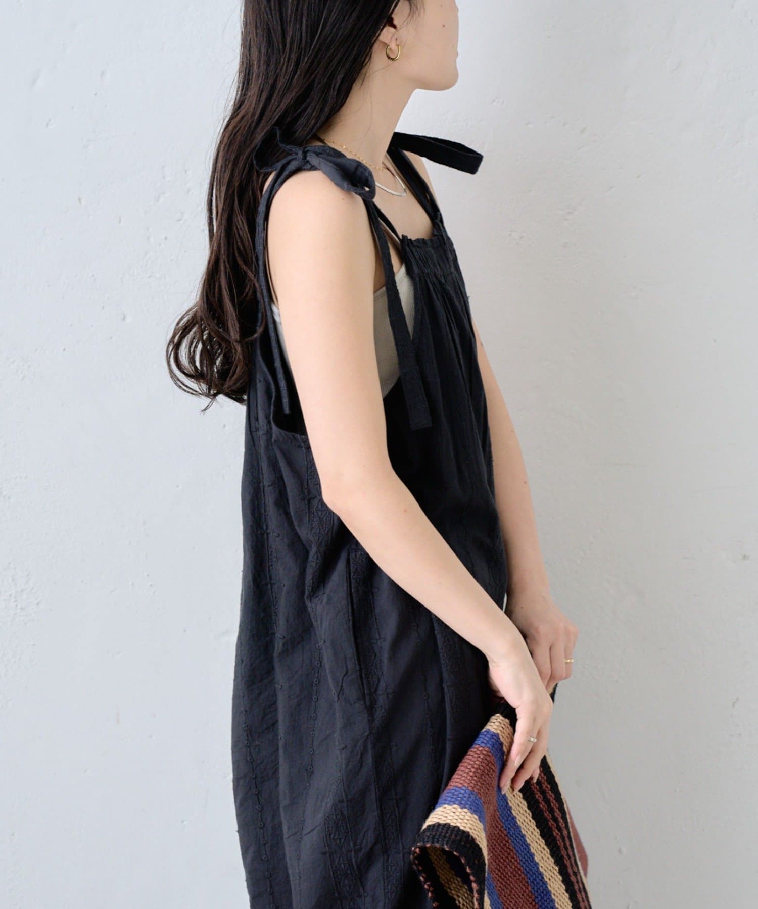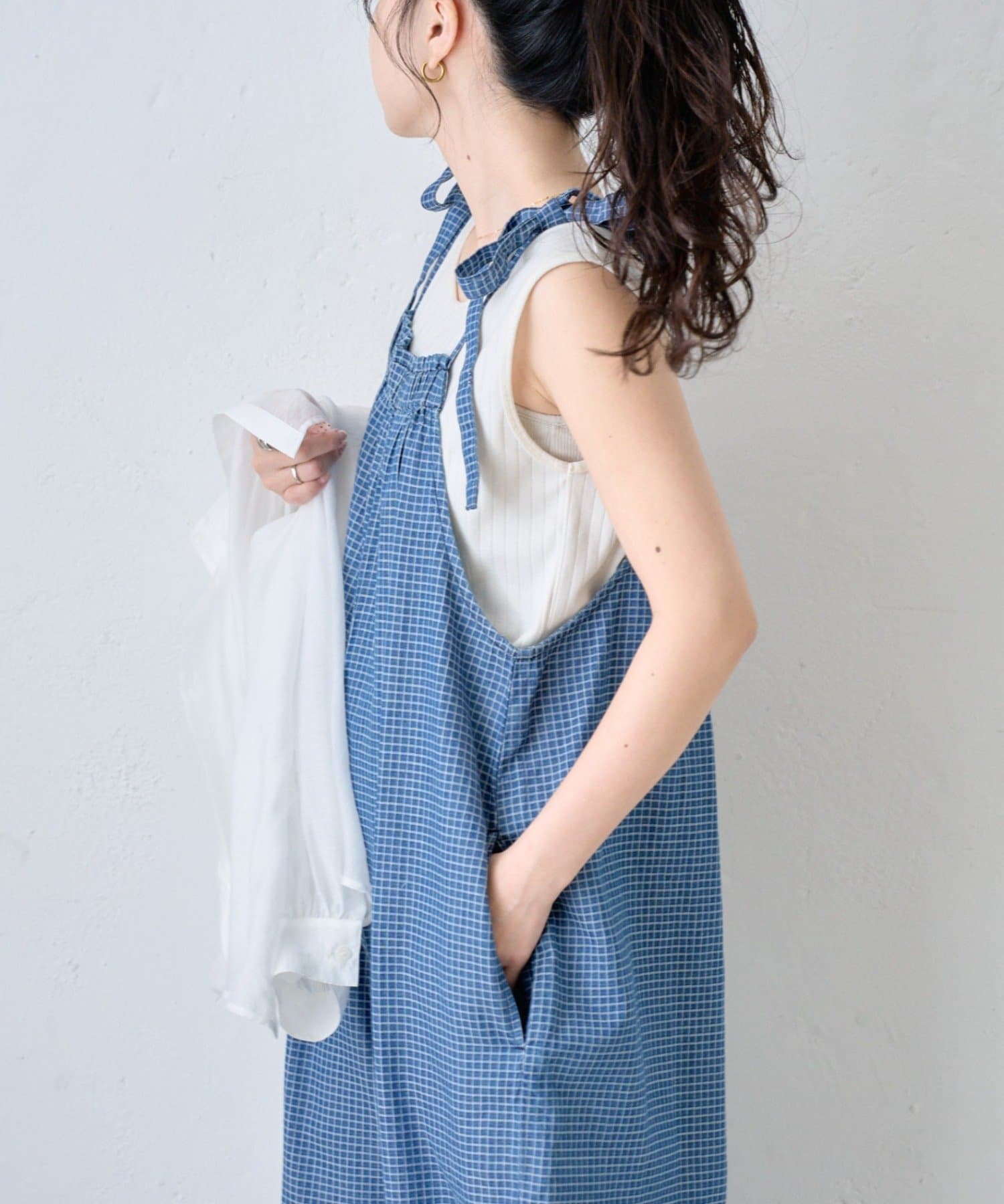 2サイズ展開で肩紐の結び具合で長さ調節もできる為、体型にあった着こなしが可能。
