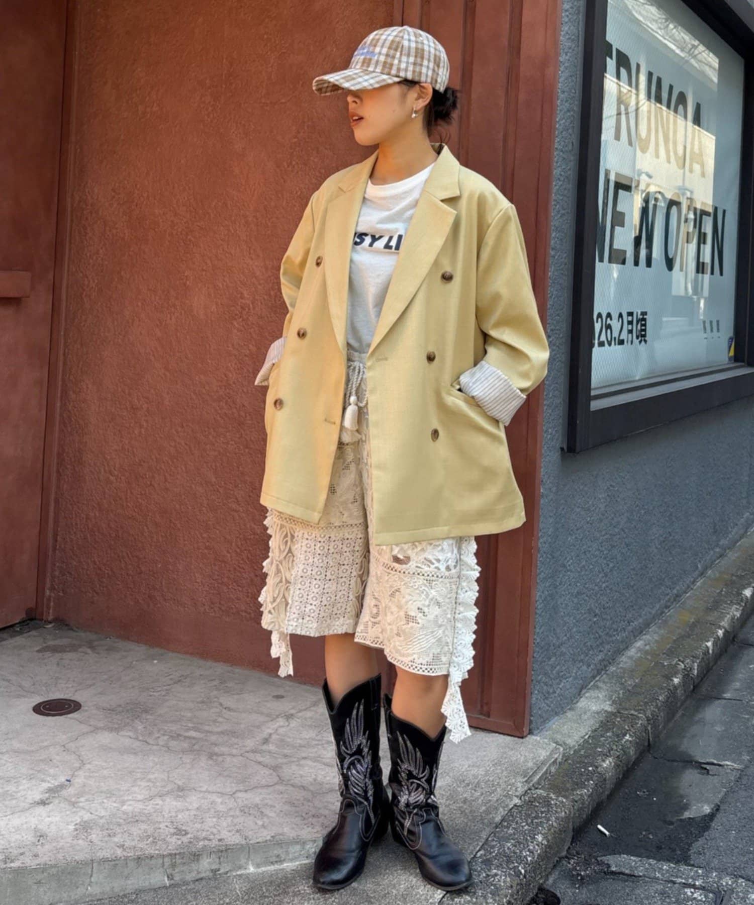 ジャケットを羽織れば、甘辛ミックススタイルも楽しめます。