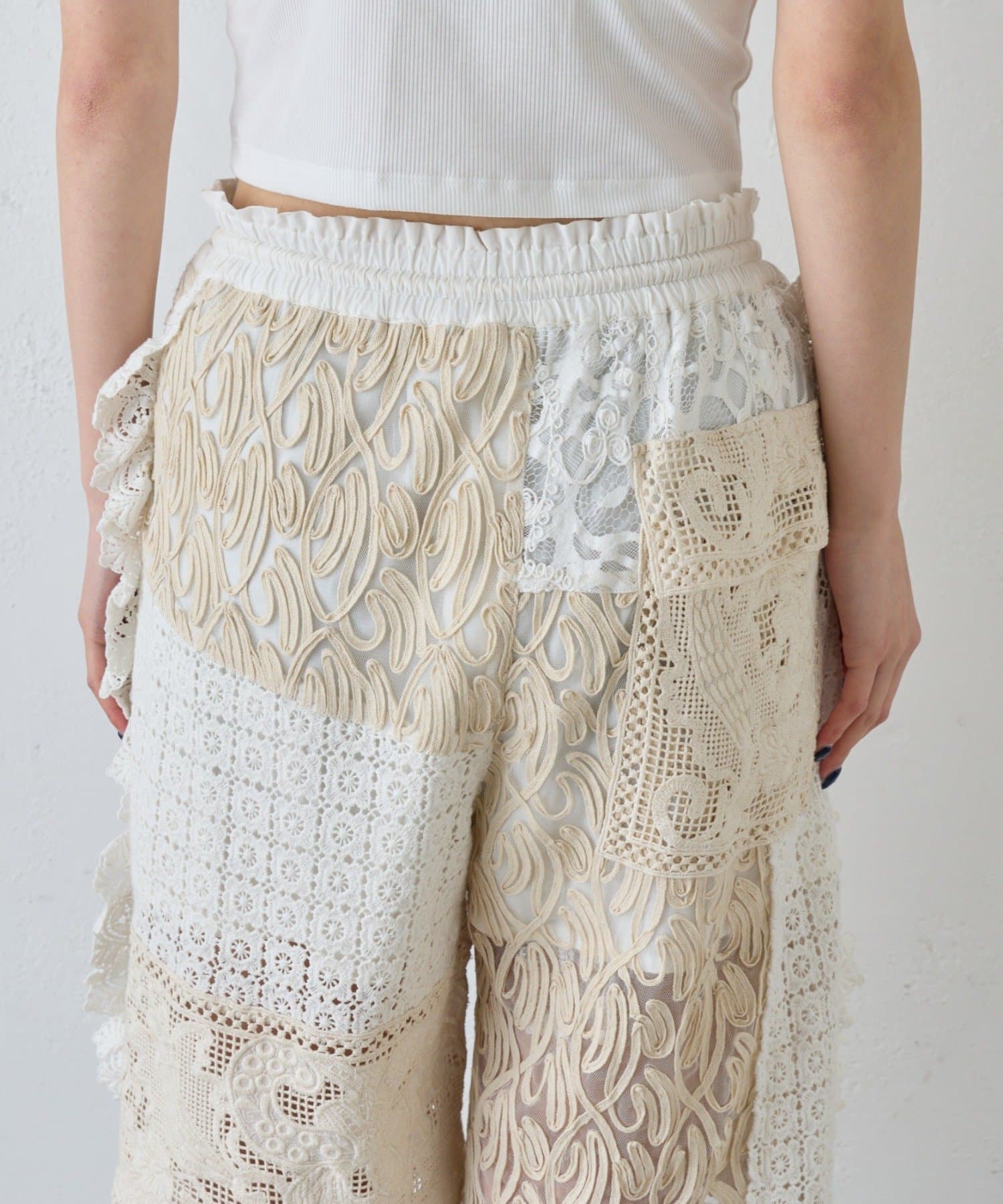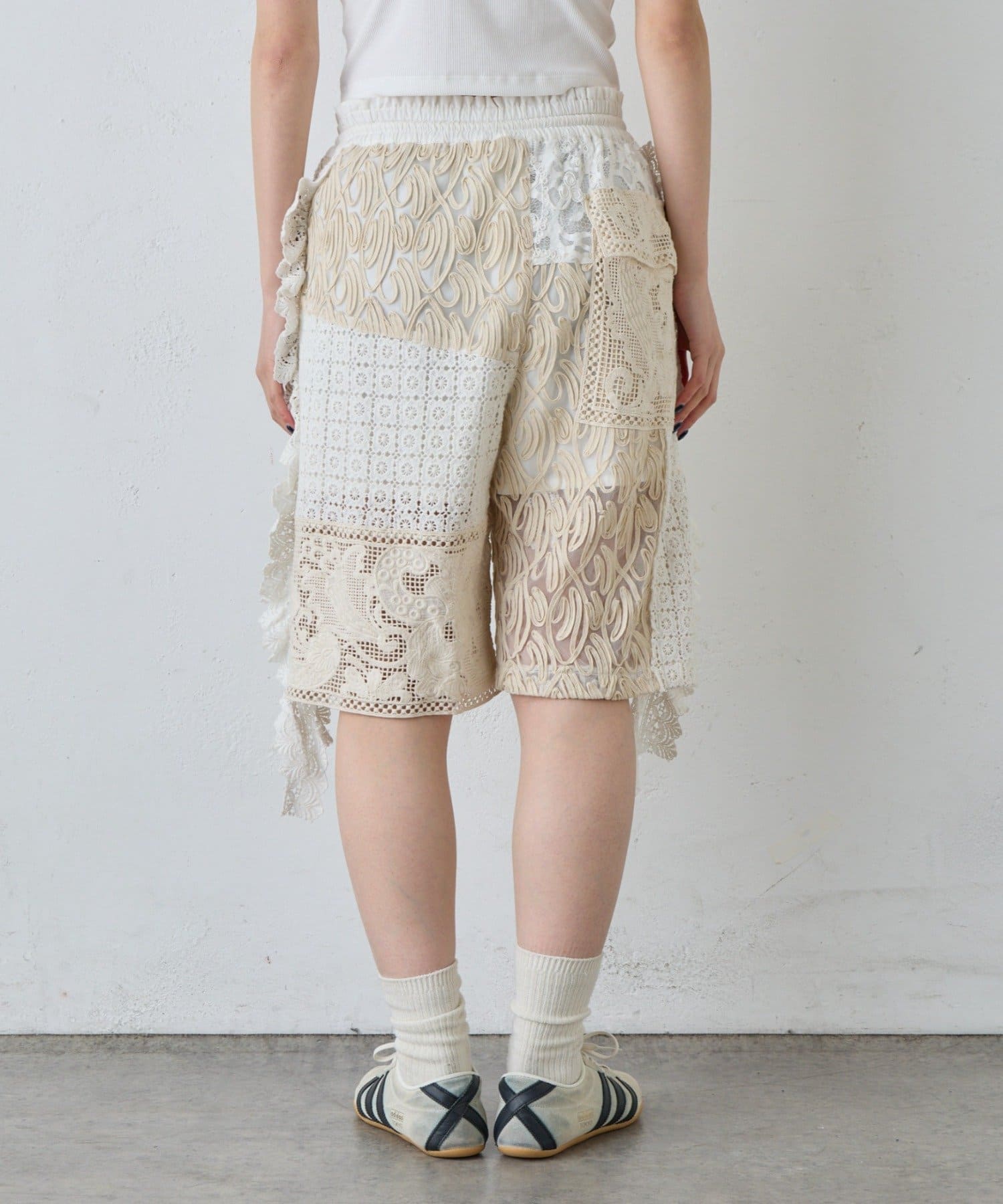 繊細なレースを贅沢に使用した、唯一無二の存在感を放つショートパンツ。