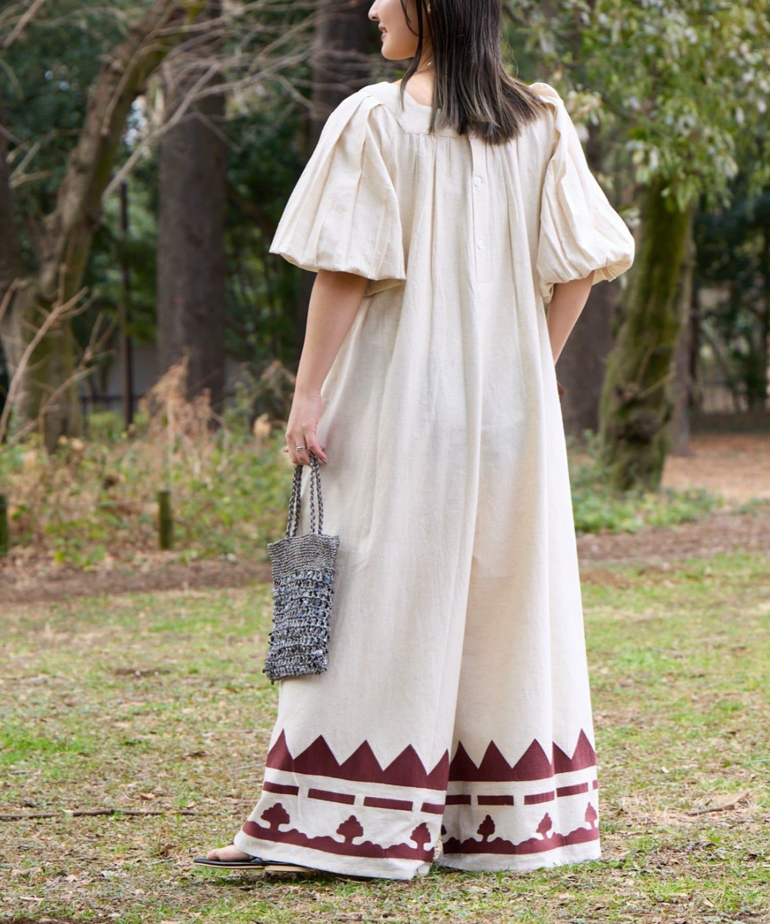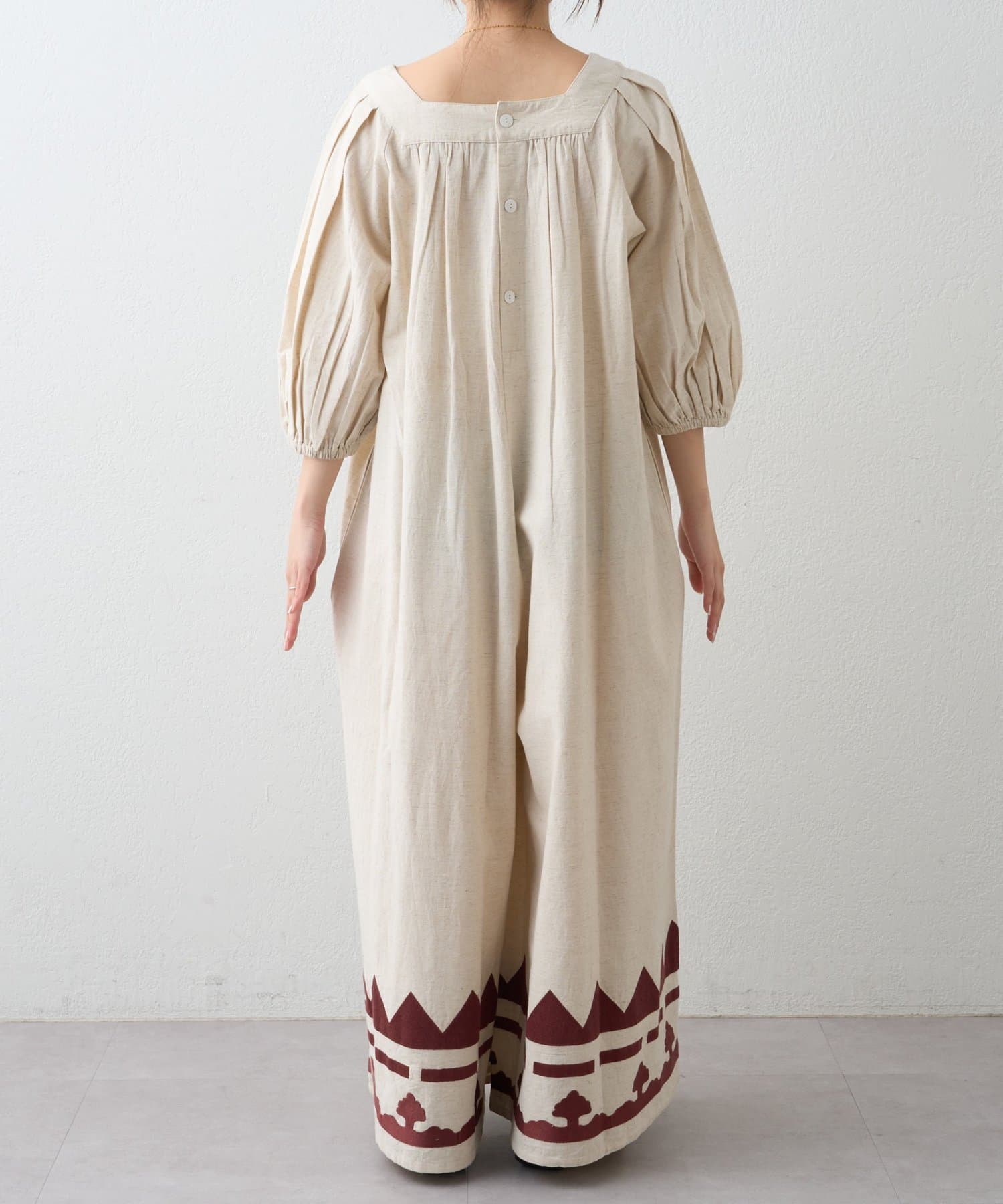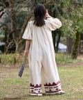 ナチュラルな風合いの生地に贅沢に刺繍を加えたサロペット!