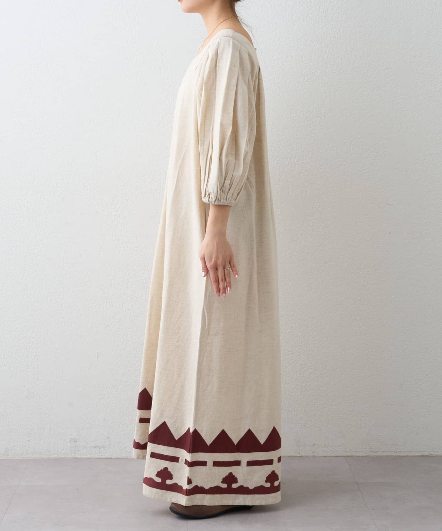 裾の刺繍以外はシンプル無地なので柄が強すぎず程よく着やすいのもポイント◎