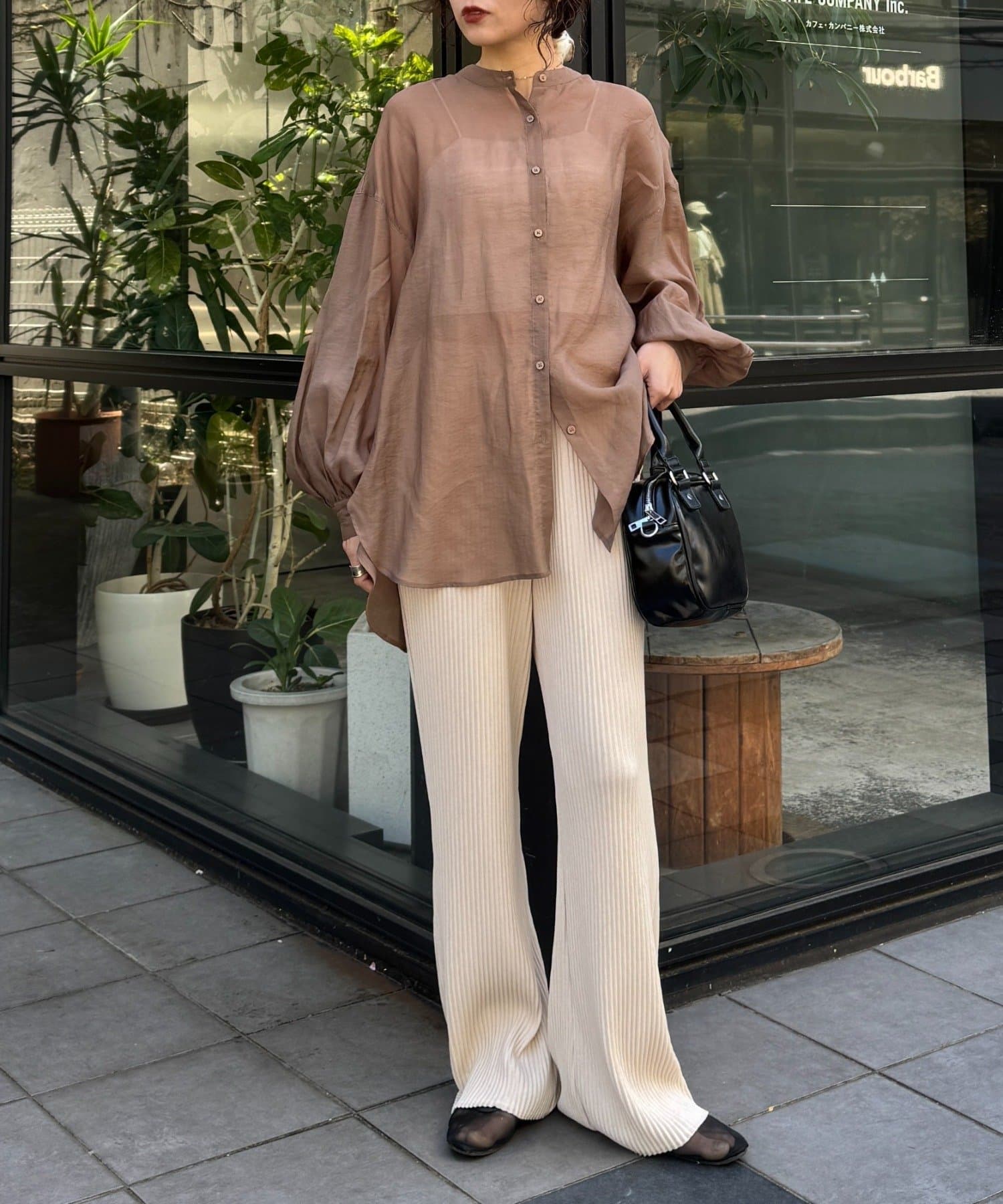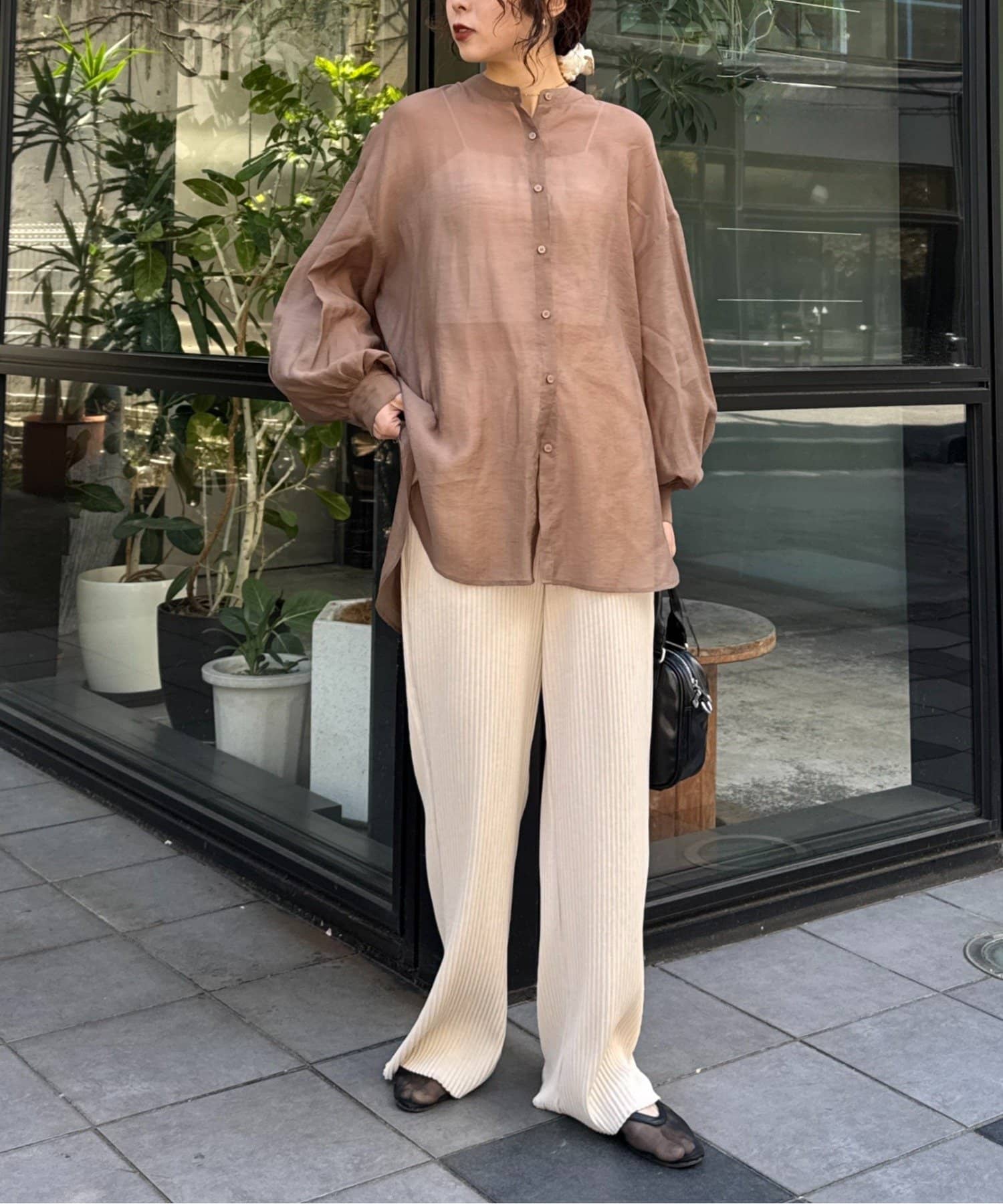 シアーシャツや軽めの羽織りと合わせると、抜け感のある大人カジュアルな雰囲気にオススメです。