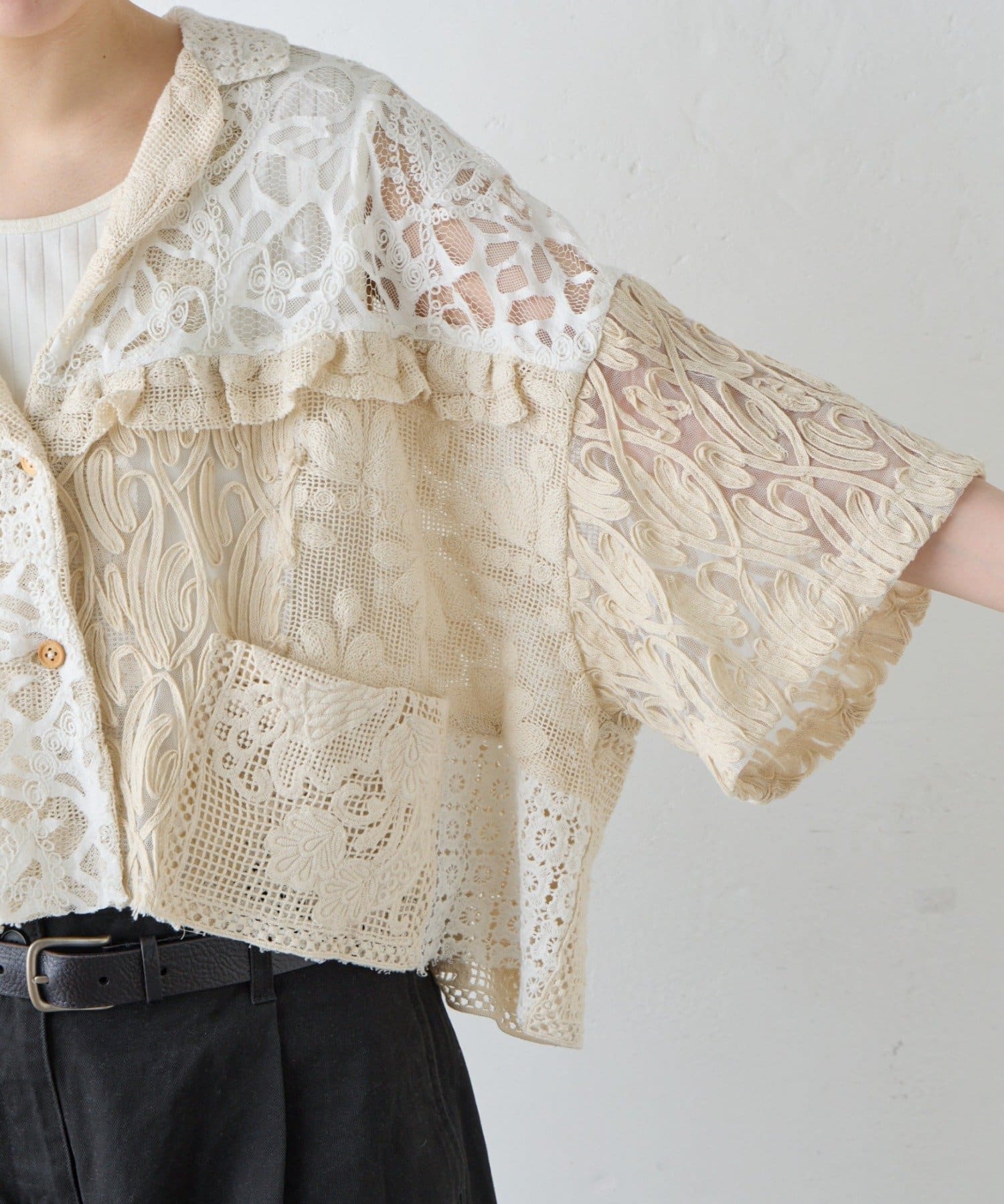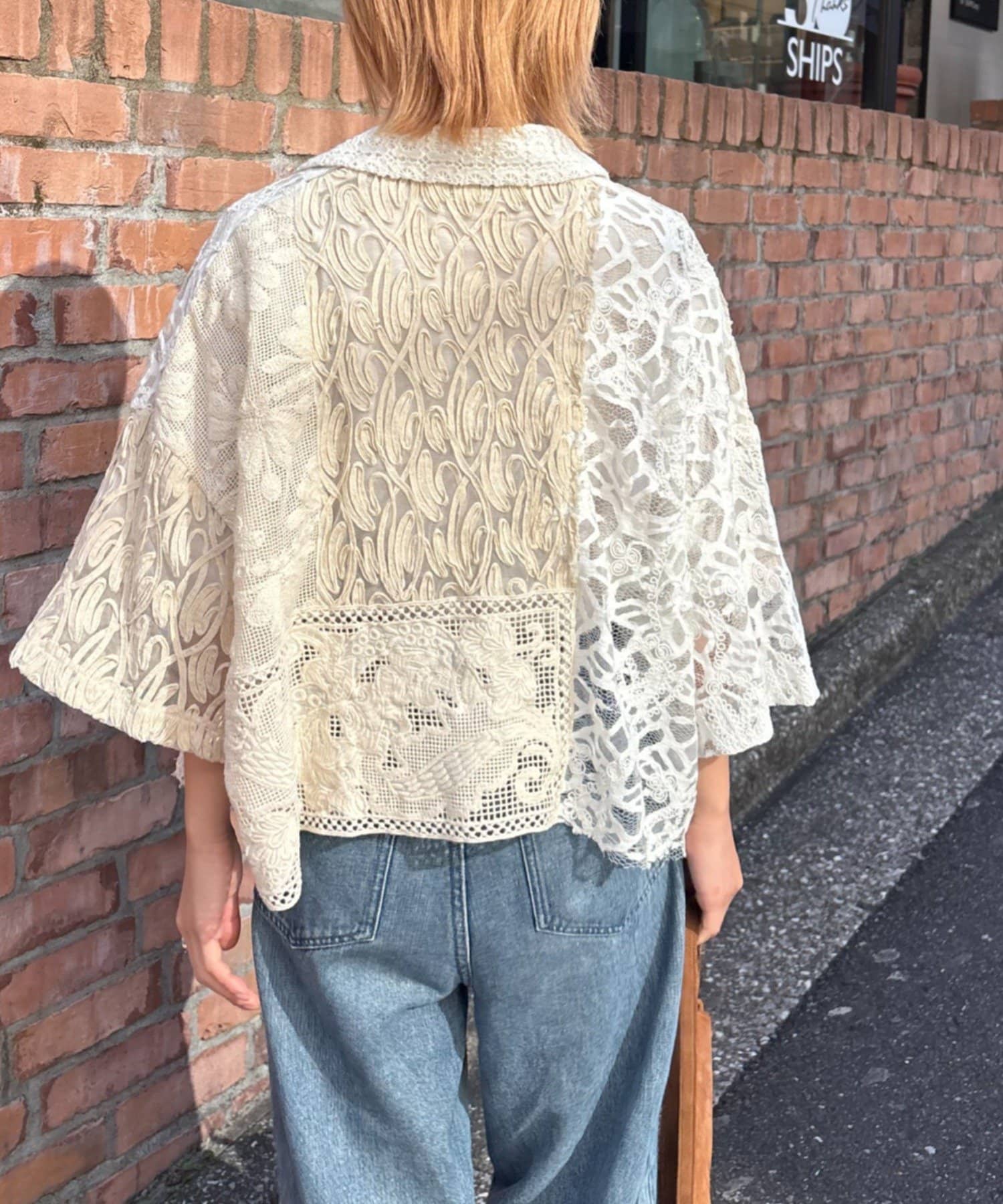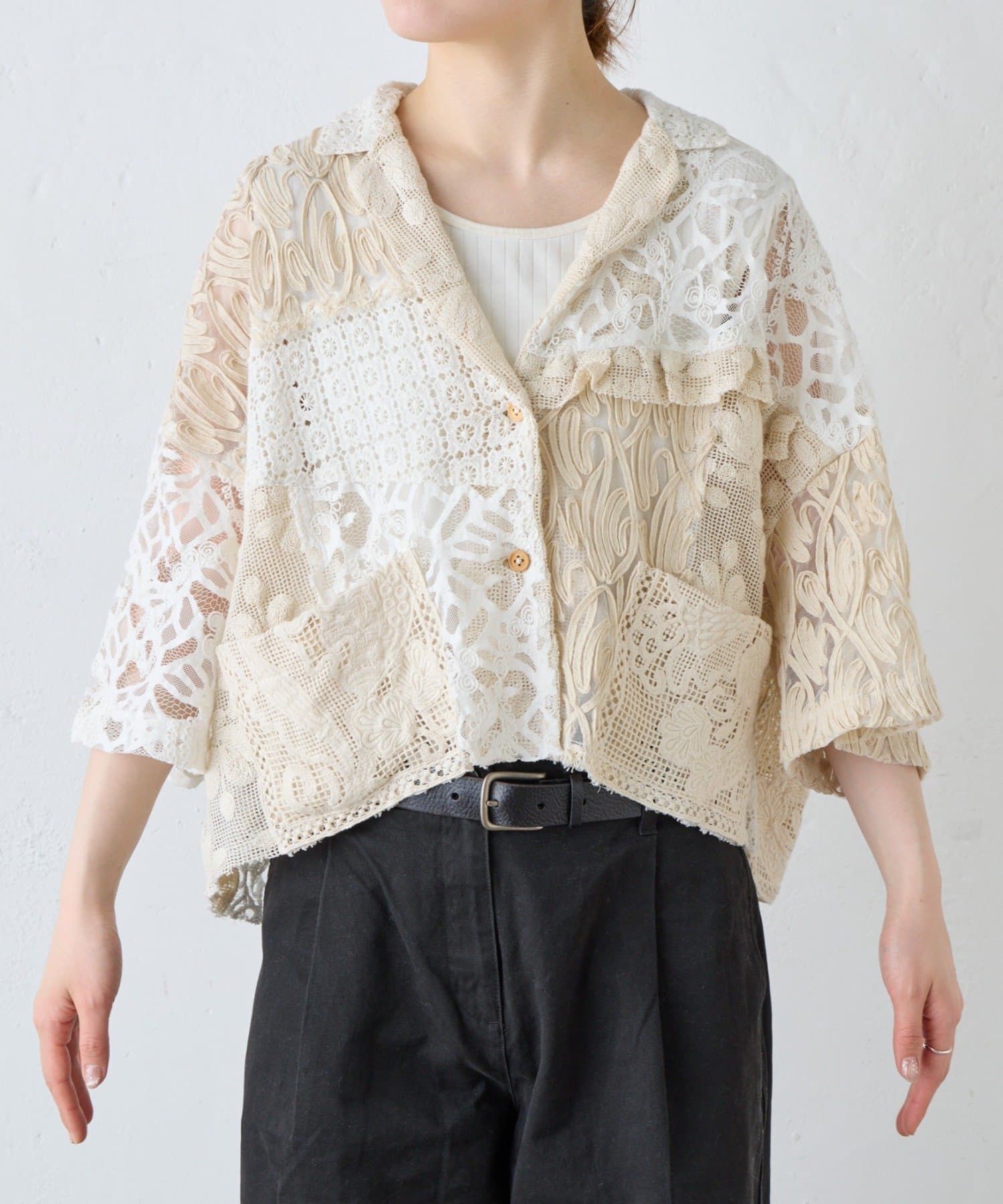 【etsinta/エシンタ】レースパッチワークシャツINDIA