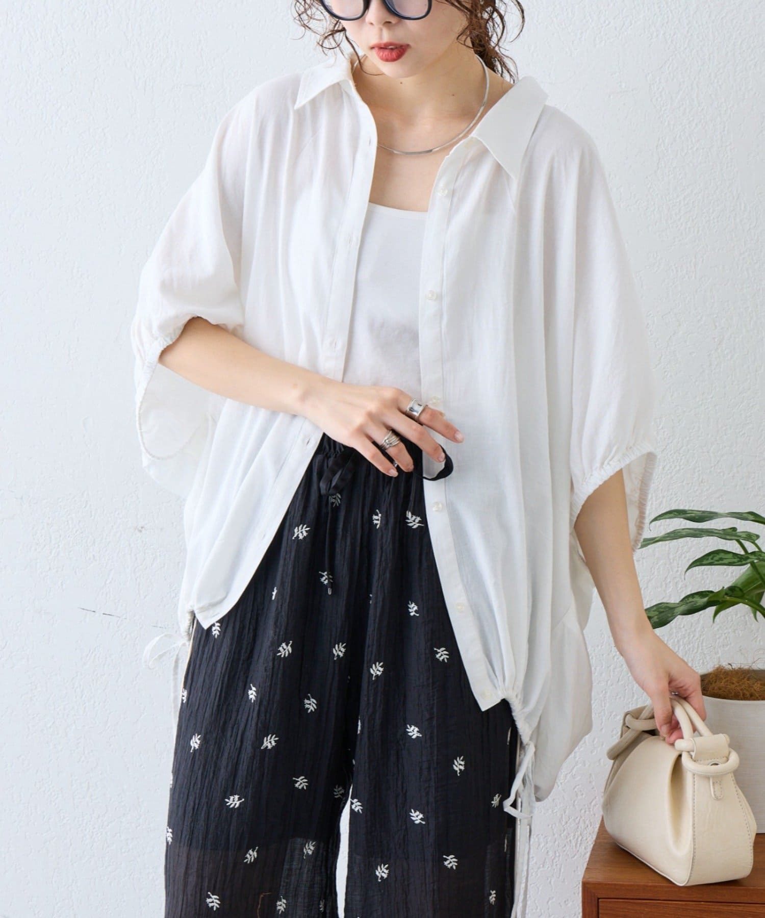 タンクトップやキャミソールの上にさらっと羽織るだけで、スタイリングが完成。