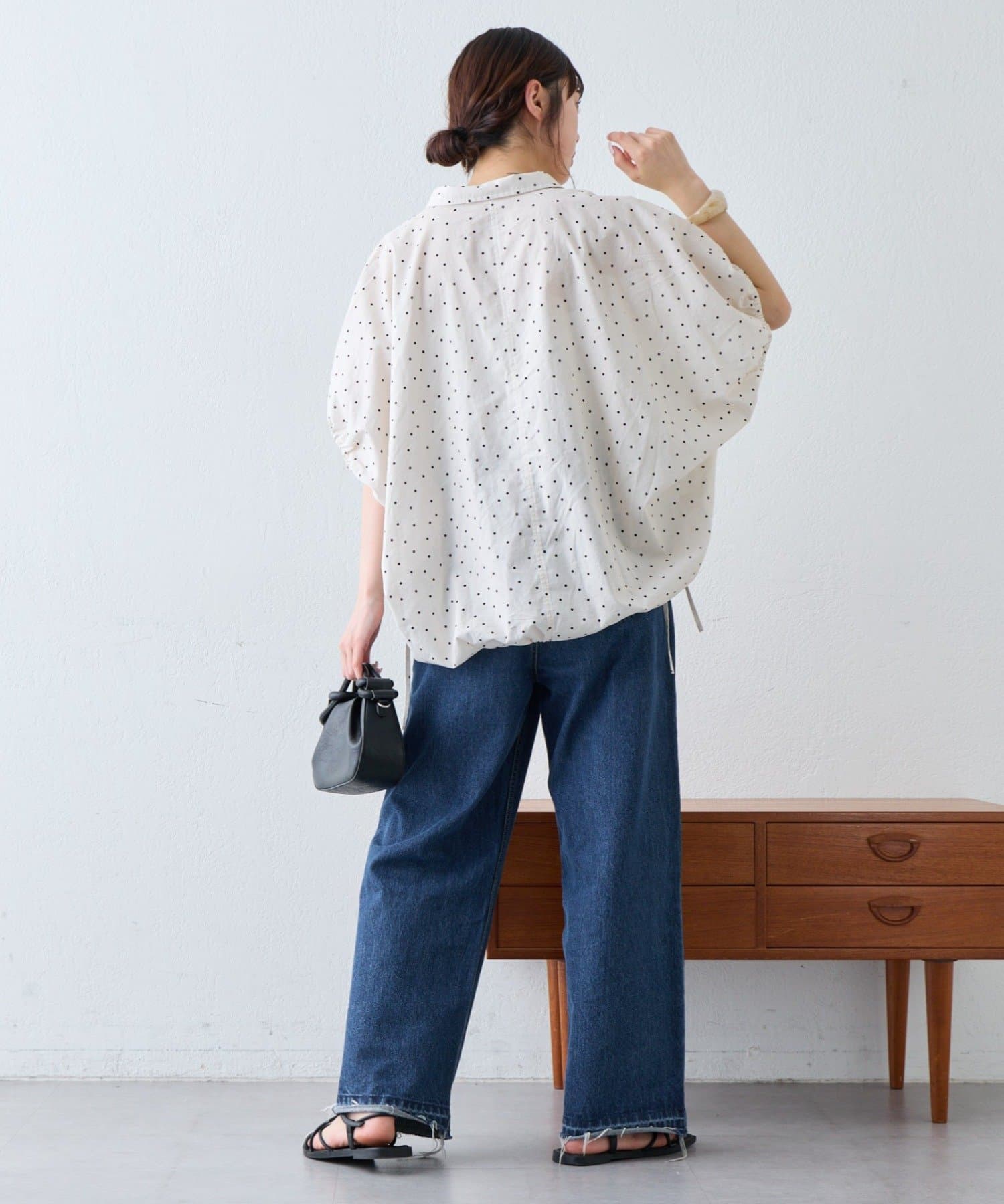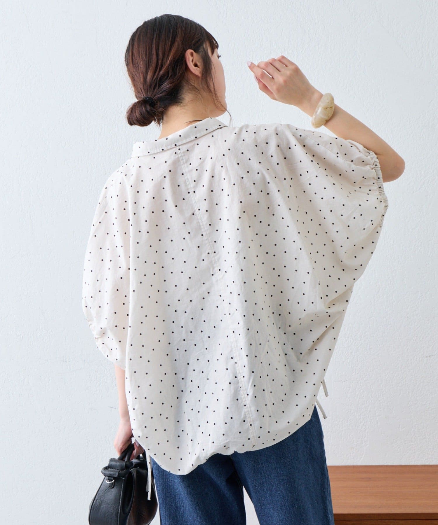自然に落ちるドルマンスリーブのような丸みのあるフォルムが女性らしい印象に。