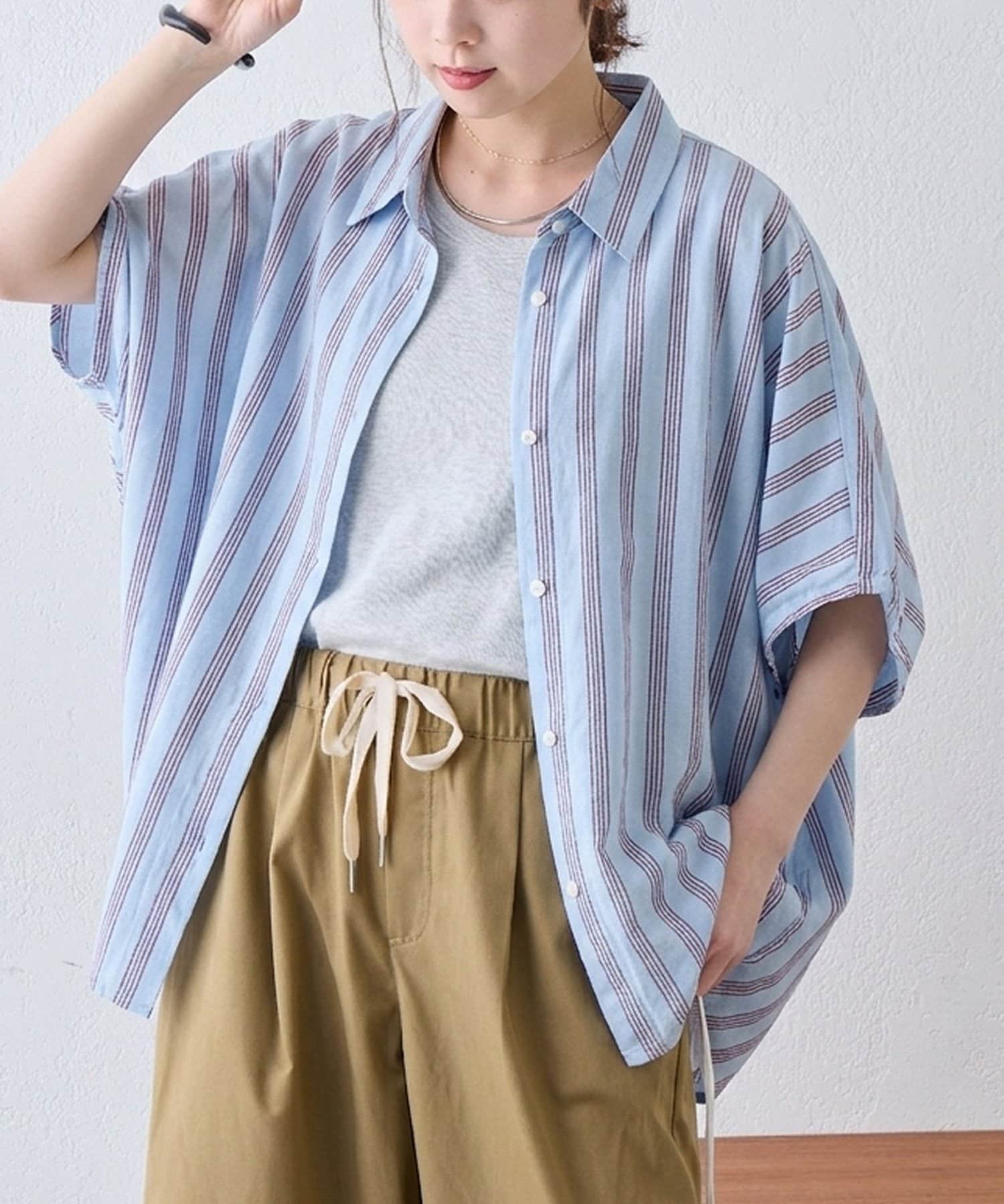 一枚でトップスとしてはもちろん、軽めの羽織りとしても活躍する、着回し力の高い万能シャツ!