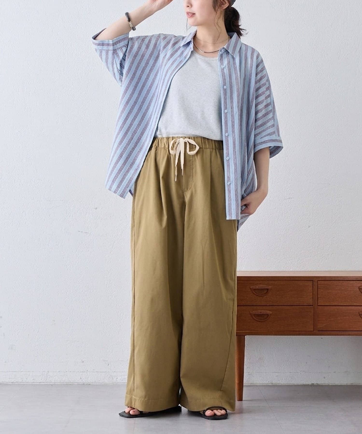 ナチュラルな表情の素材感で、さらっとした肌触りと落ち感が暑い季節でも快適◎