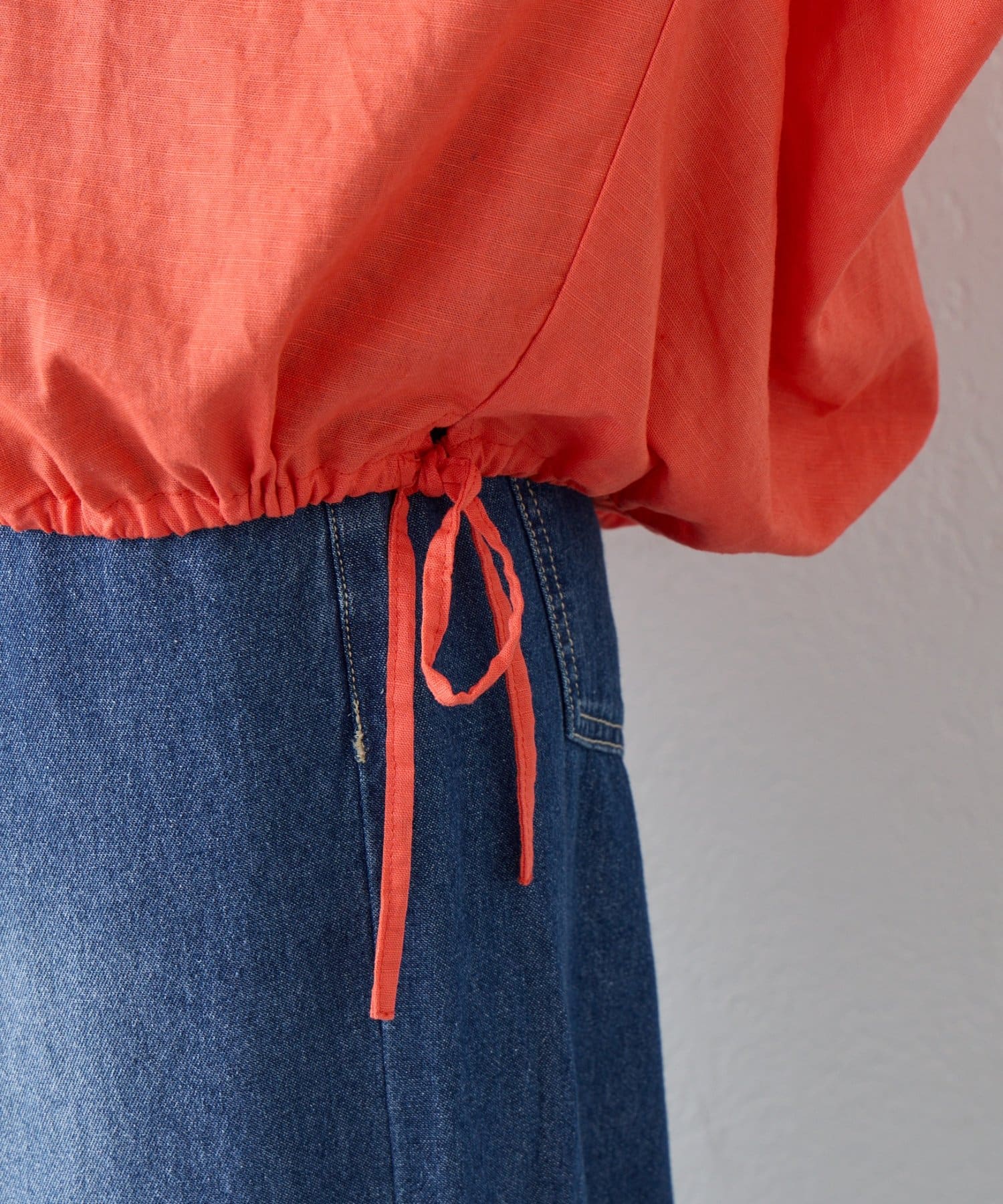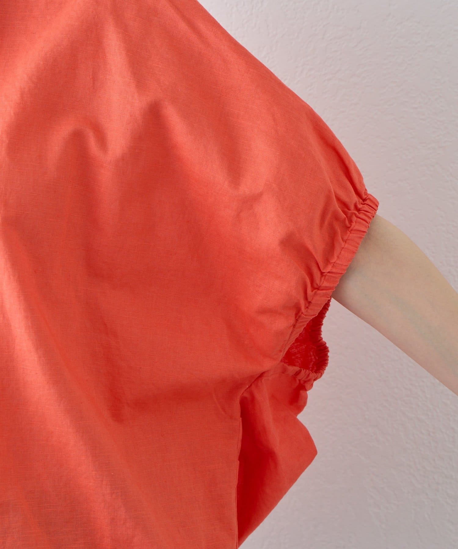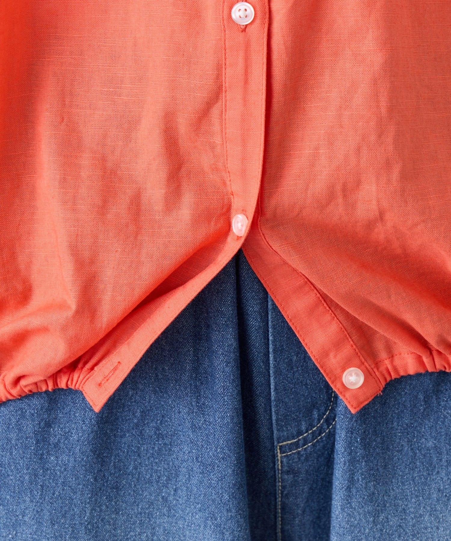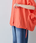 【夏も快適/二の腕カバー】綿麻袖ギャザー裾リボンバルーンシャツ