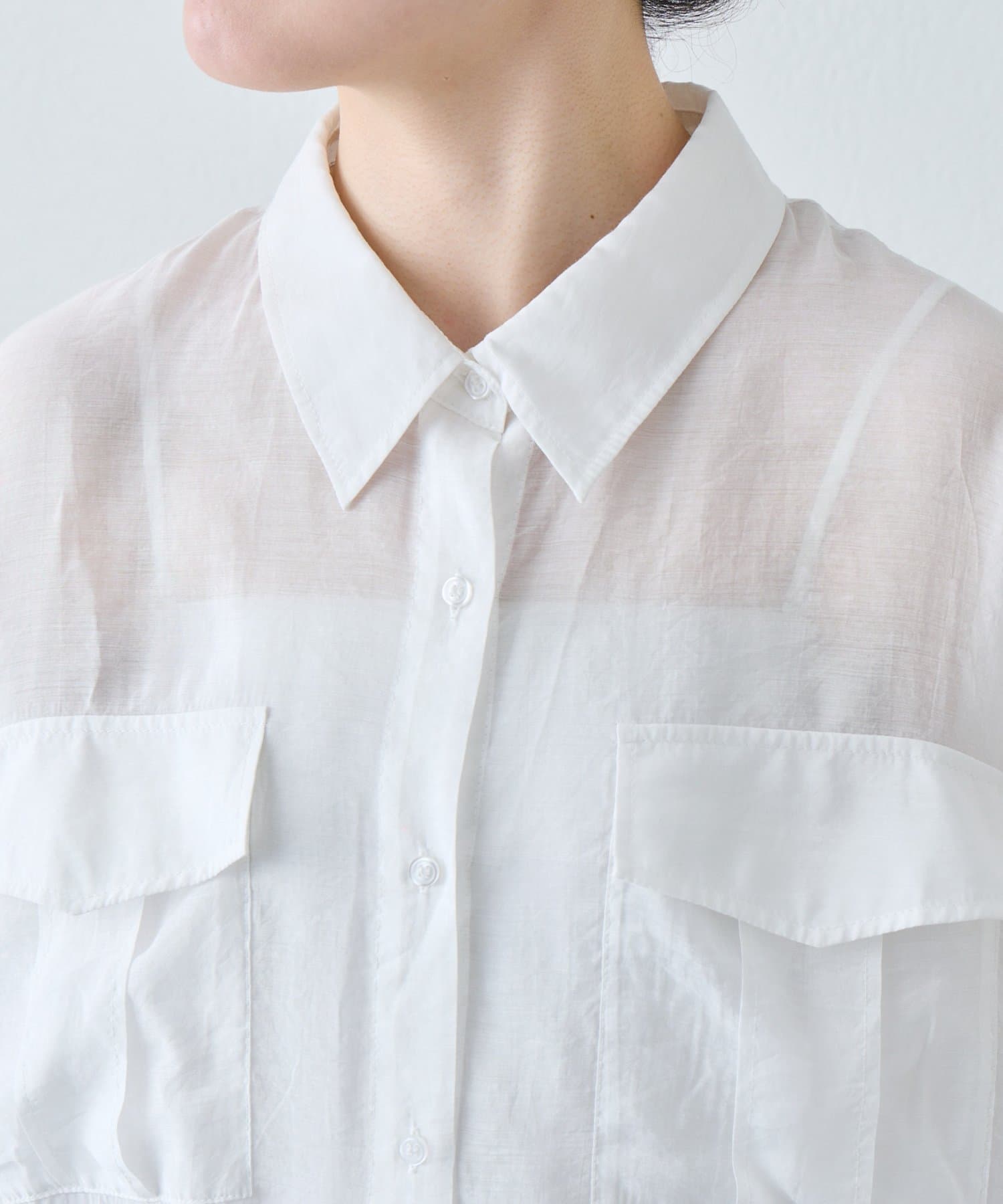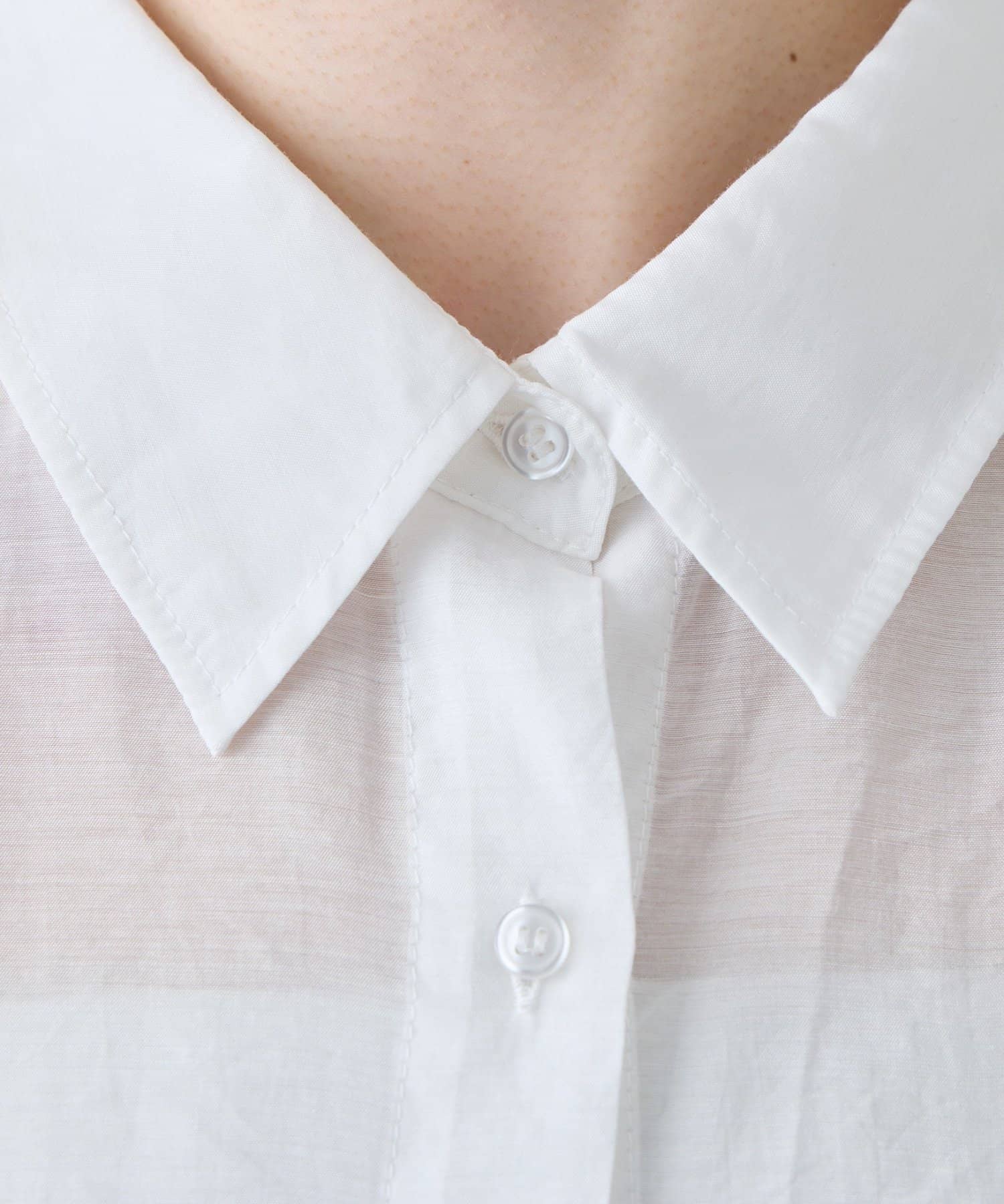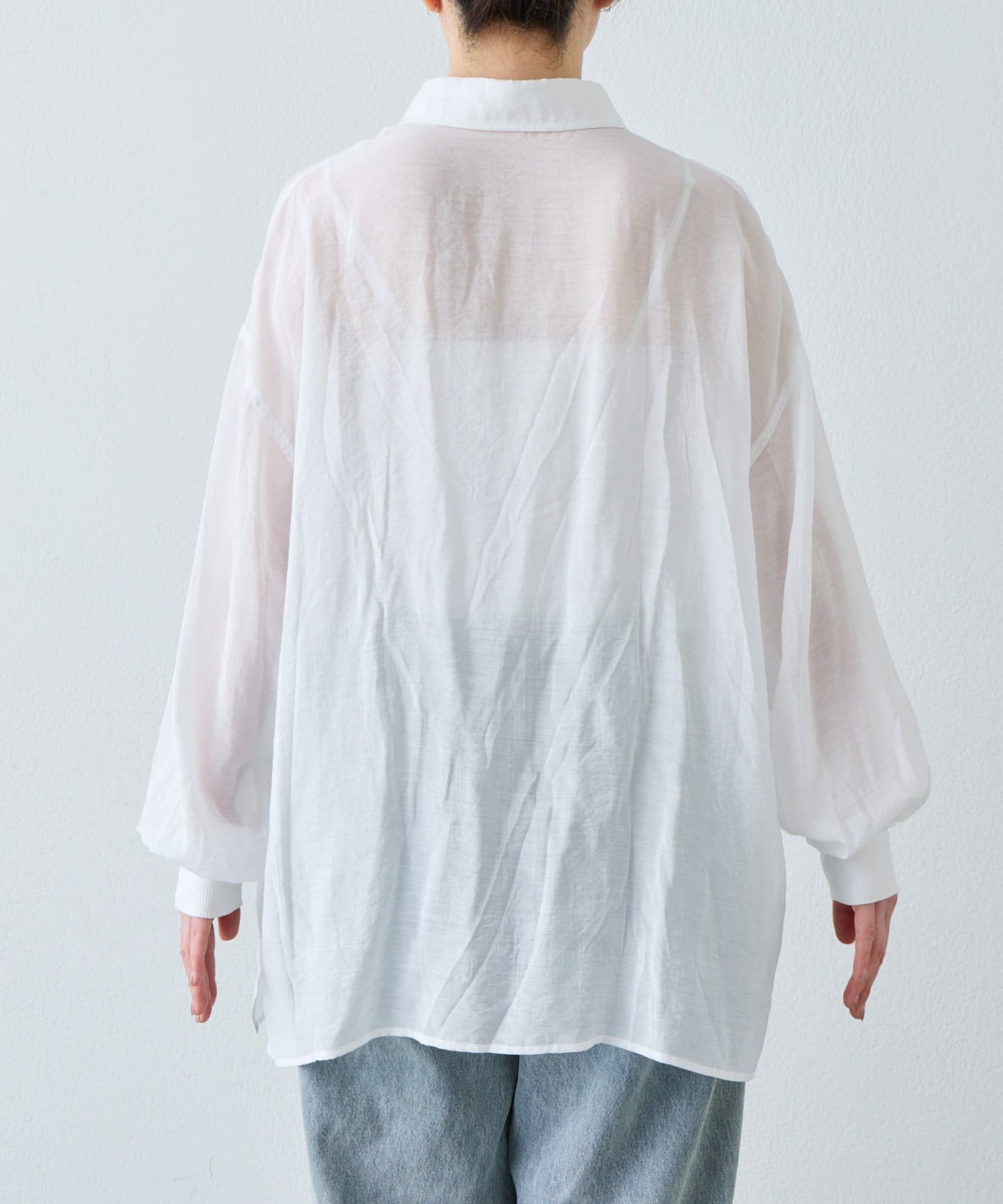 ▶【累計販売数1万枚突破/程よい透け感】シアーバンドカラーシャツ