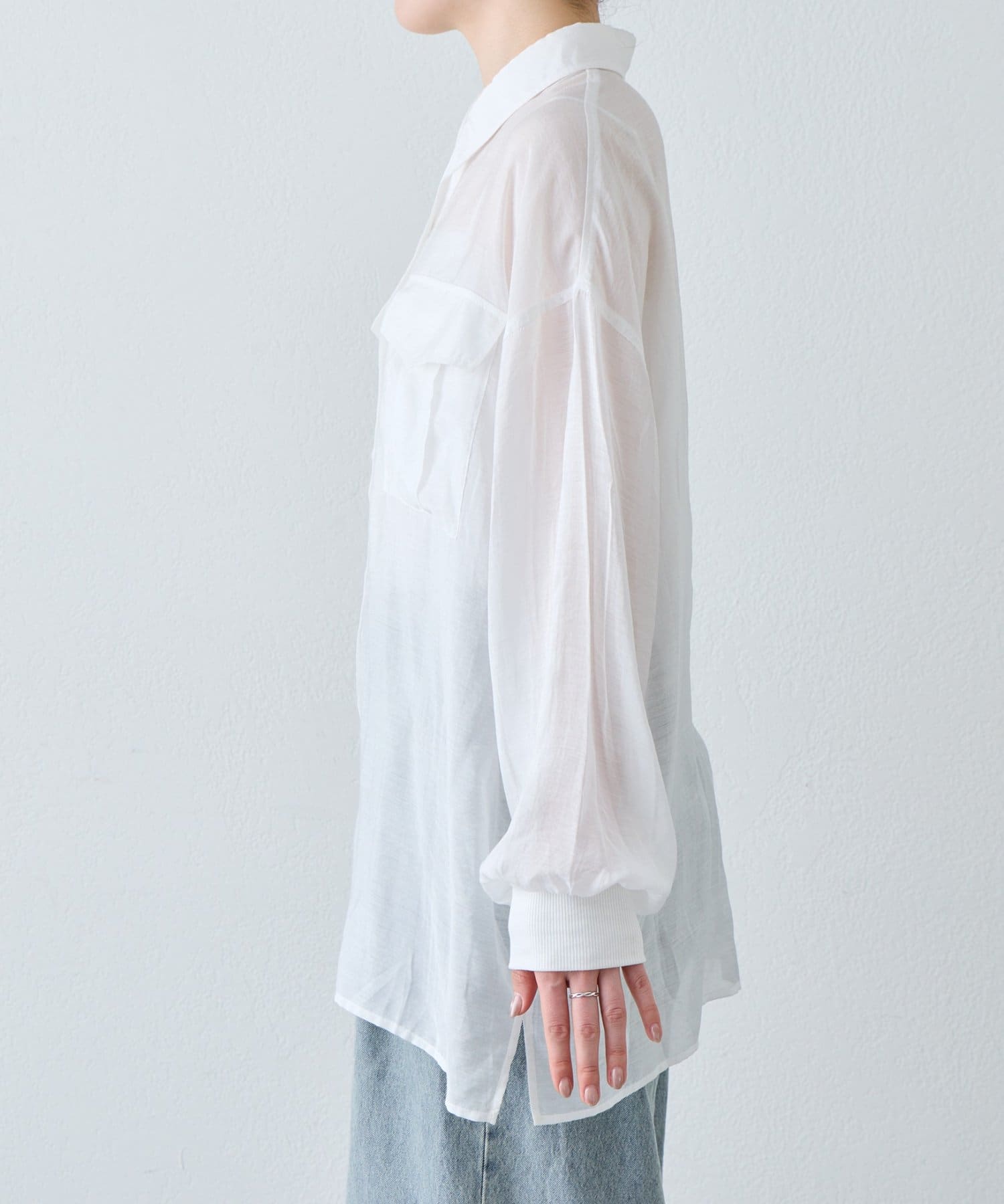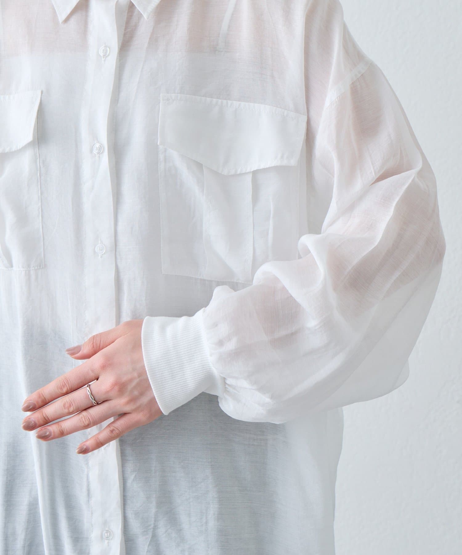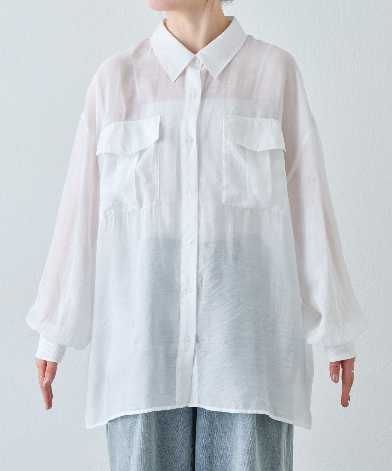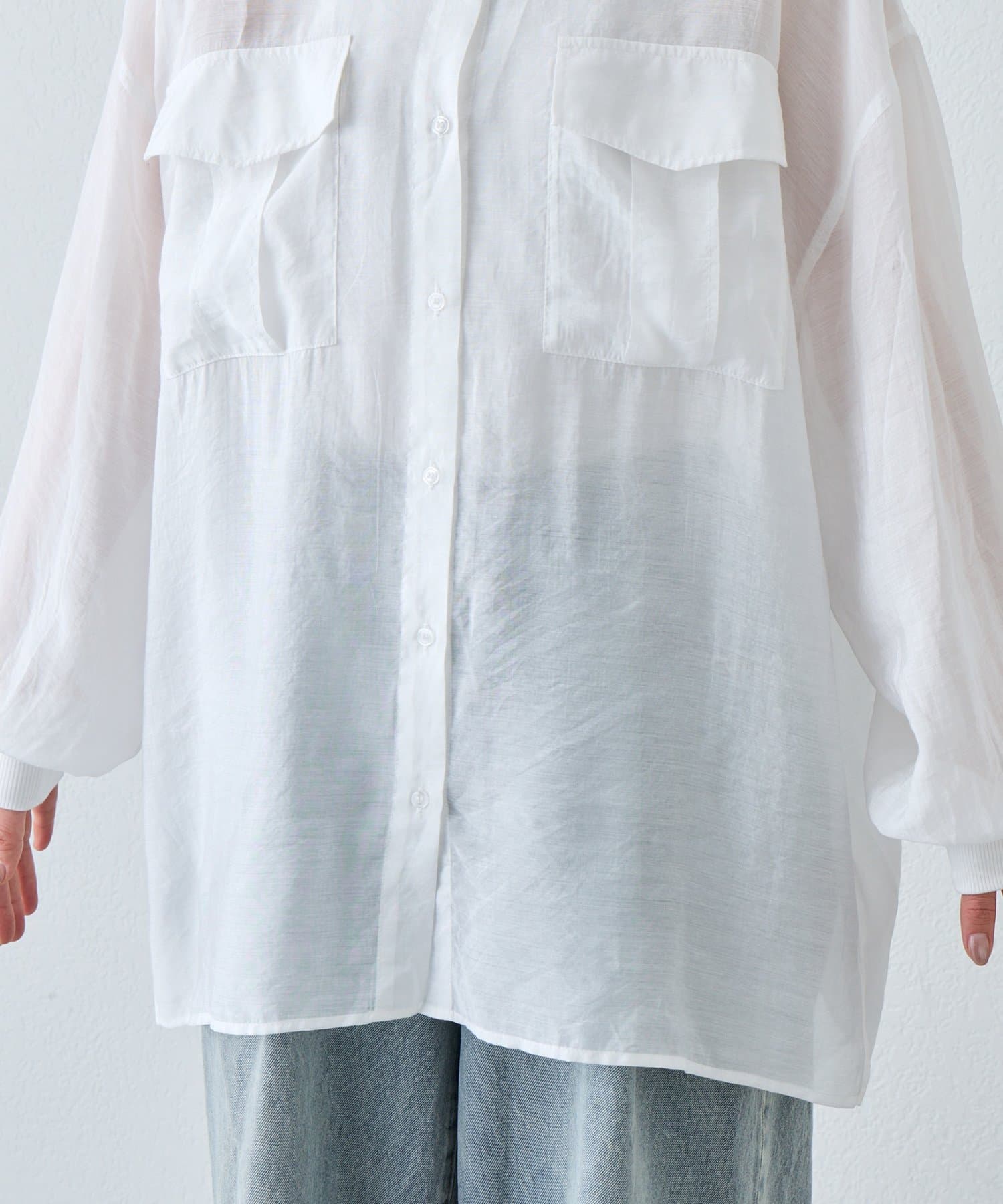 ▶【累計販売数1万枚突破/程よい透け感】シアーバンドカラーシャツ