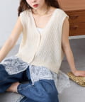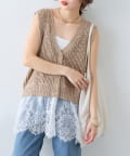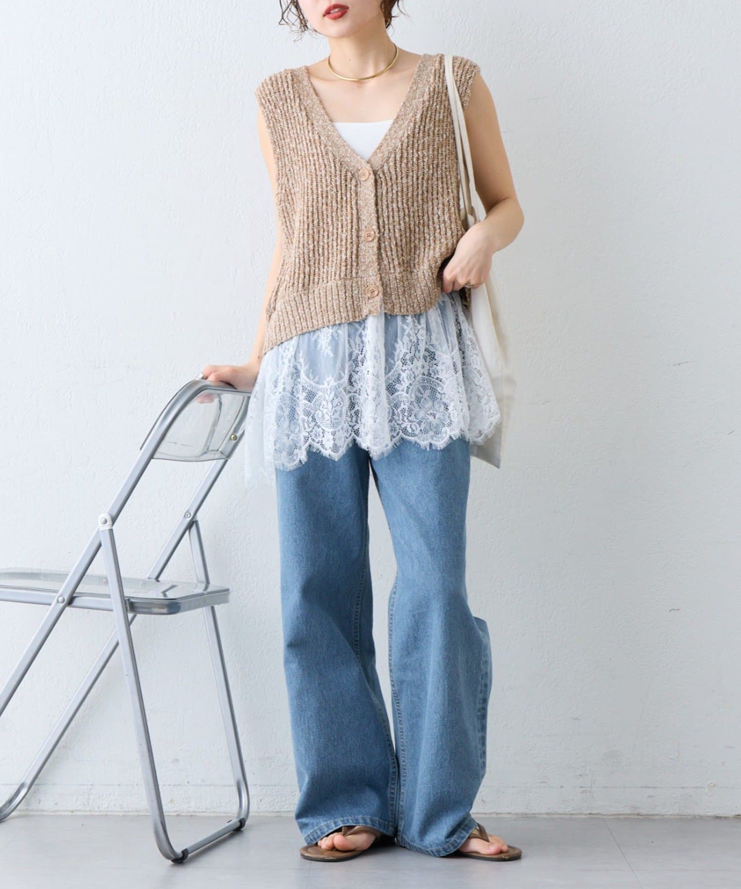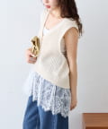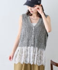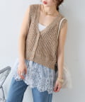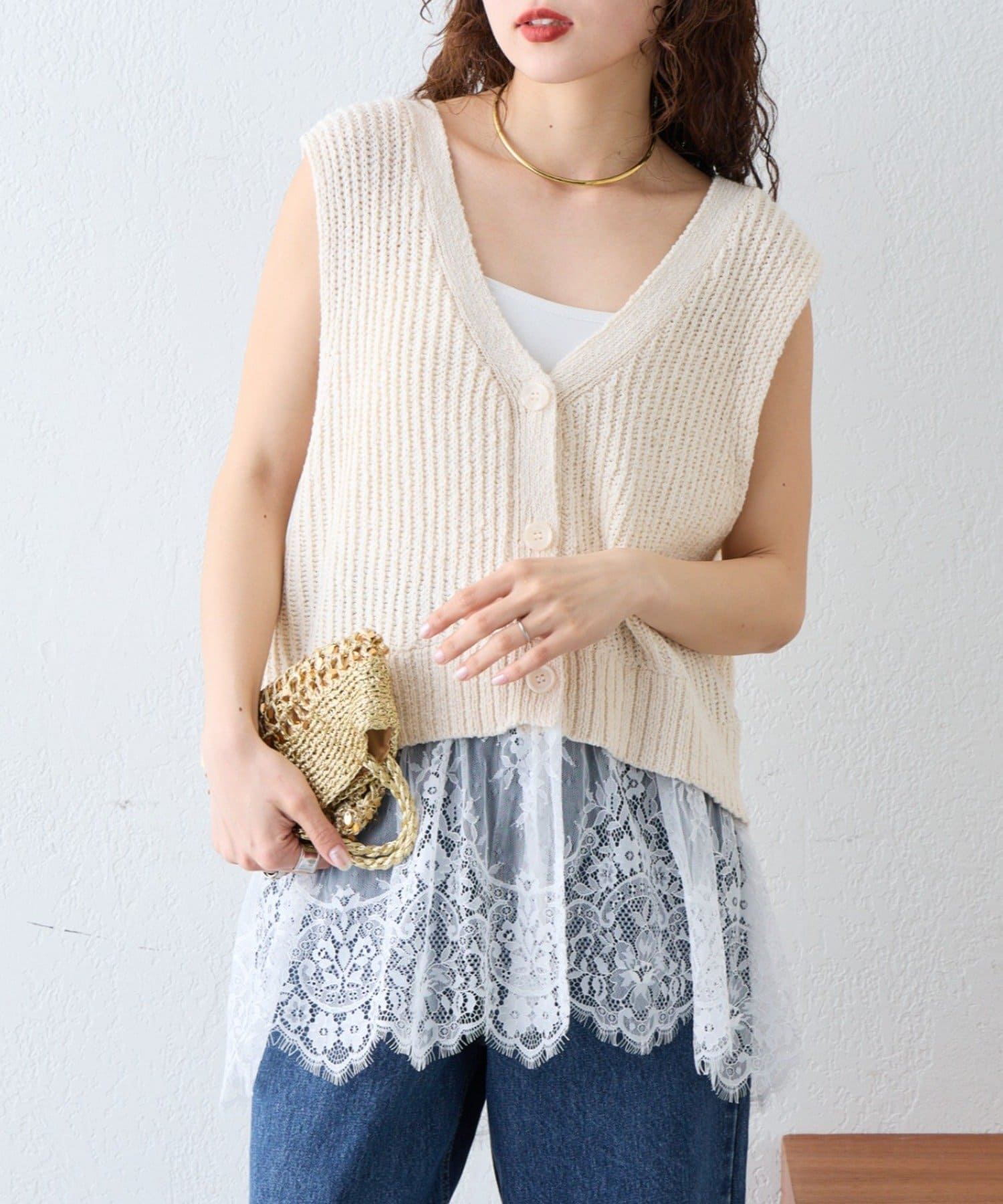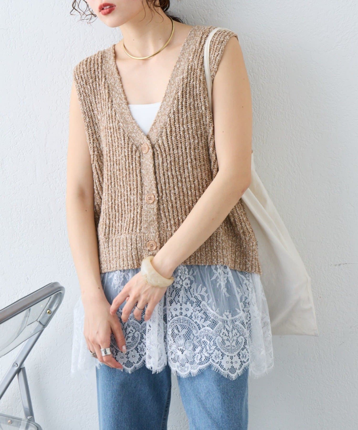 透け感レースのレイヤード風に着れる大人カジュアルベスト