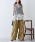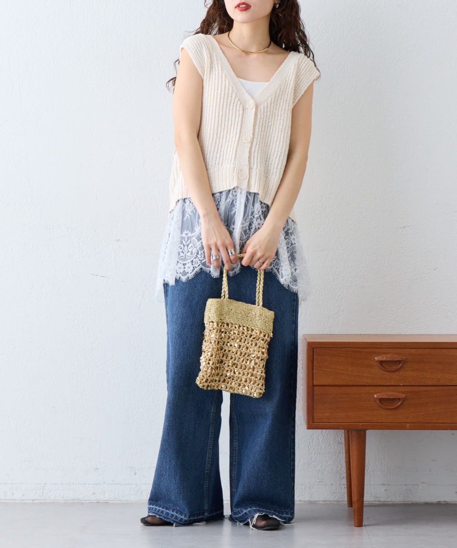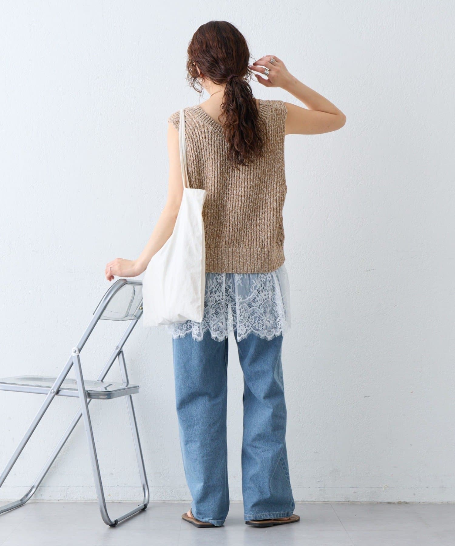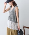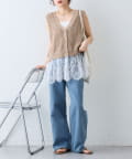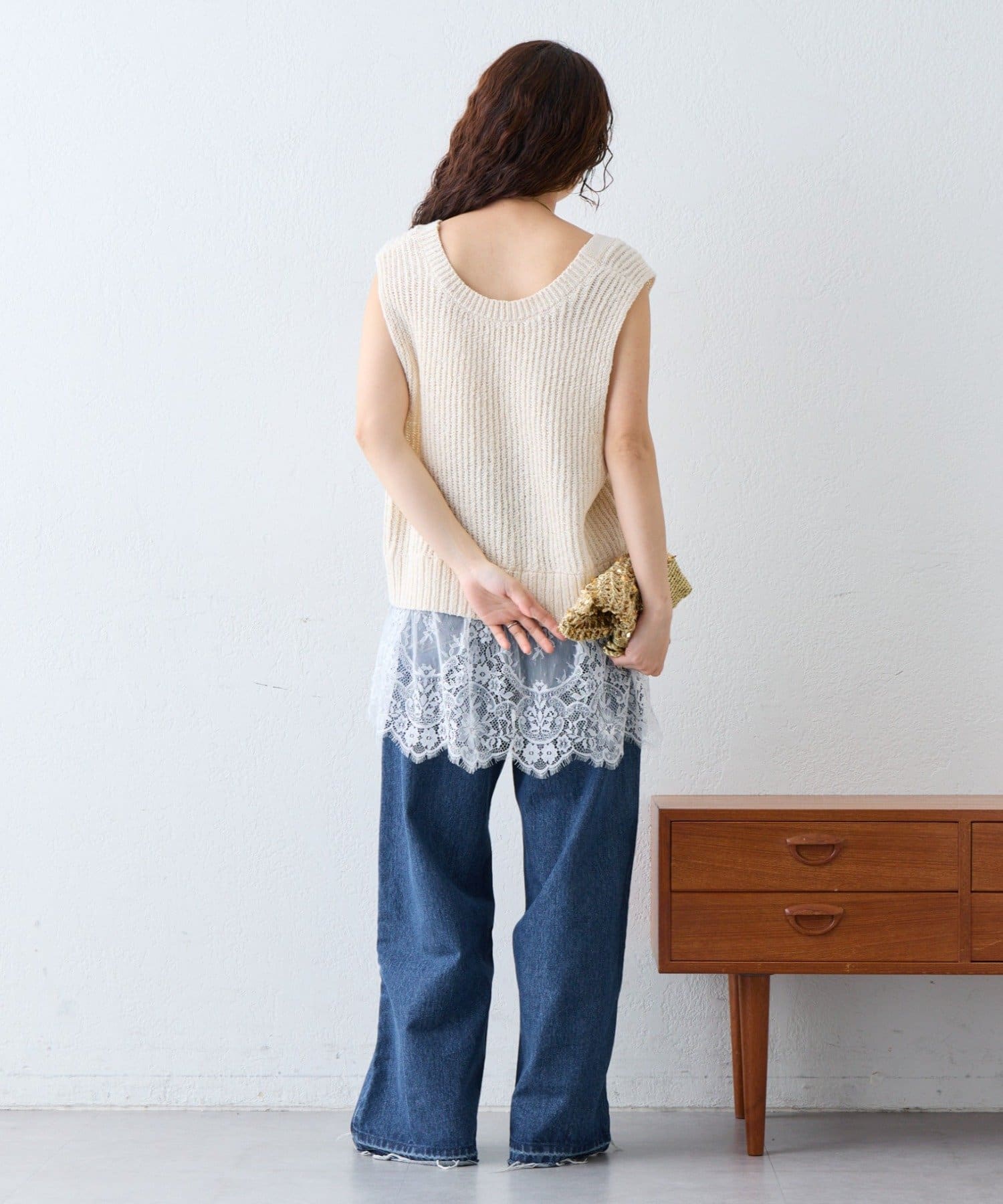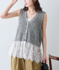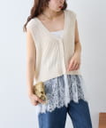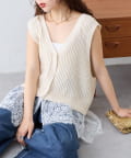 透け感レースのレイヤード風に着れる大人カジュアルベスト