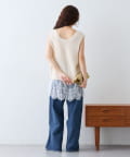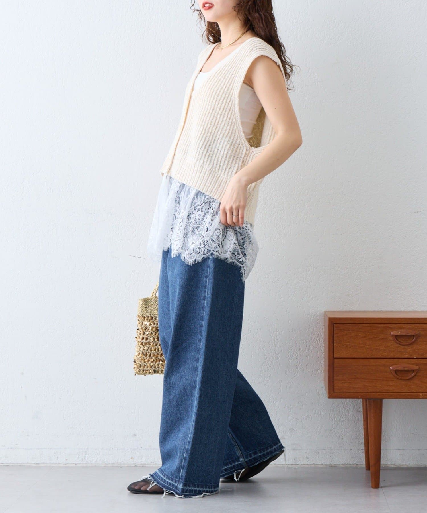 コンパクトな丈感のベストに対して、裾のレースを長めに設定。