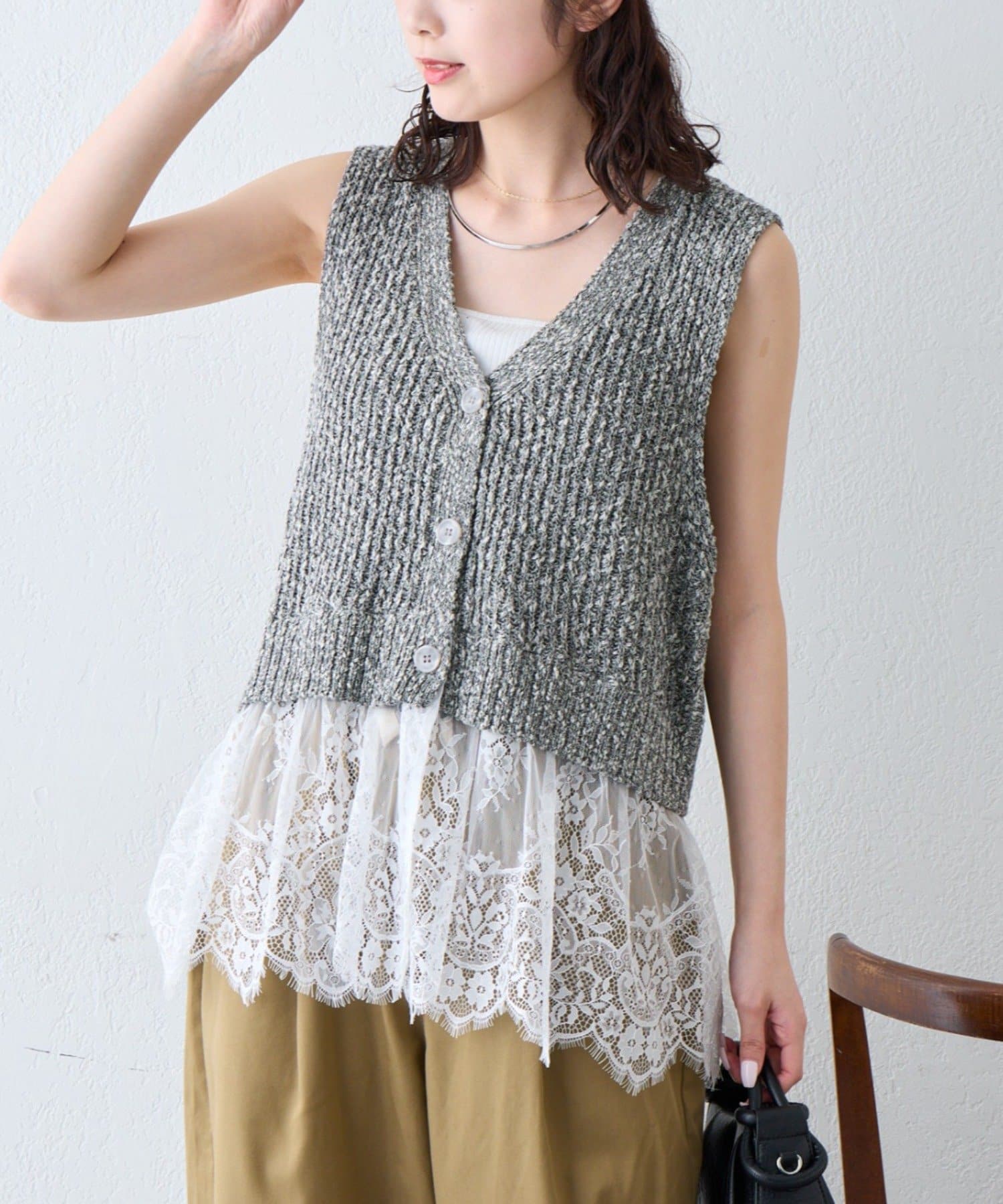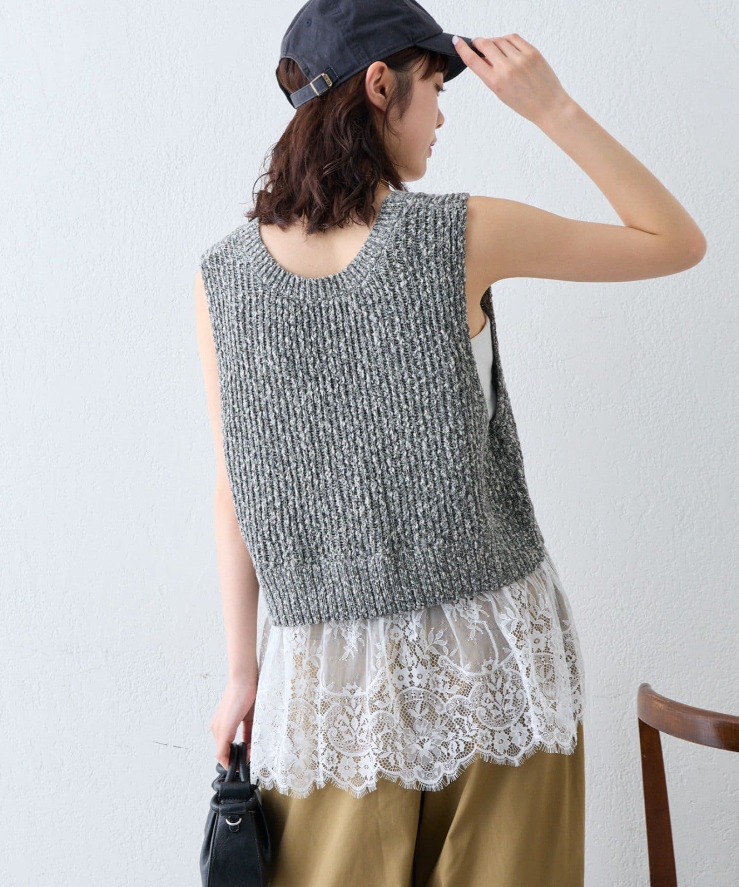 TOP > CIAOPANIC TYPY > レディース > トップス > ニット/セーター > 【前後2WAY】裾レースメランジベスト