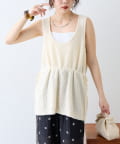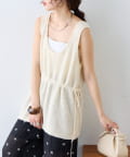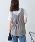 ウエストにいれた紐でキュッと絞れる、着回しパターンの多いベストです。