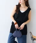 深めのネックラインはレイヤードが映え、タンクトップやTシャツなど幅広いアイテムと相性◎
