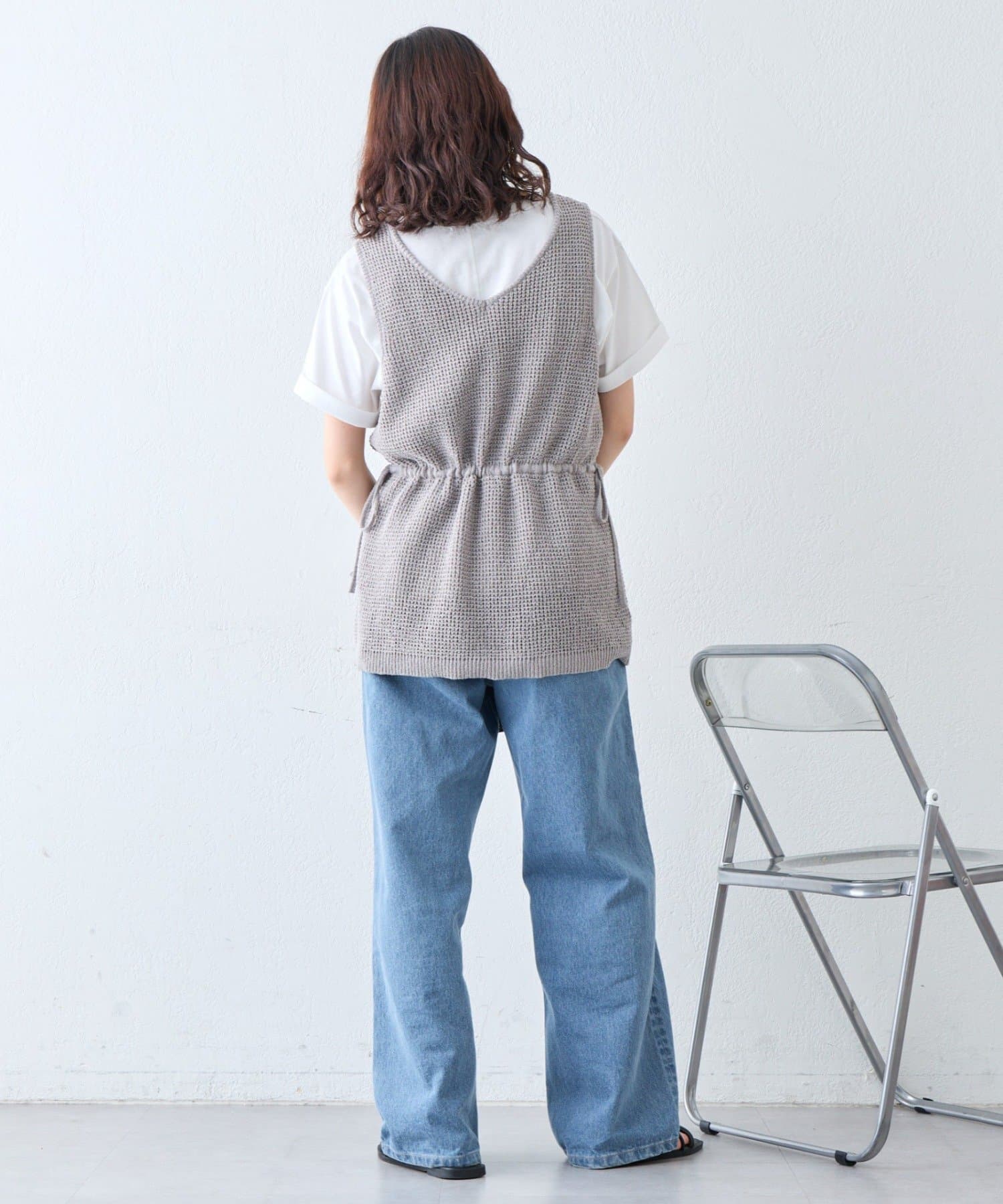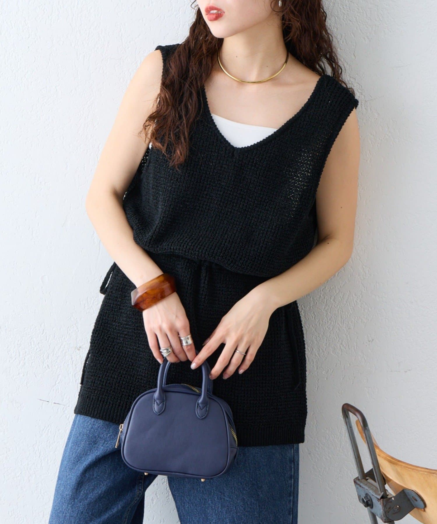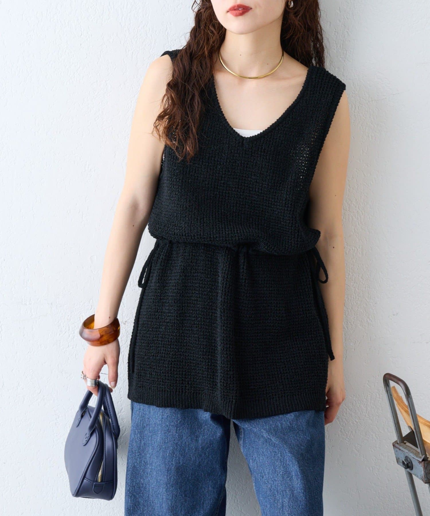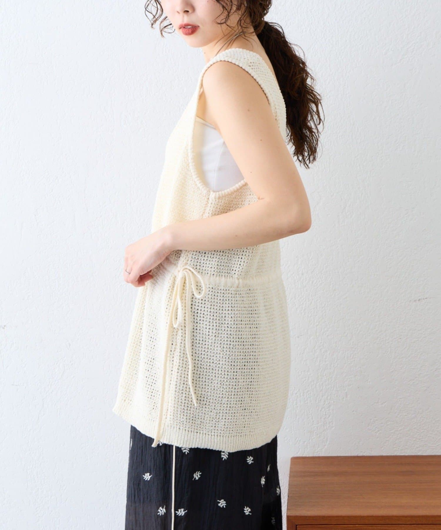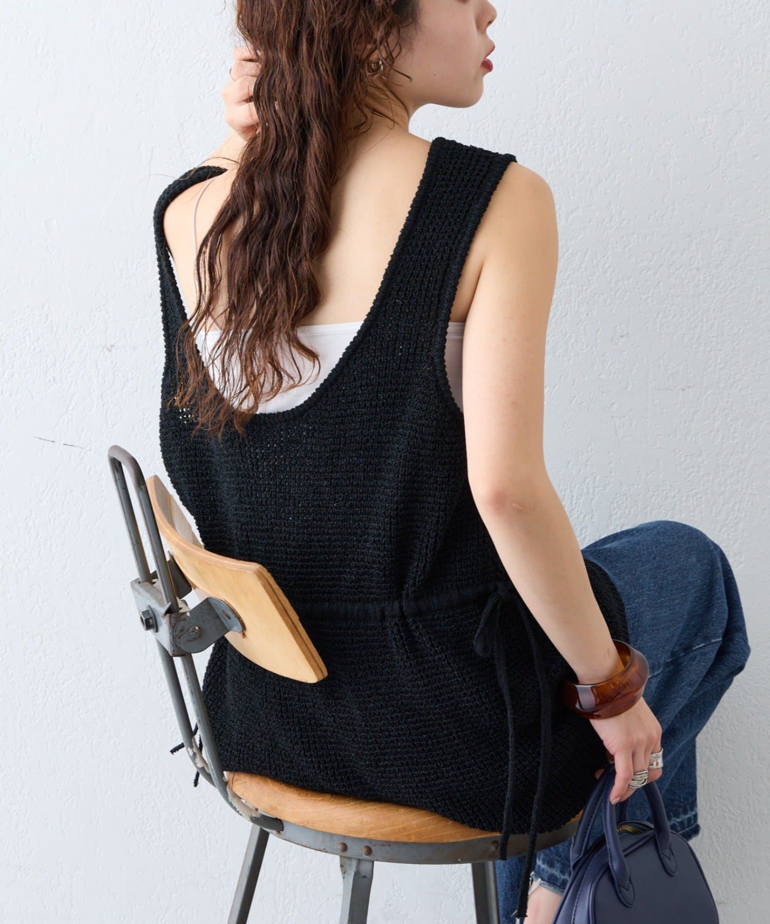 【前後2WAY】ウエスト紐メッシュニットベスト
