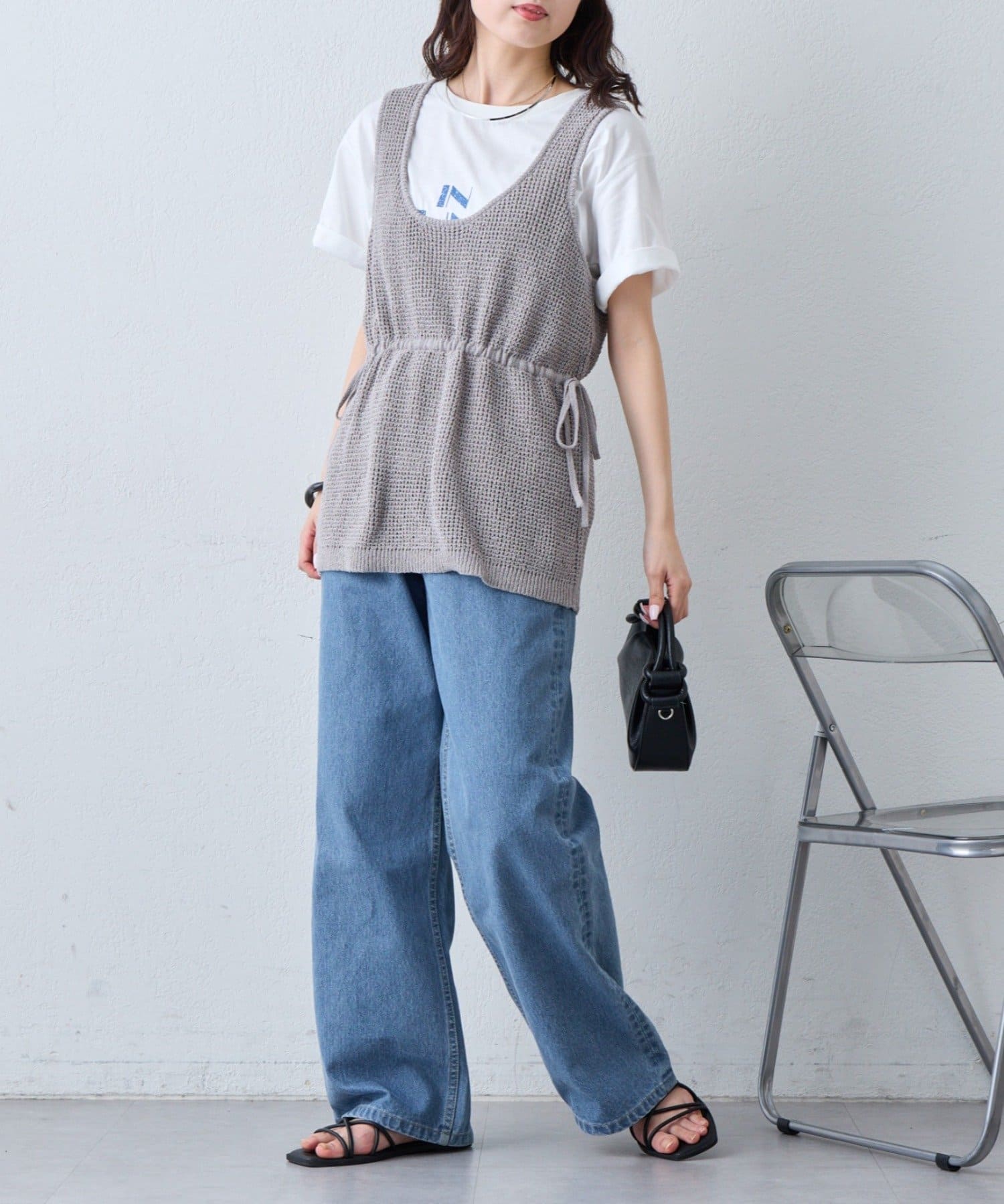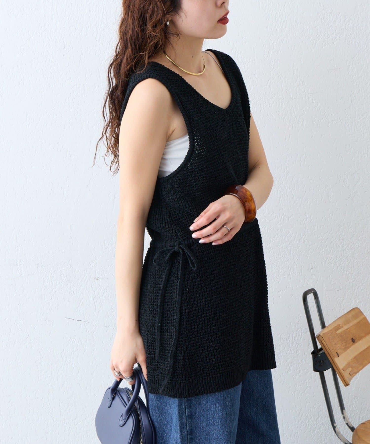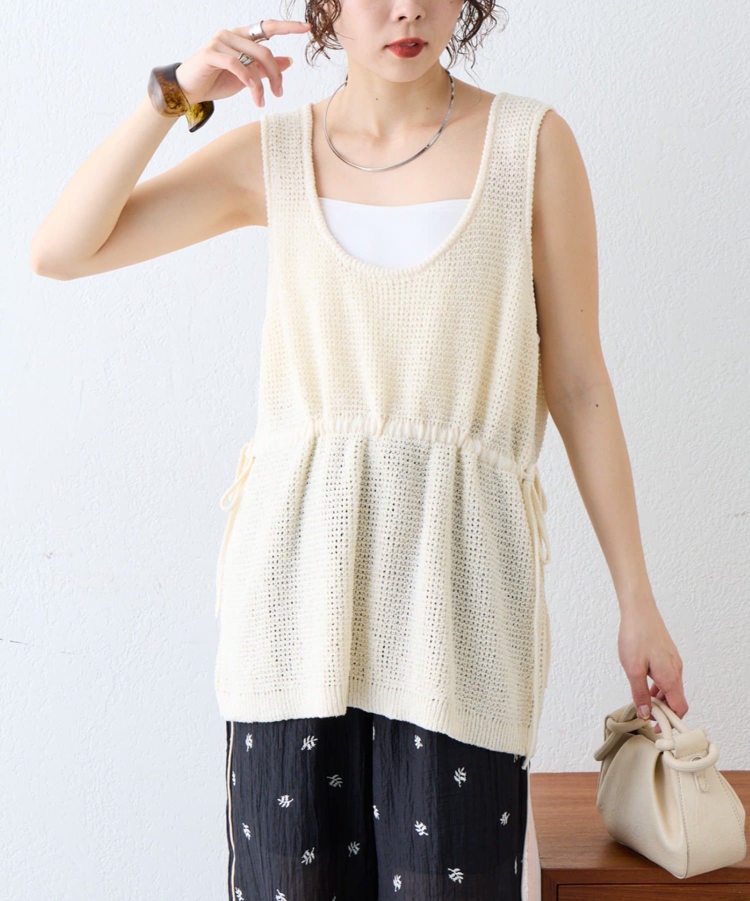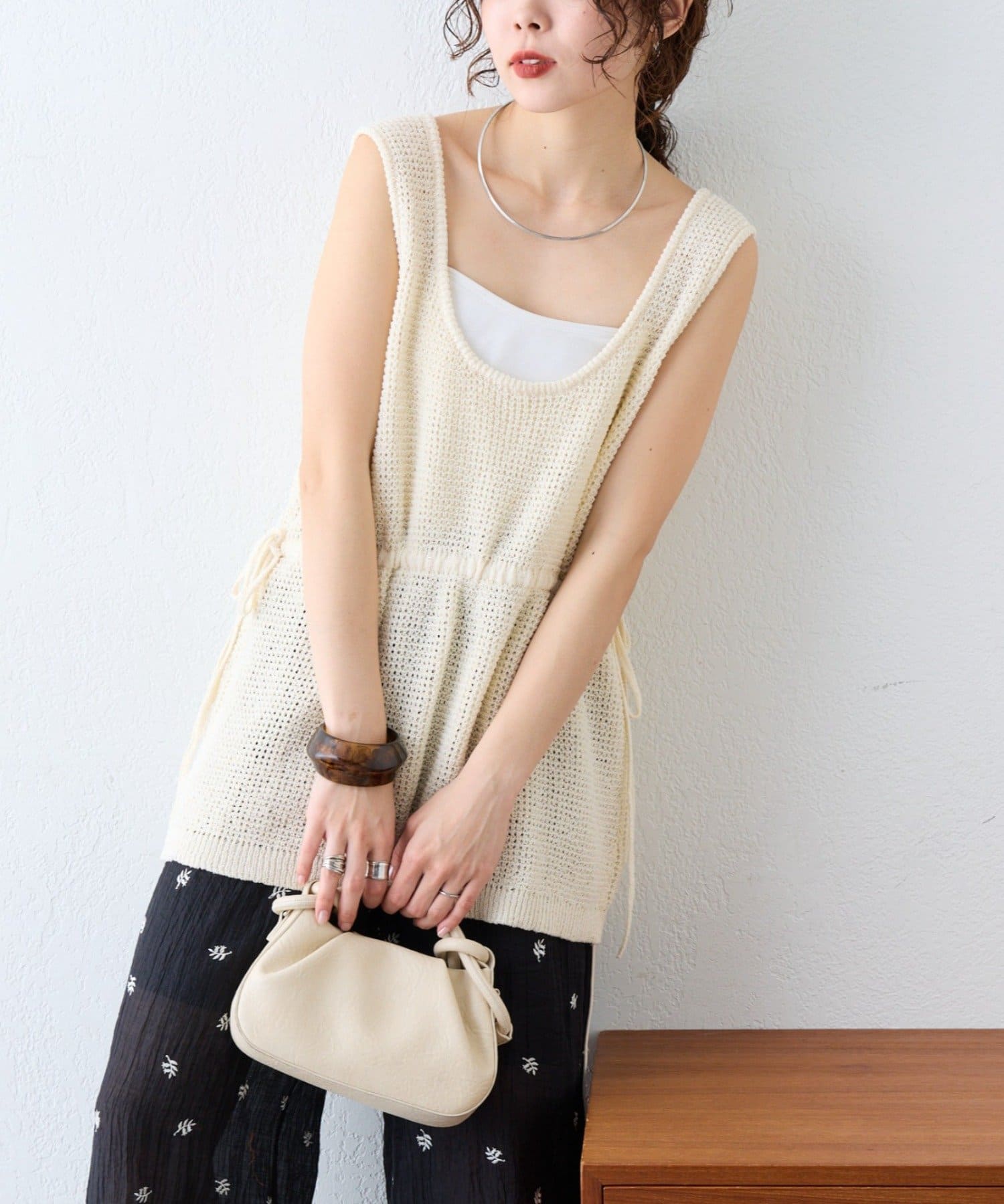 【前後2WAY】ウエスト紐メッシュニットベスト