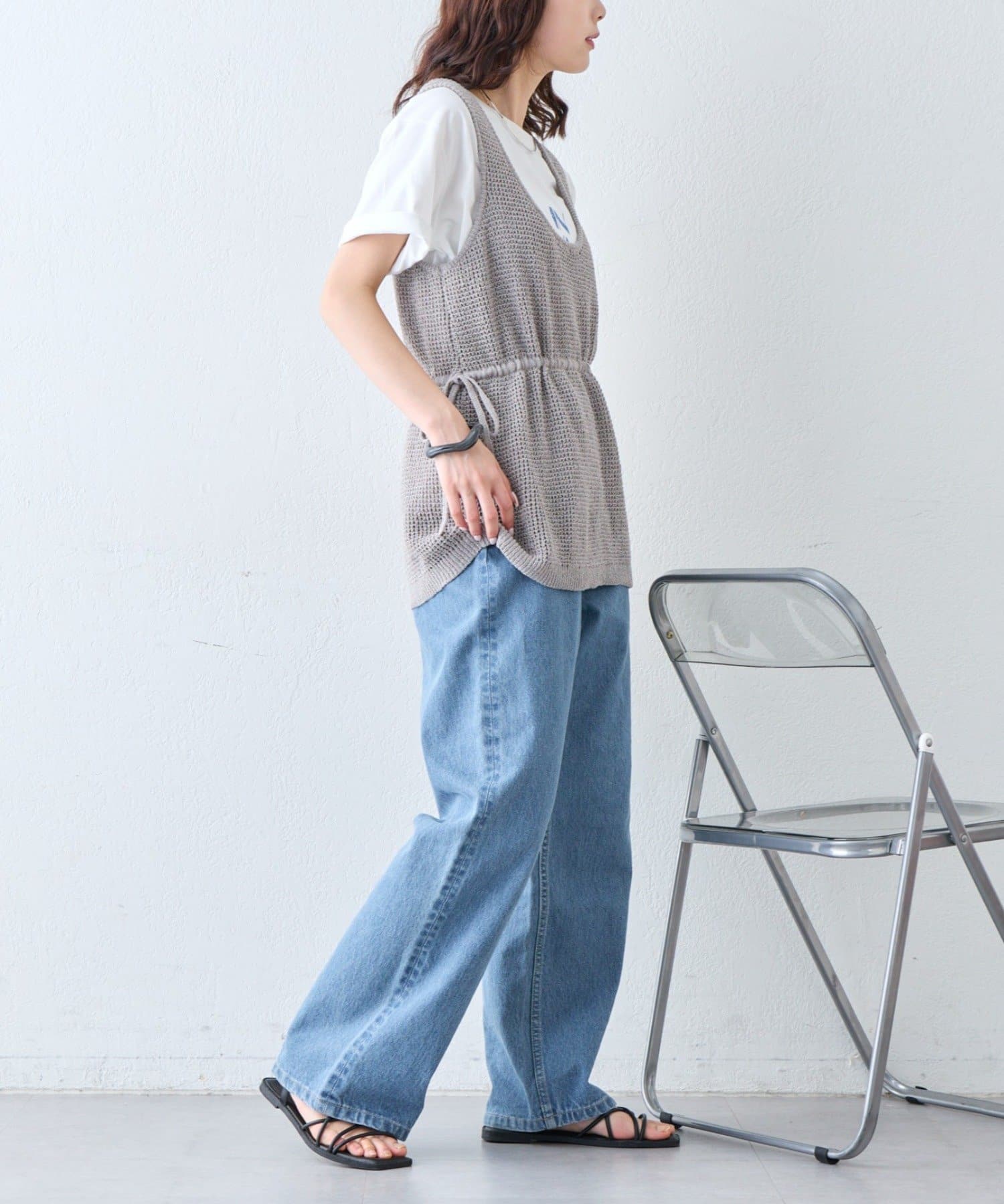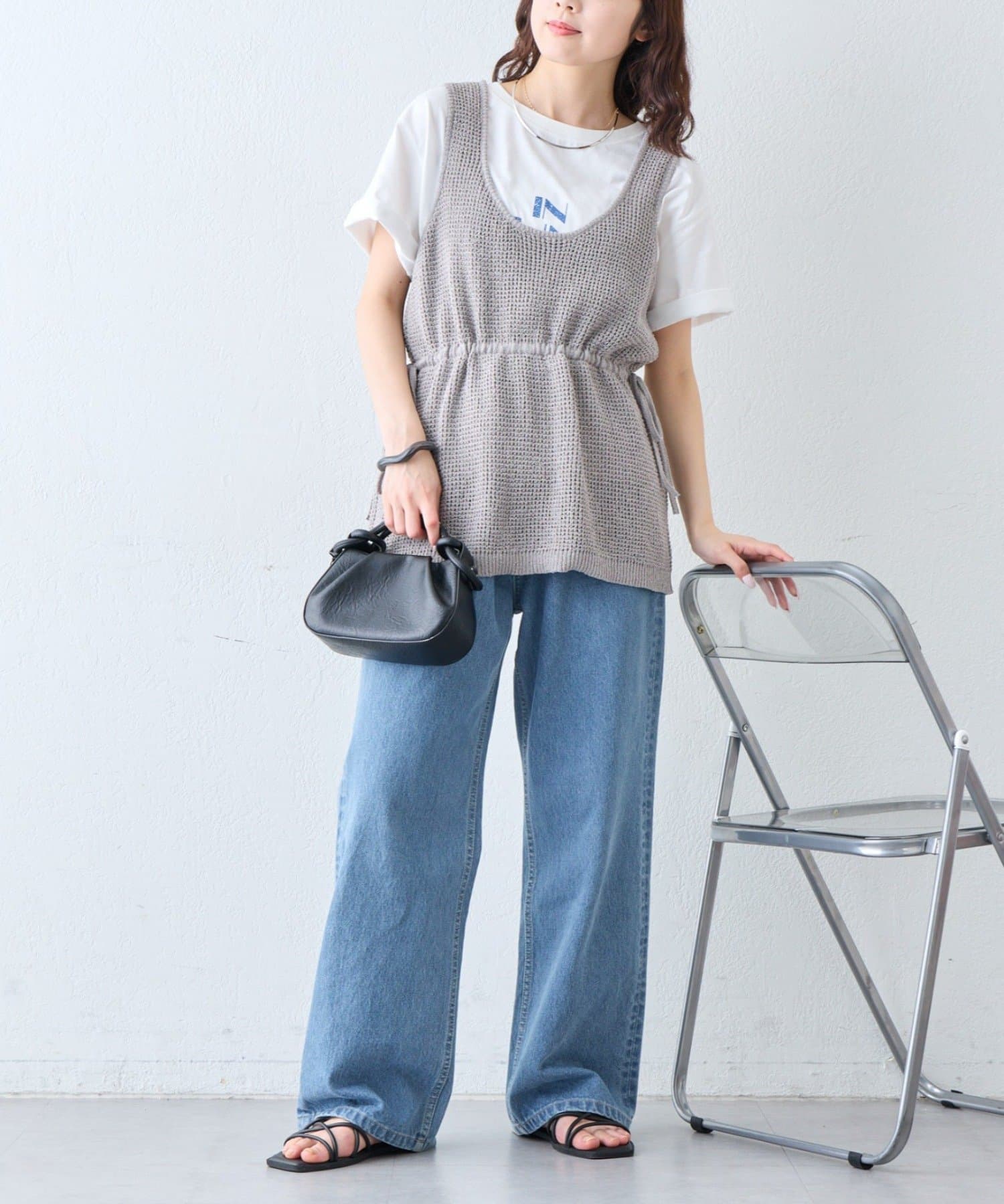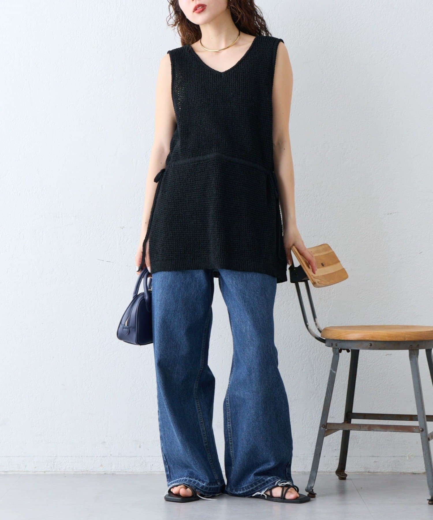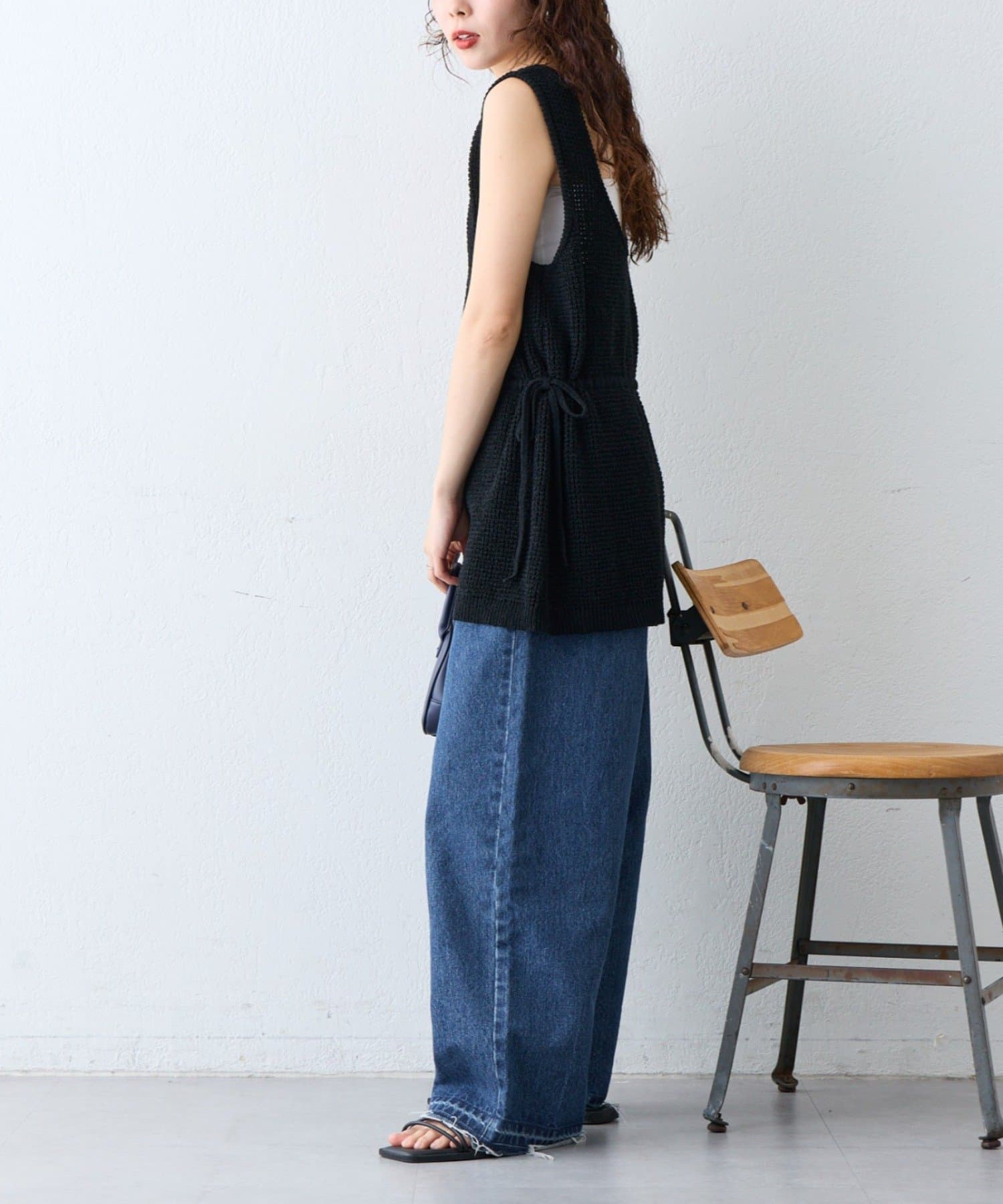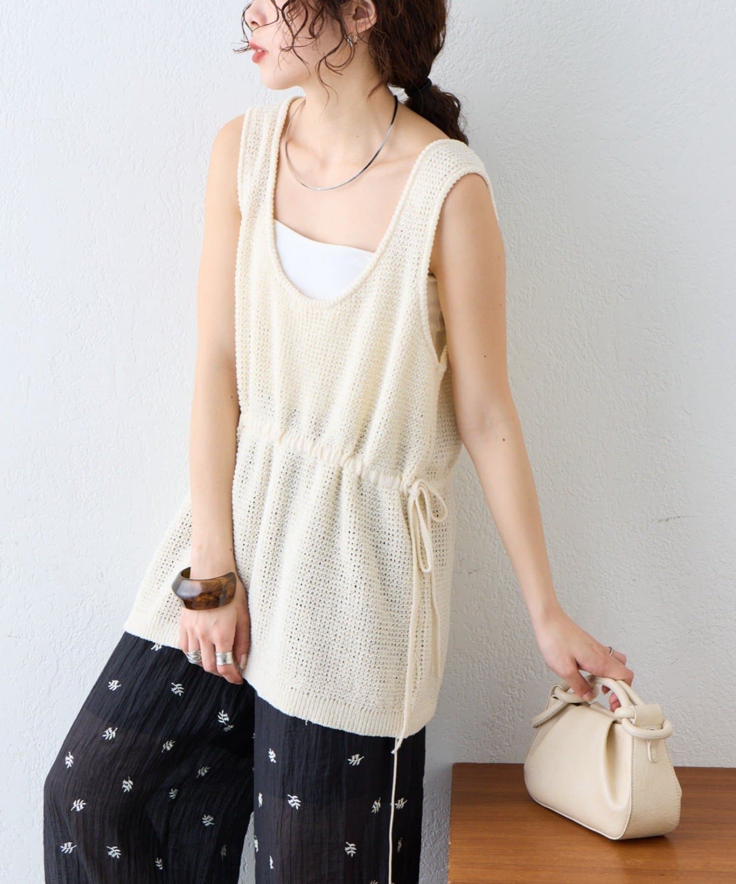 【前後2WAY】ウエスト紐メッシュニットベスト