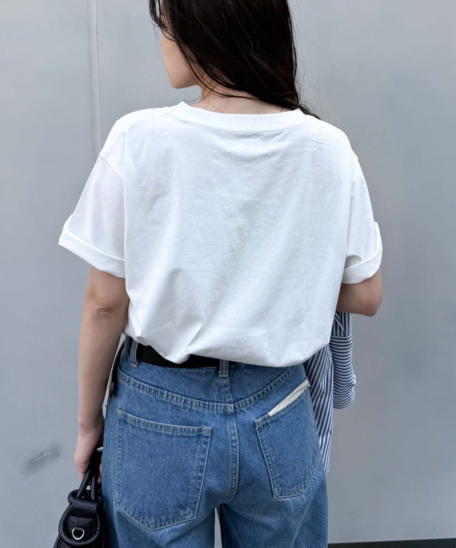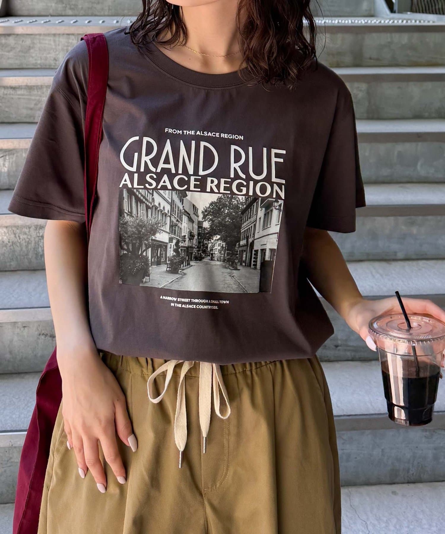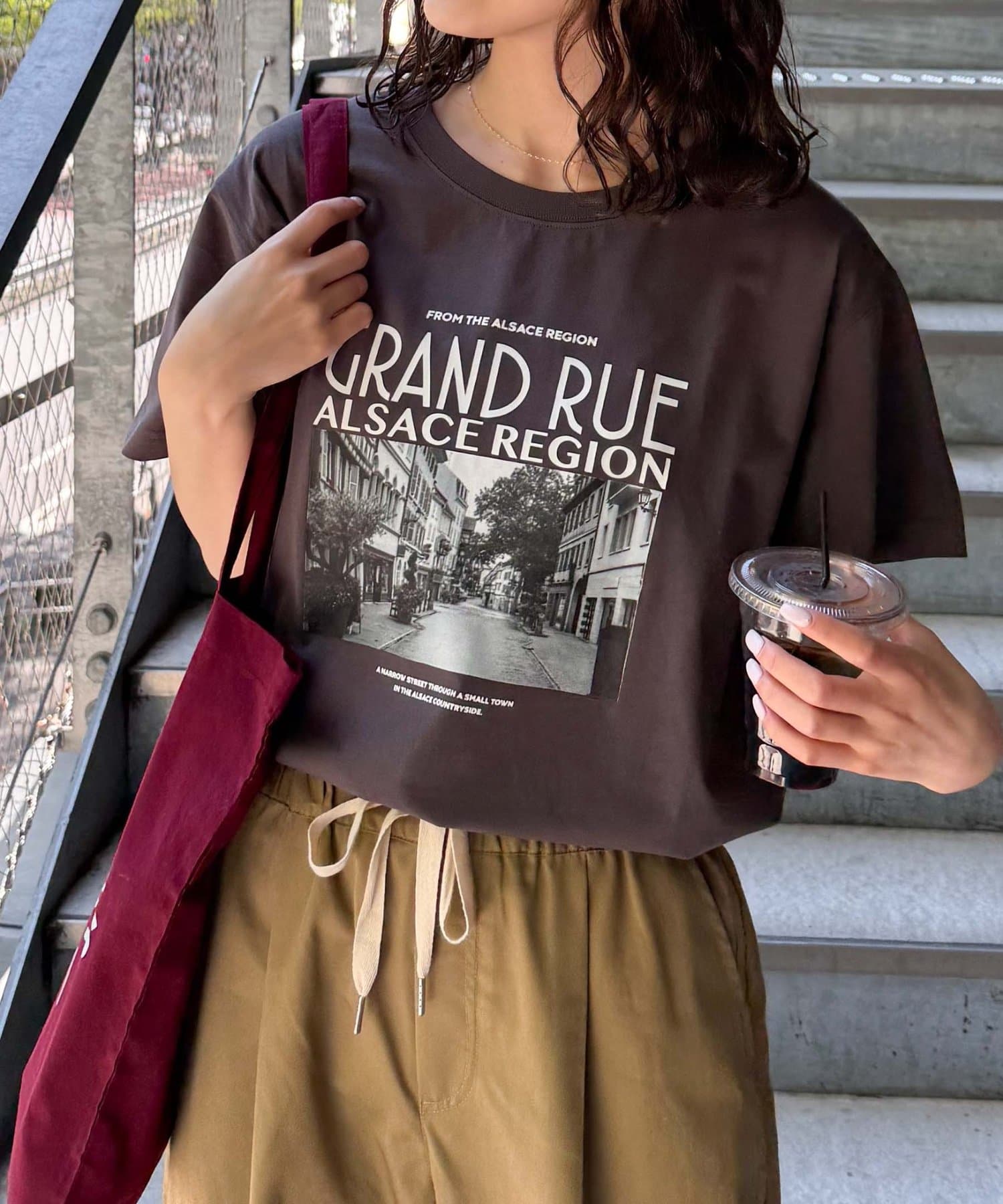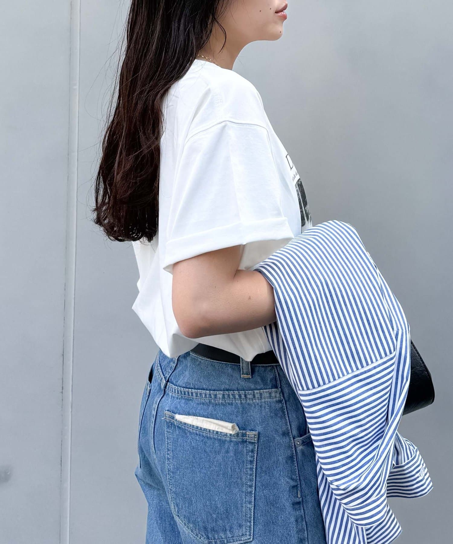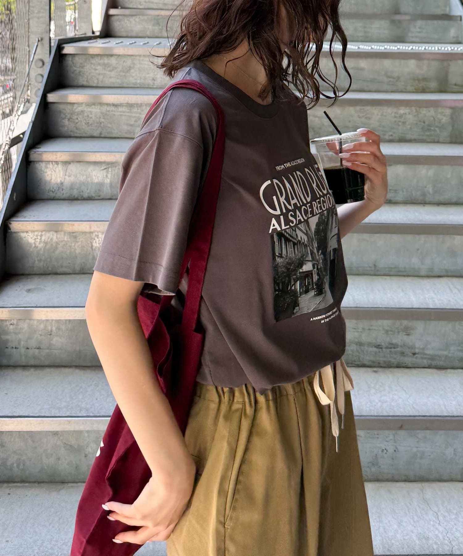 スタイリングに程よいアクセントをプラスしてくれる、大人っぽく着られるフォトプリントTシャツ。