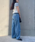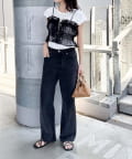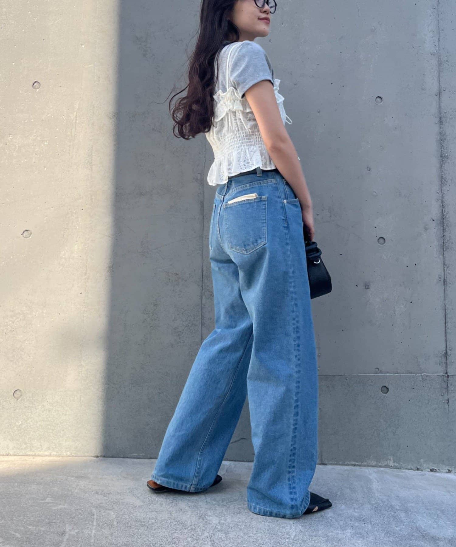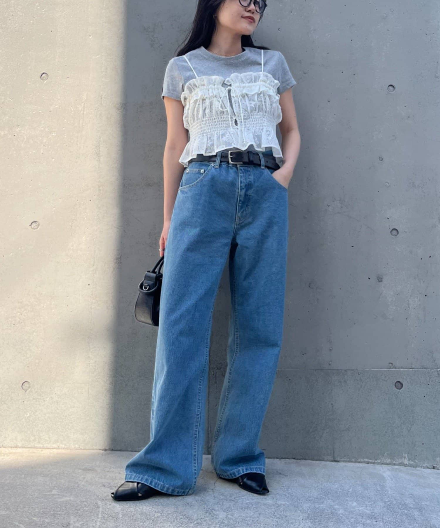 シャツなどゆったりめのアイテムにも重ねられるのもポイント。