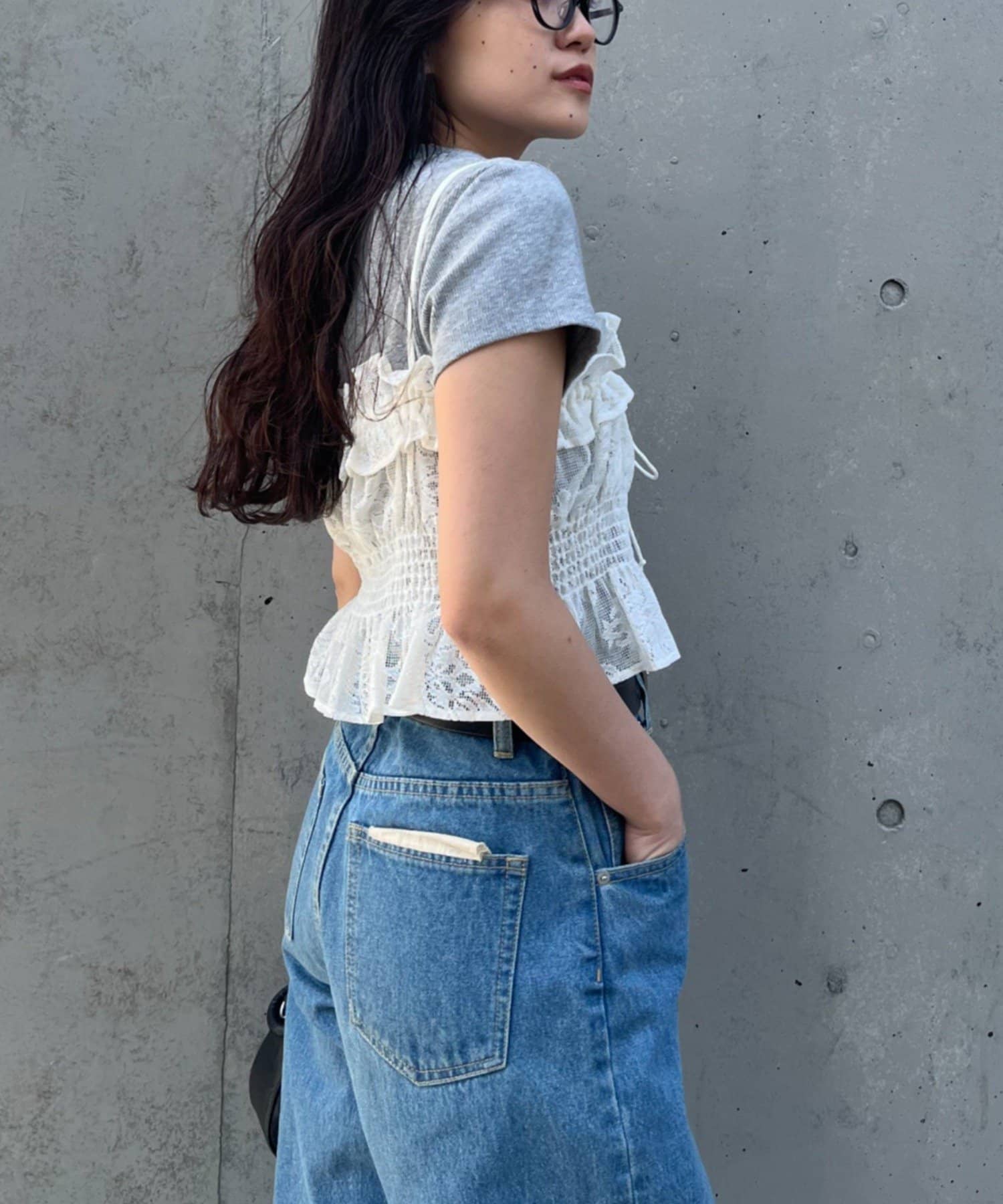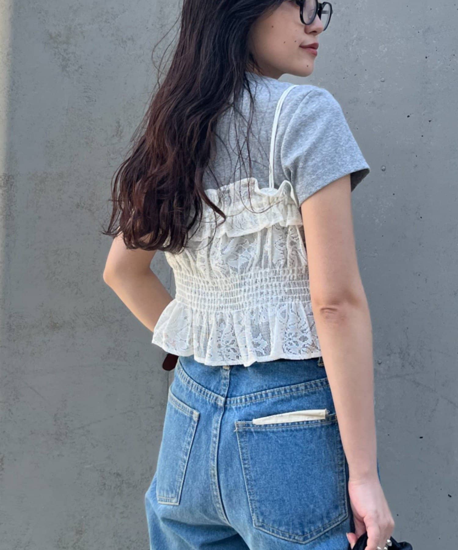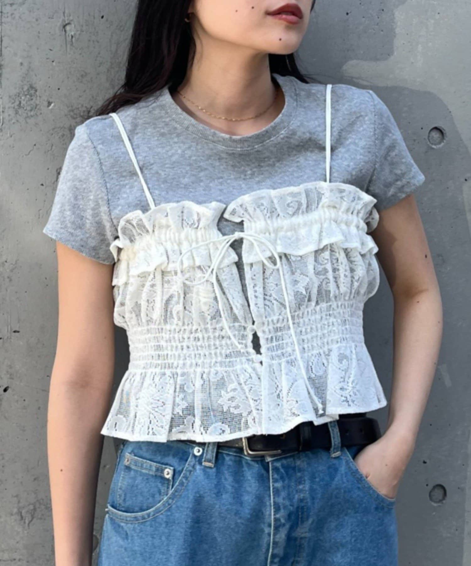 シンプルなTシャツやタンクトップに、サッとレースデザインをプラス!