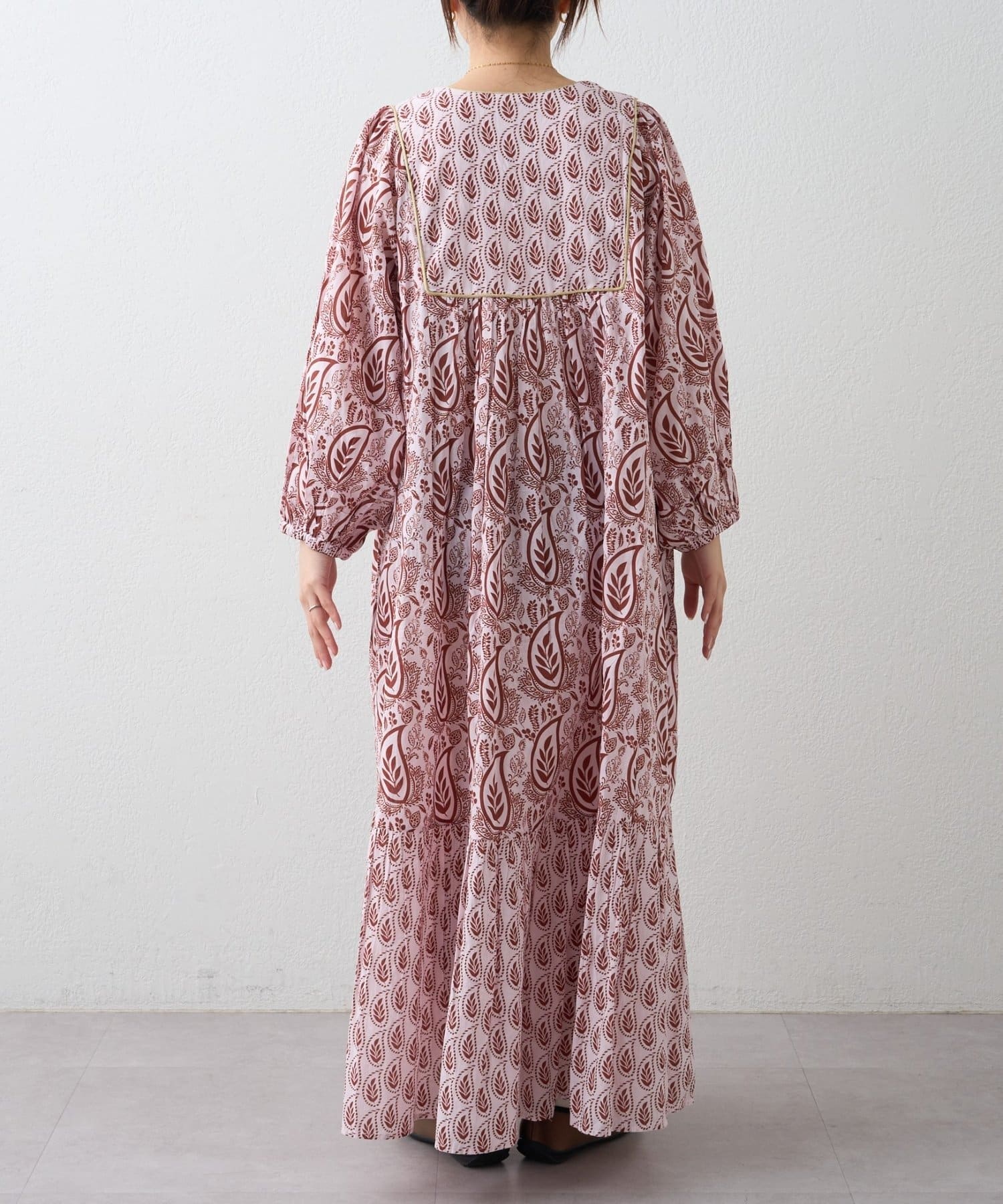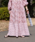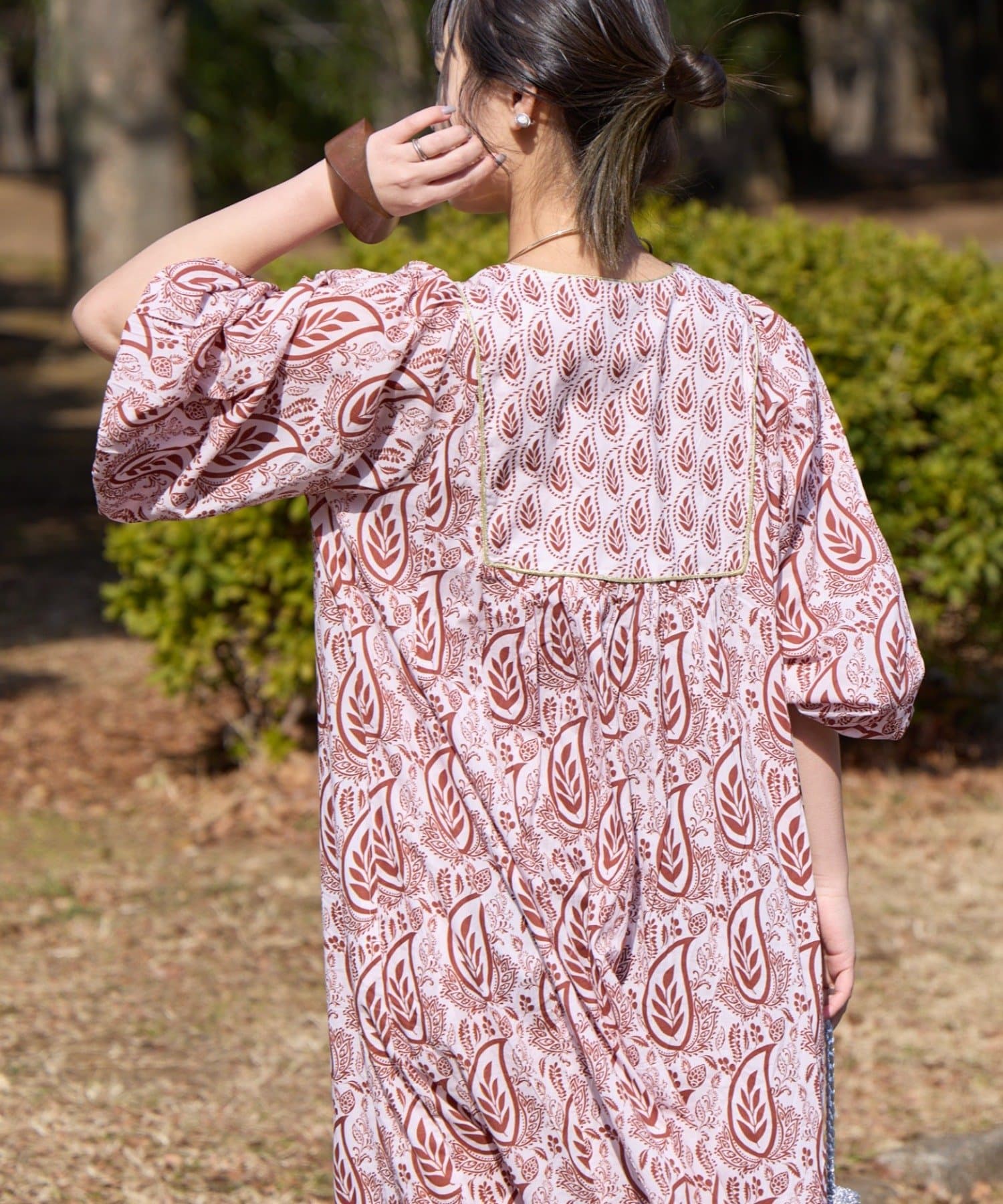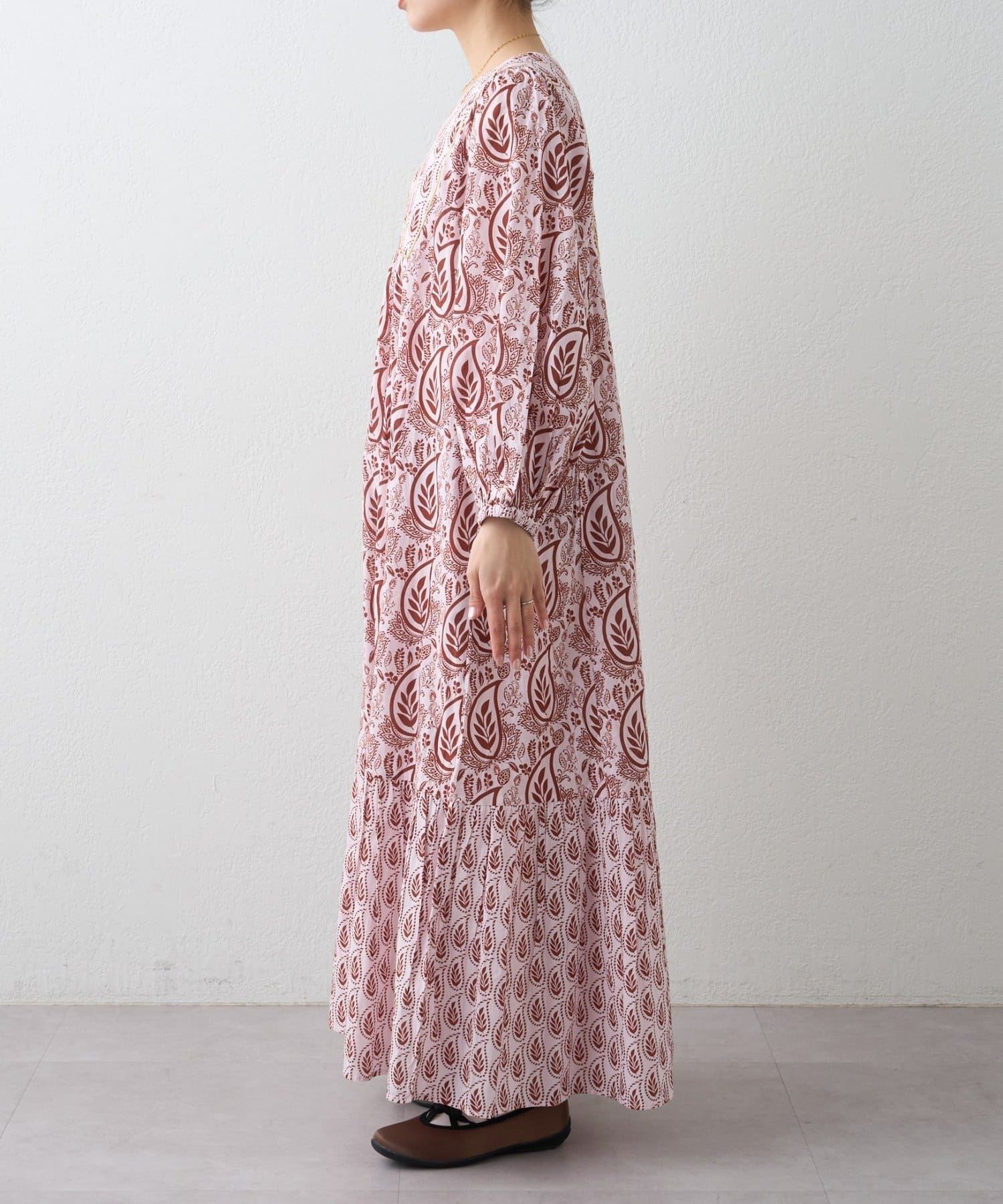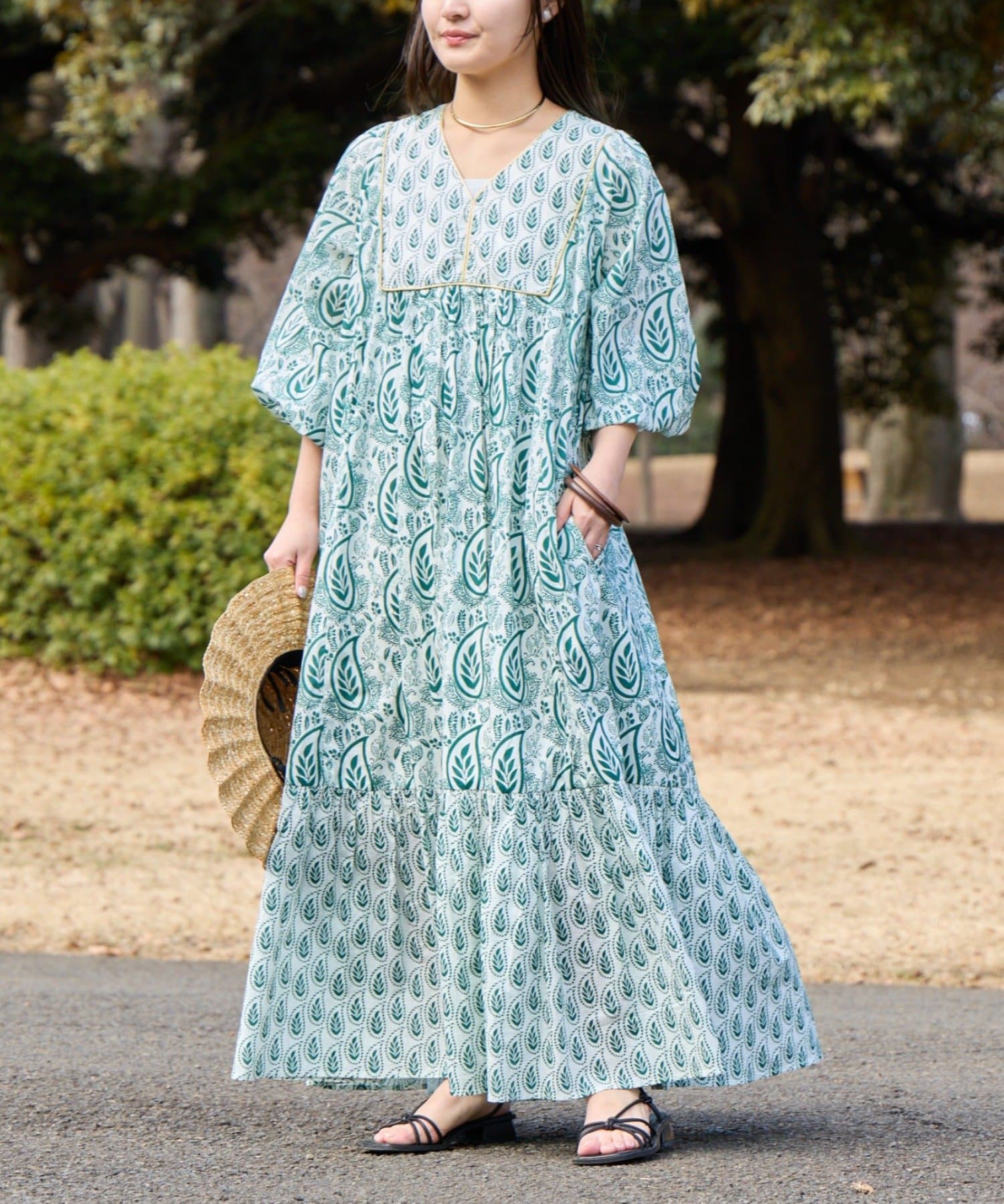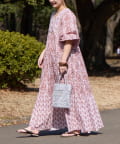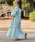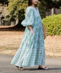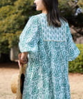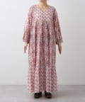 【Aguni】リーフプリントボリュームワンピース