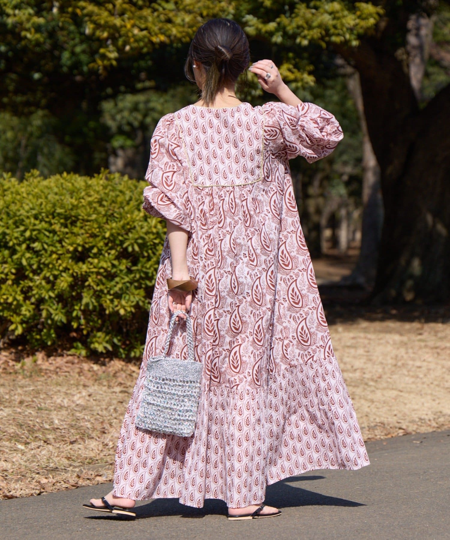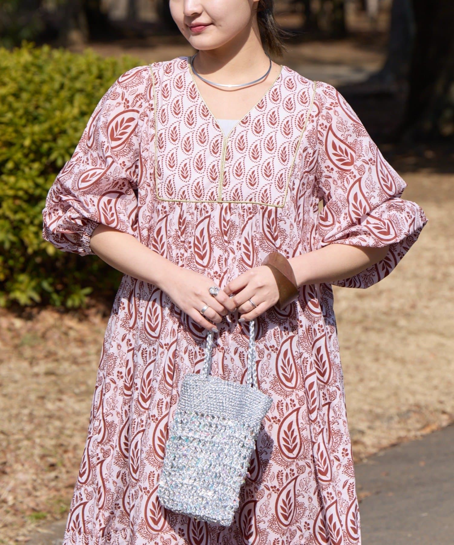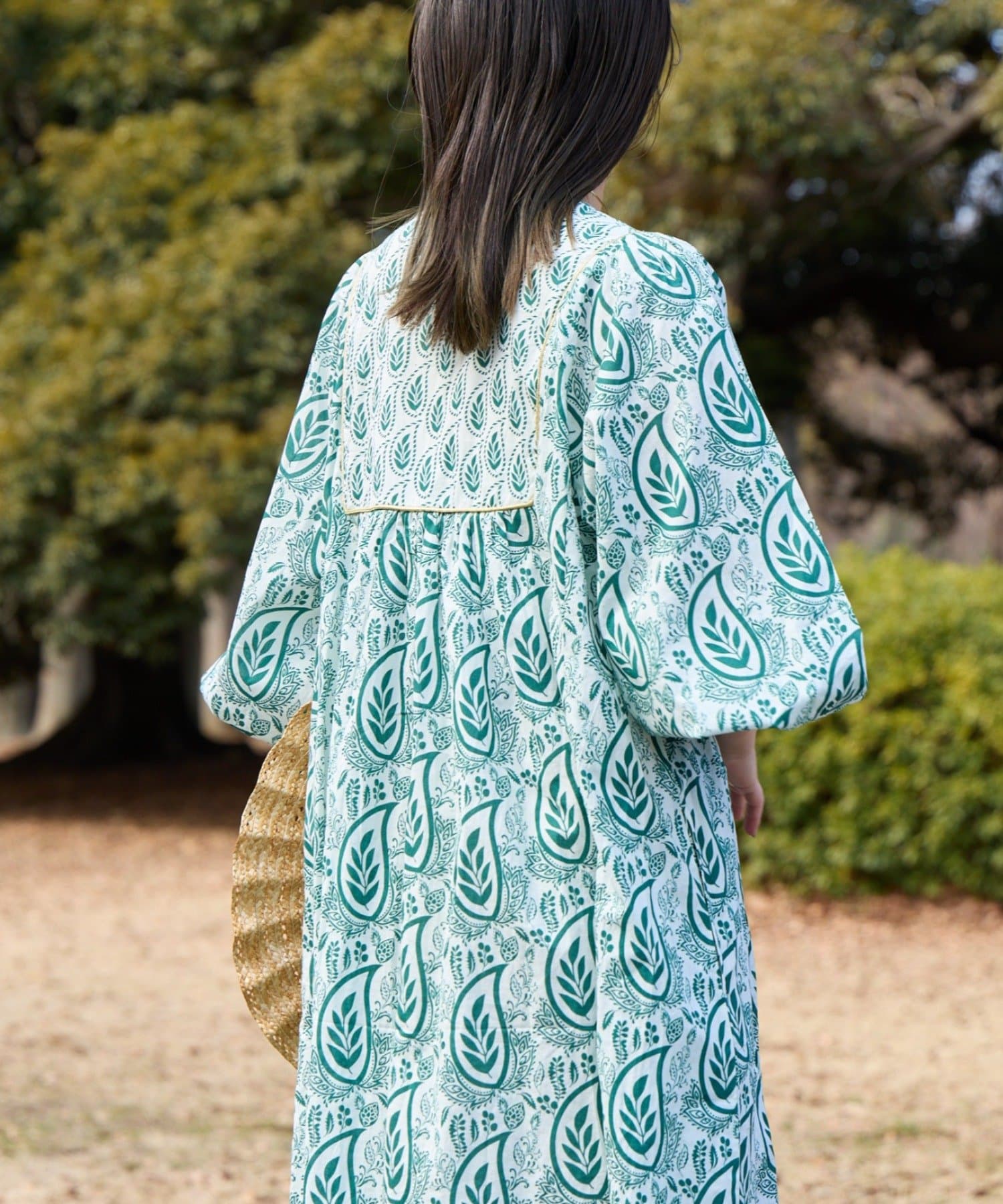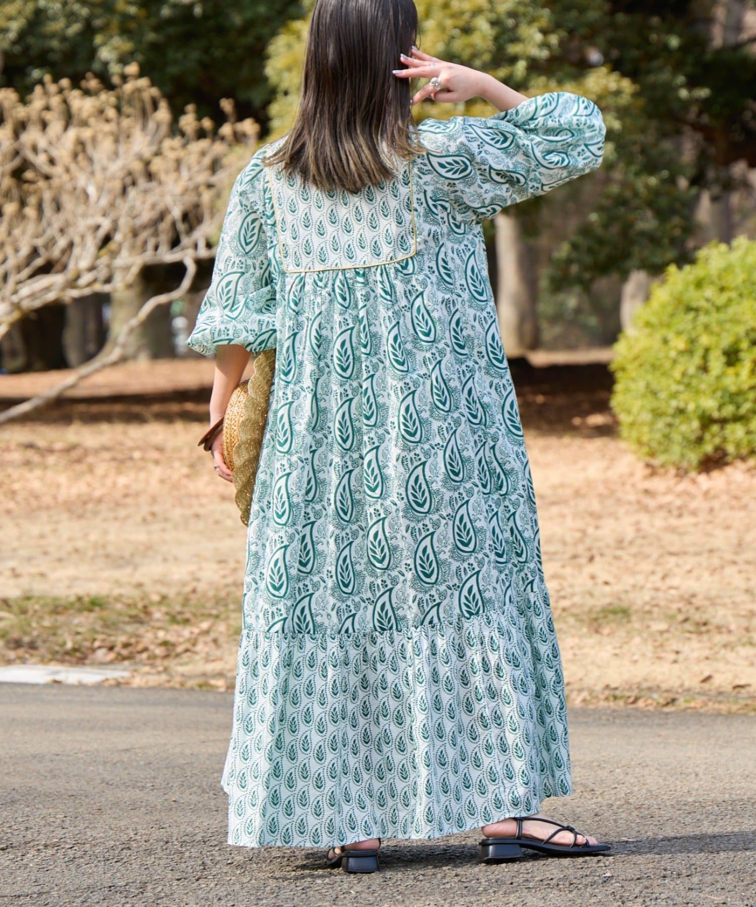 【Aguni】リーフプリントボリュームワンピース
