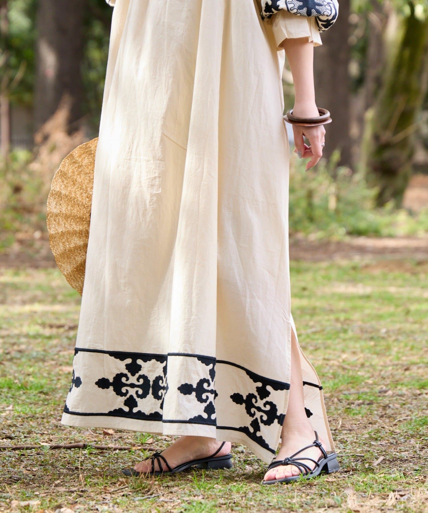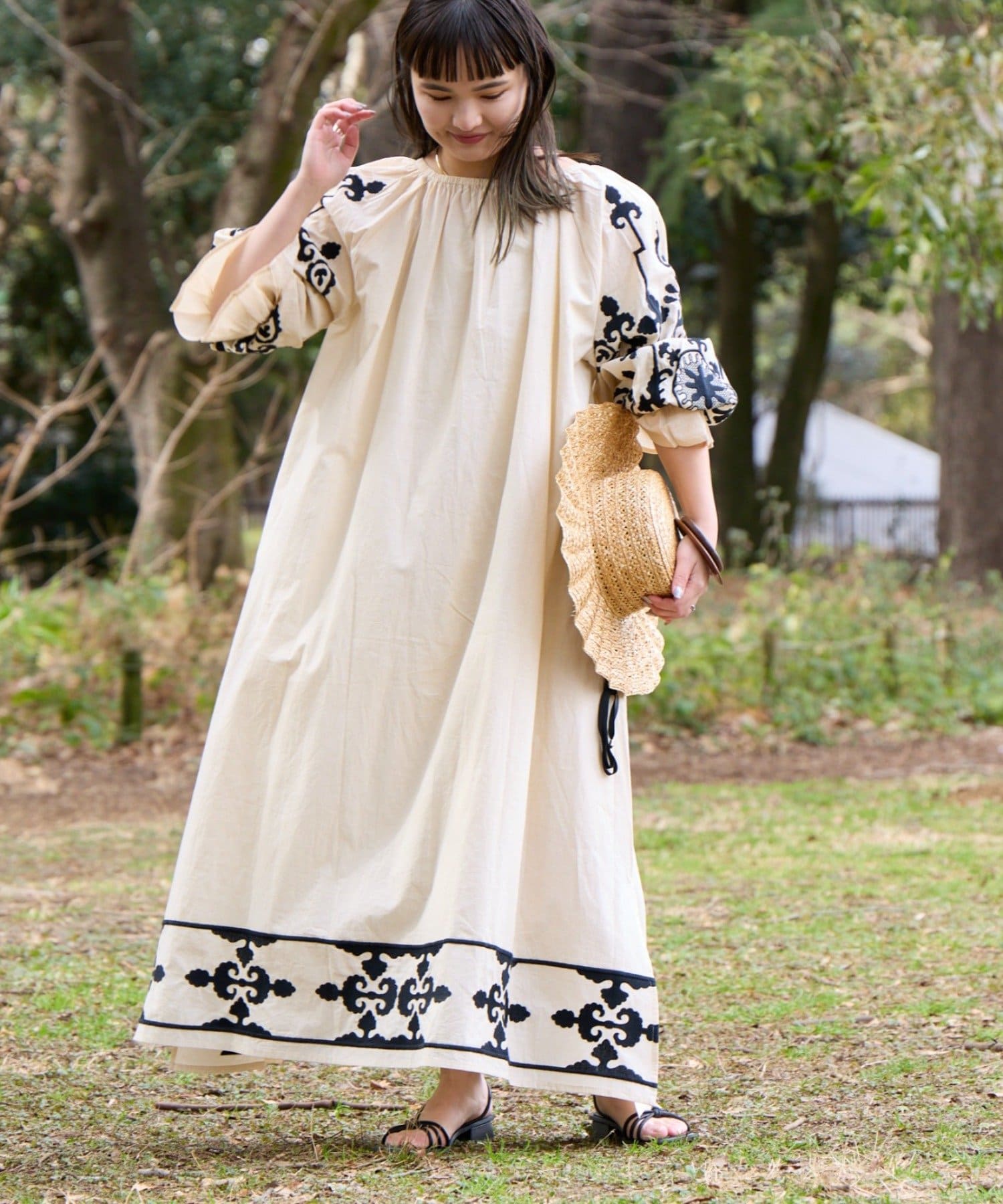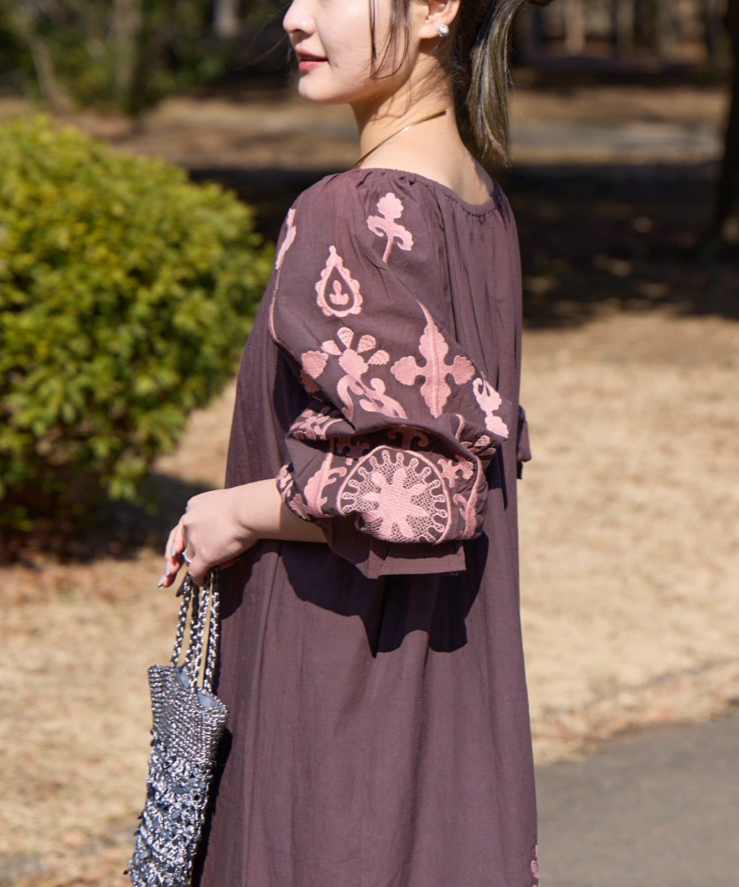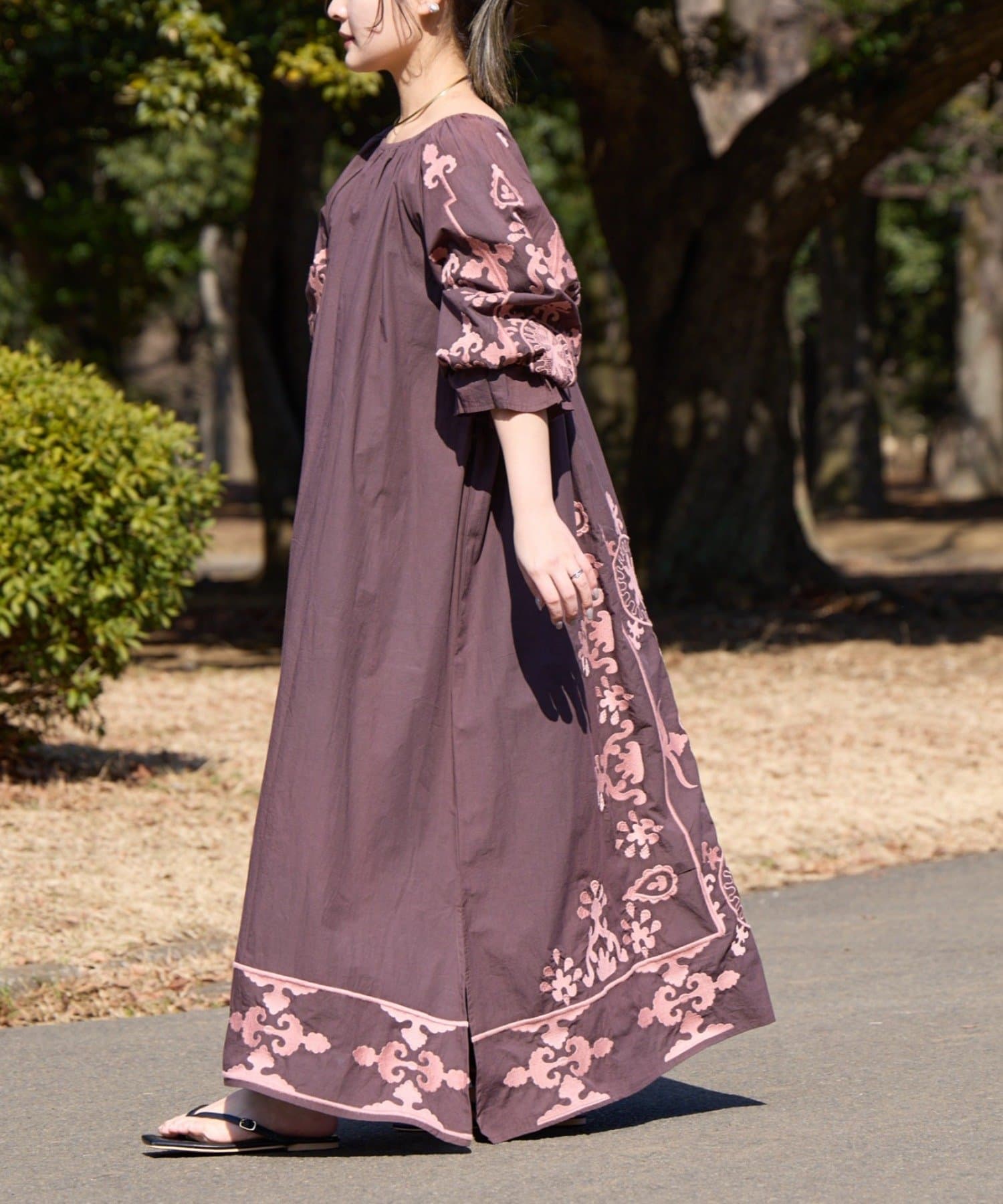 一枚でさらっと着るだけで、刺繍の表情が引き立つナチュラルなスタイリングが完成します。