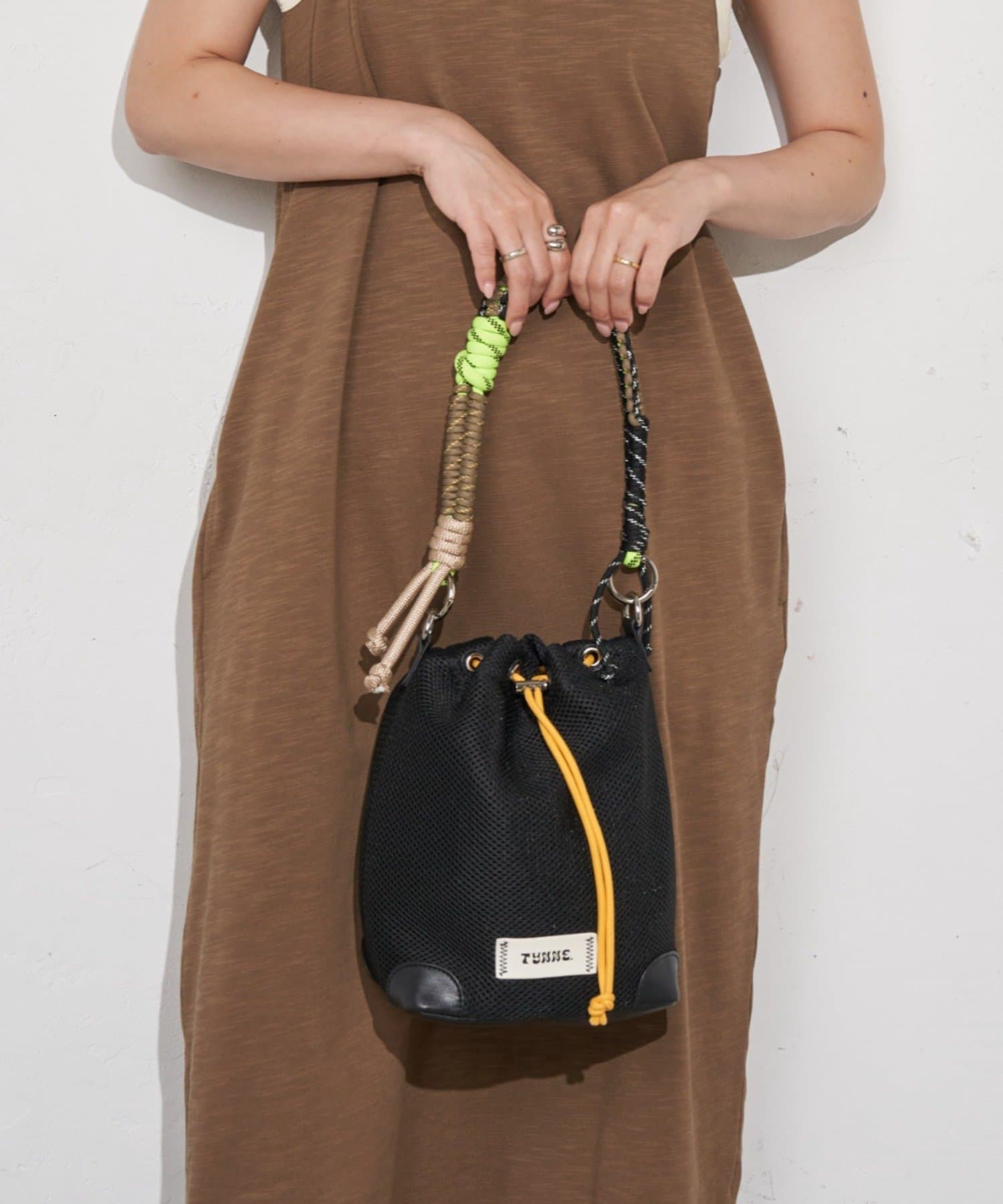 :【TYNNE.】【軽量】2WAY配色メッシュロープ巾着バッグ