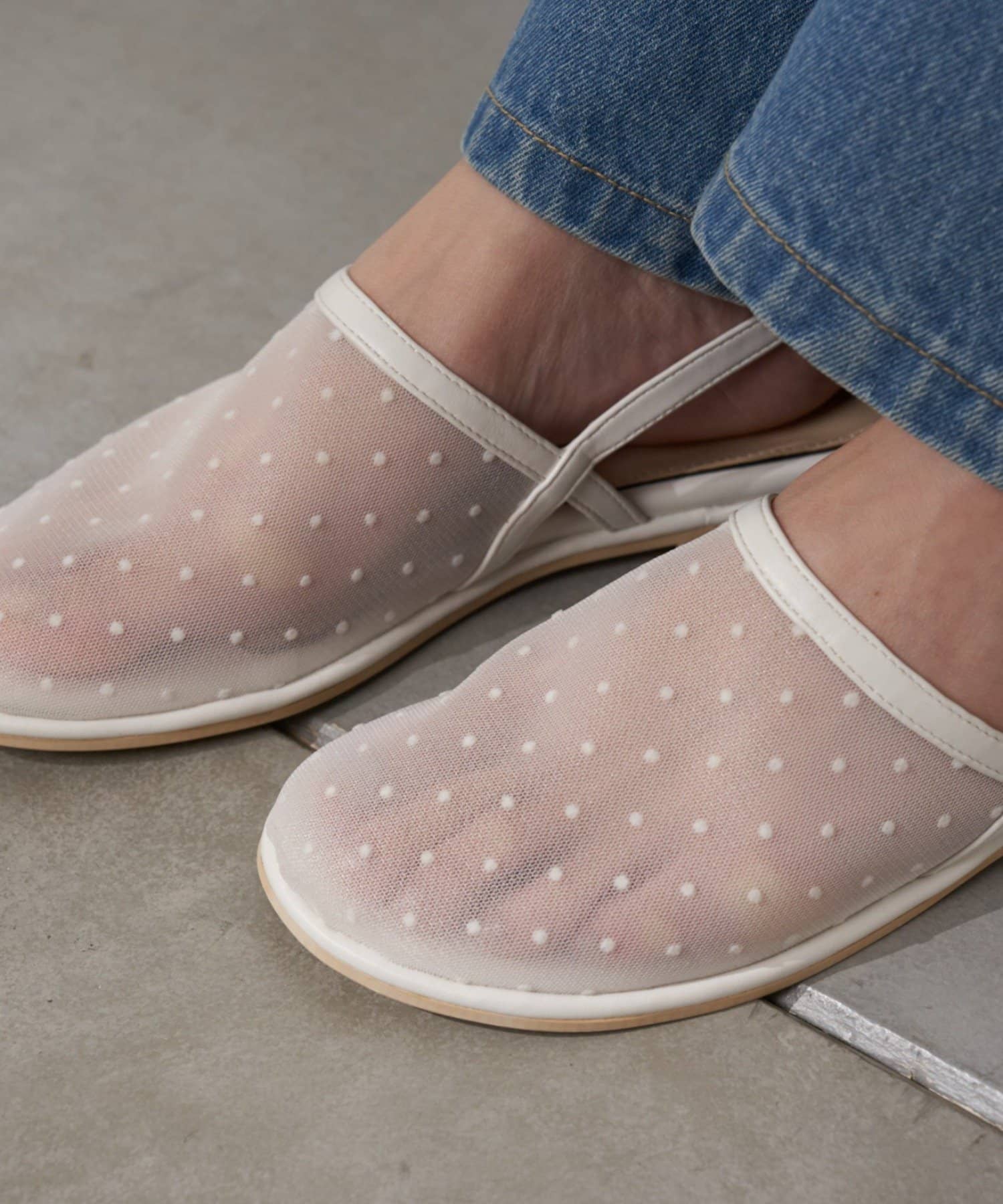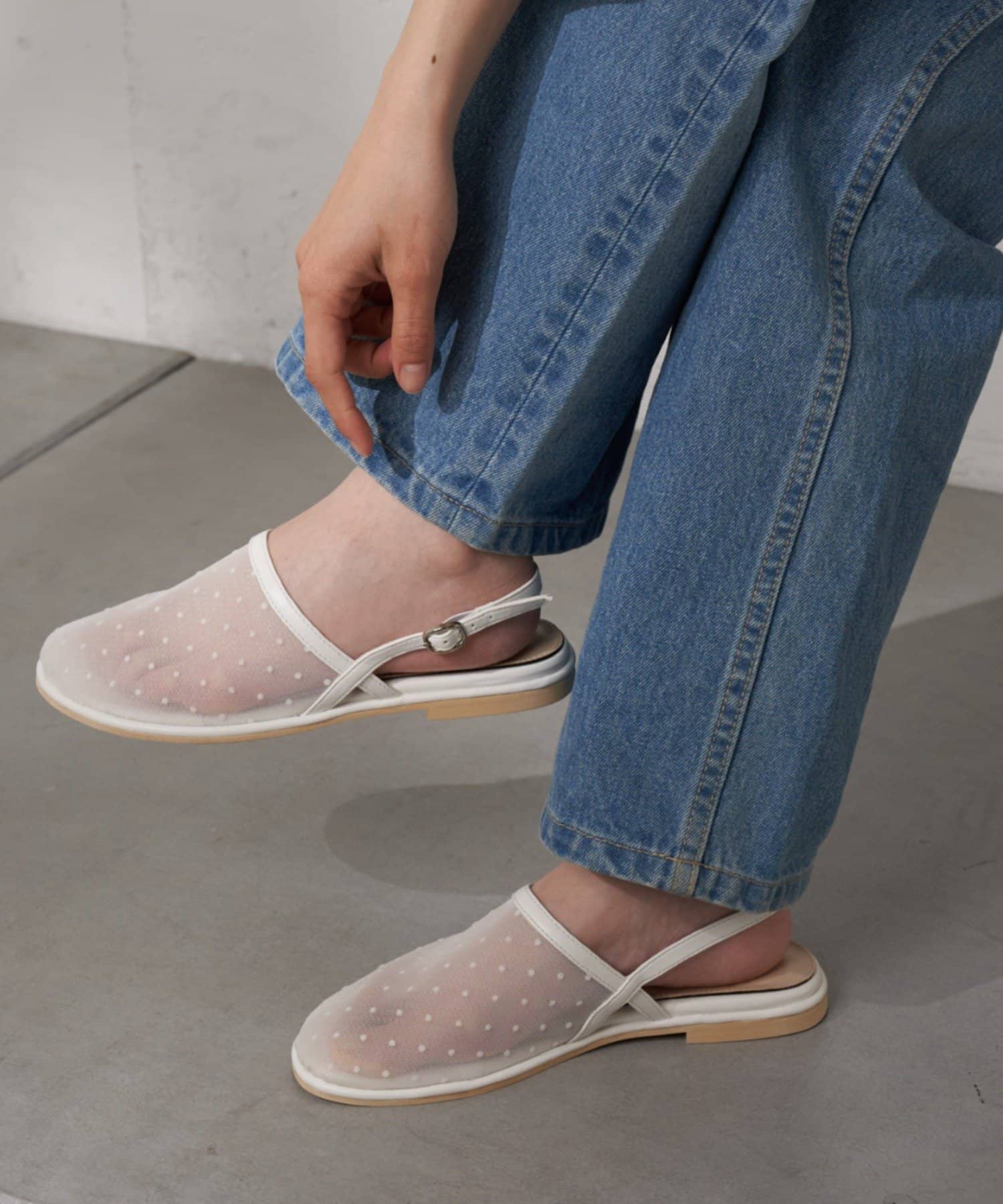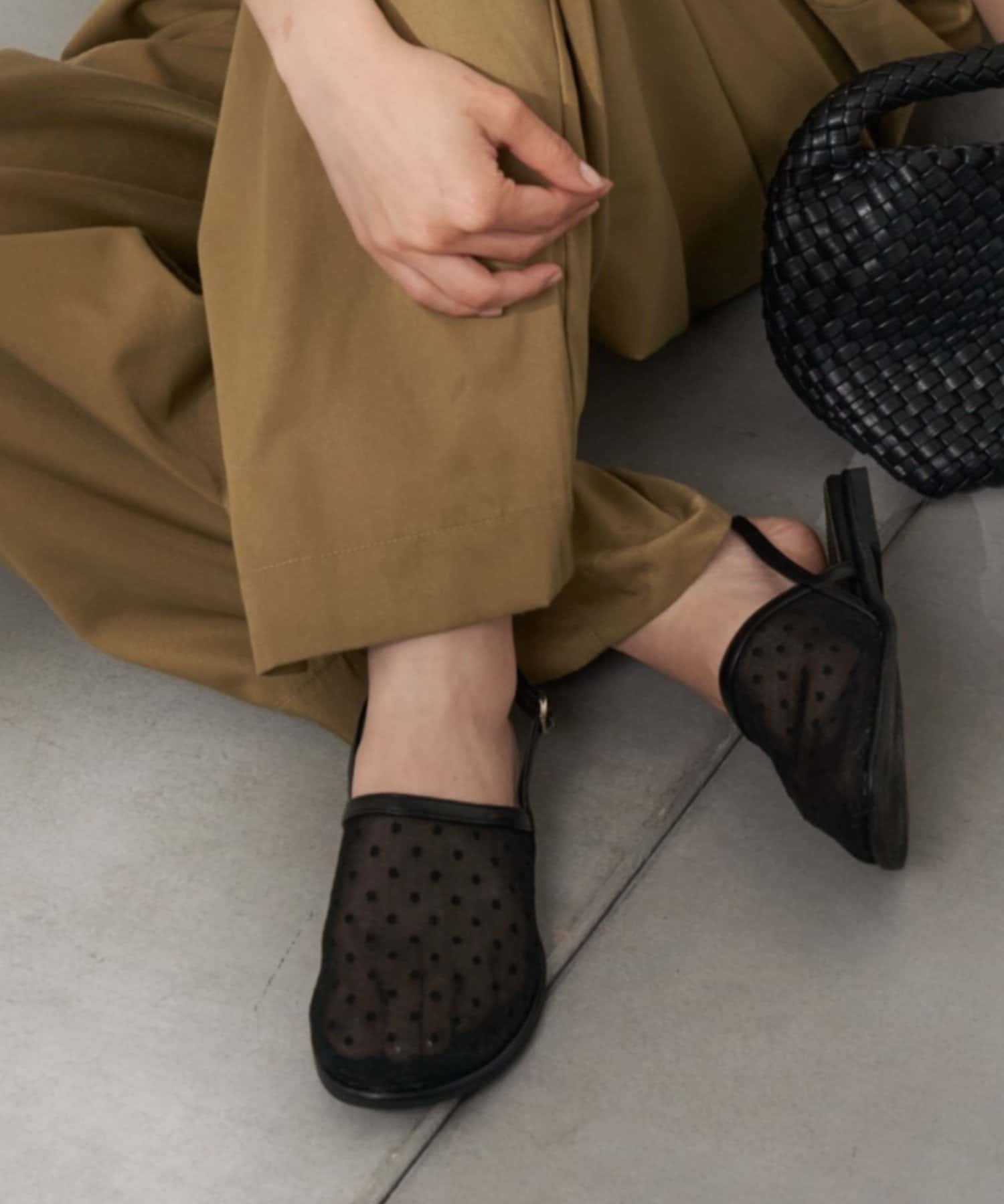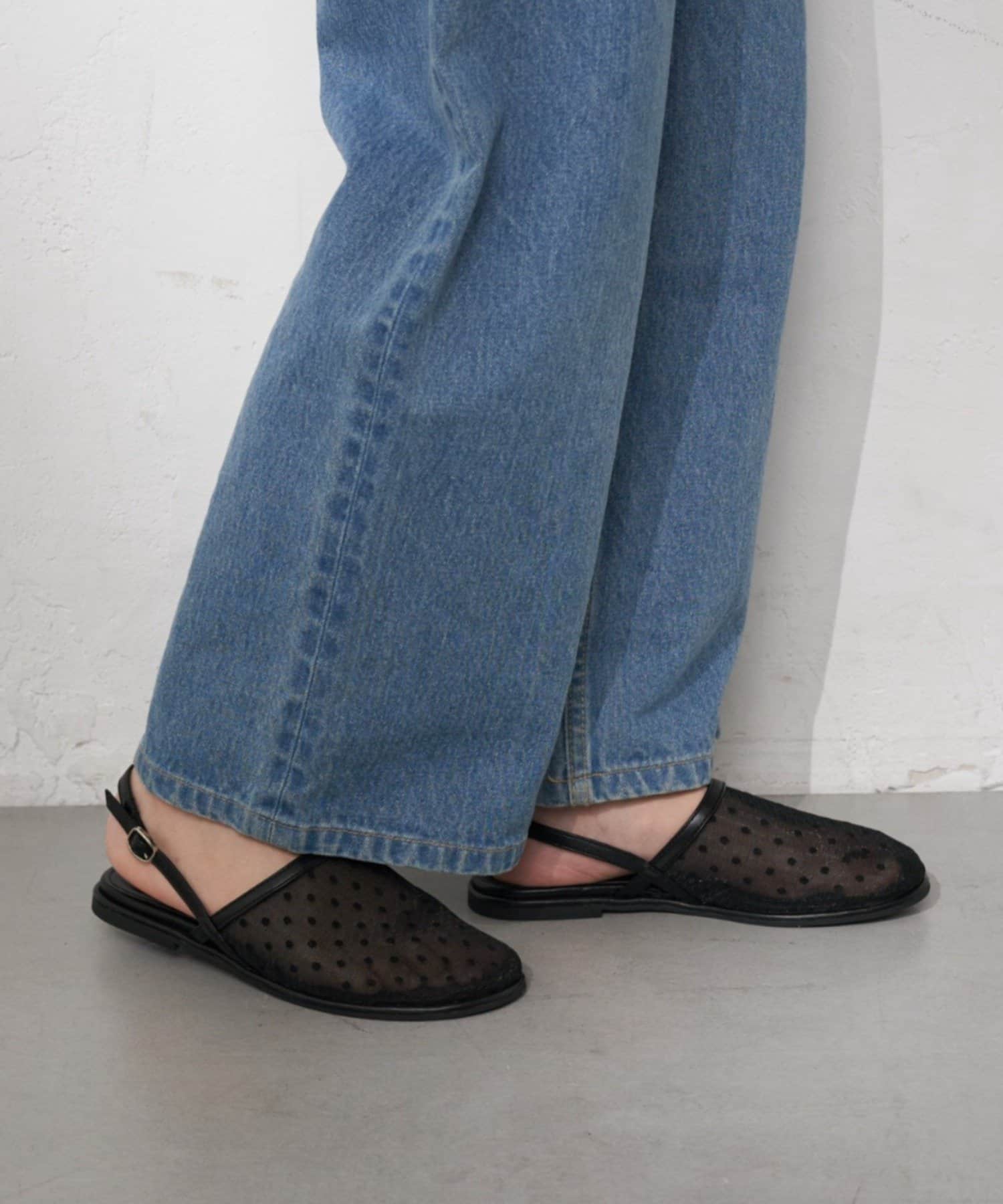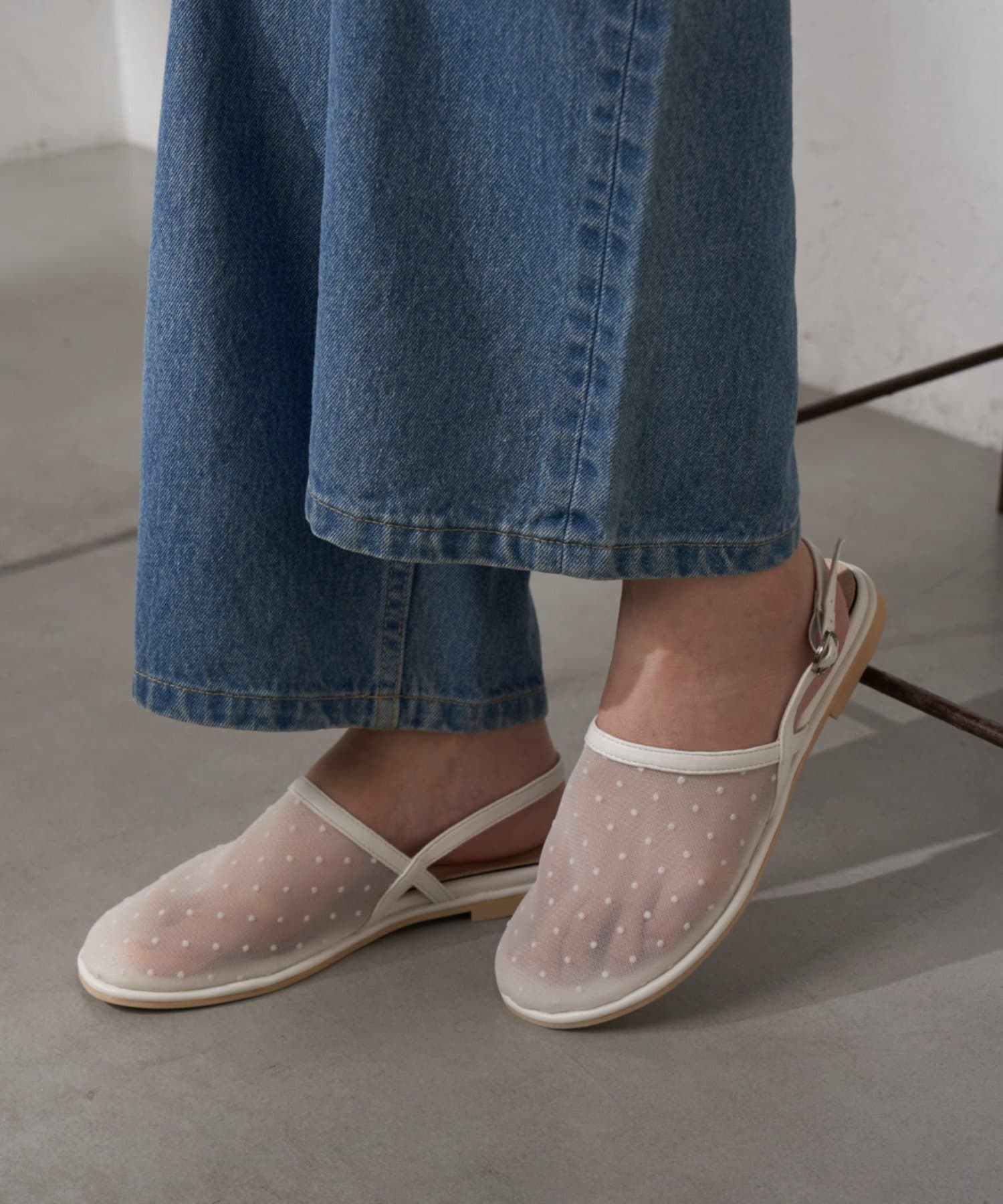 :【S~XLサイズ展開!】ドット柄シアーメッシュフラットサンダル
