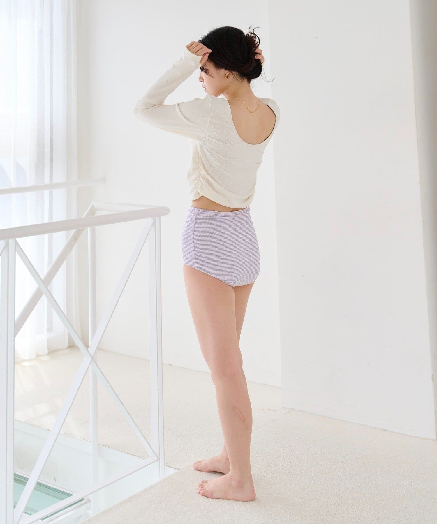 ショーツは安心感のあるハイウエスト仕様で、透けにくい裏地付き仕様。