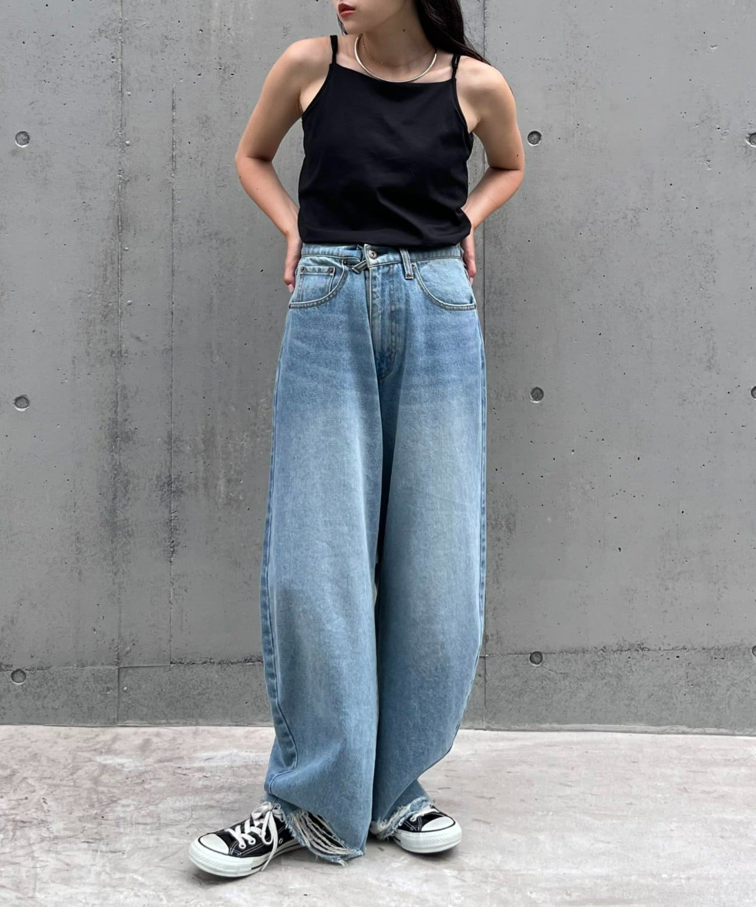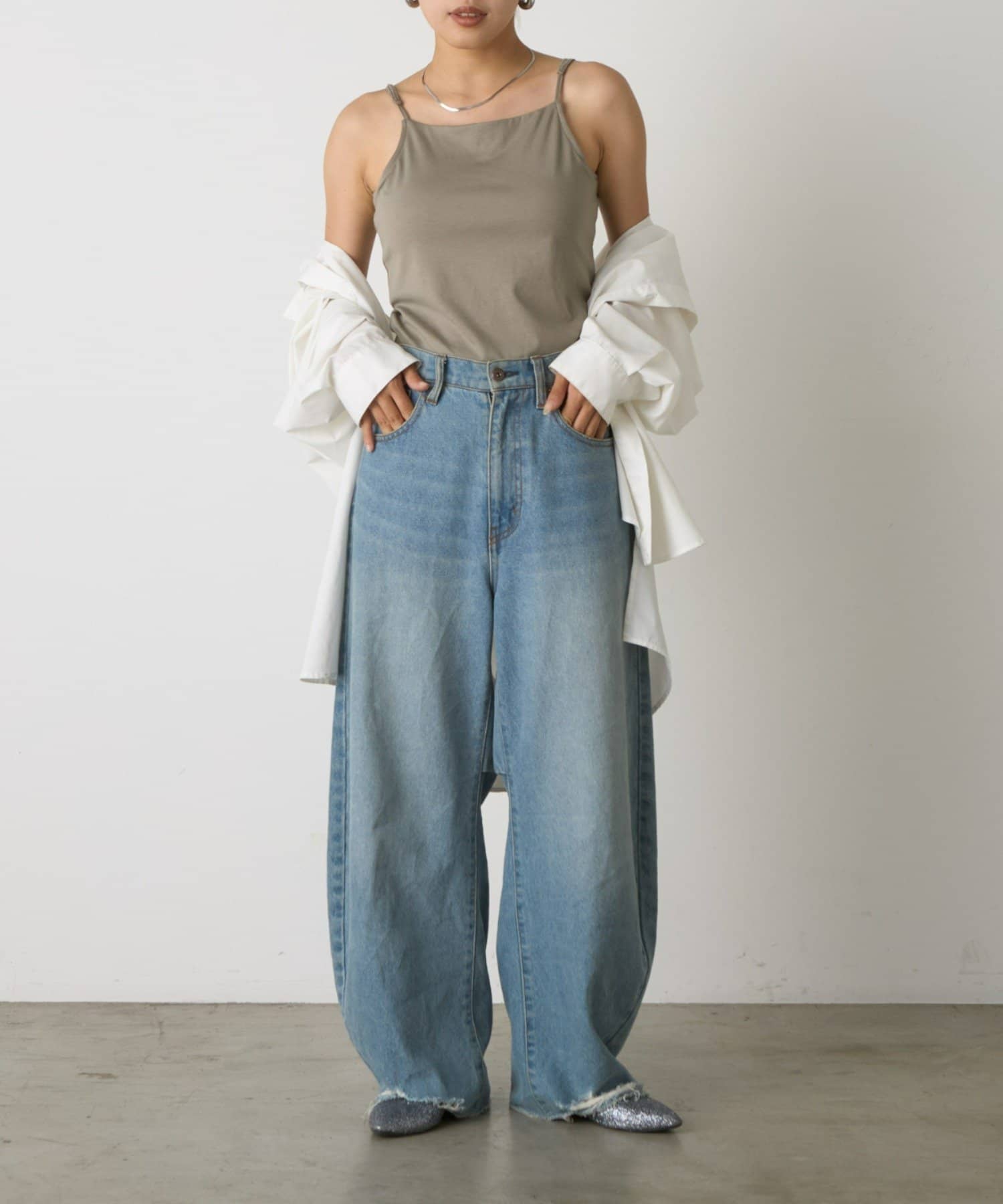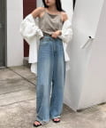 定番のデニム合わせでカジュアルスタイルやスカート、