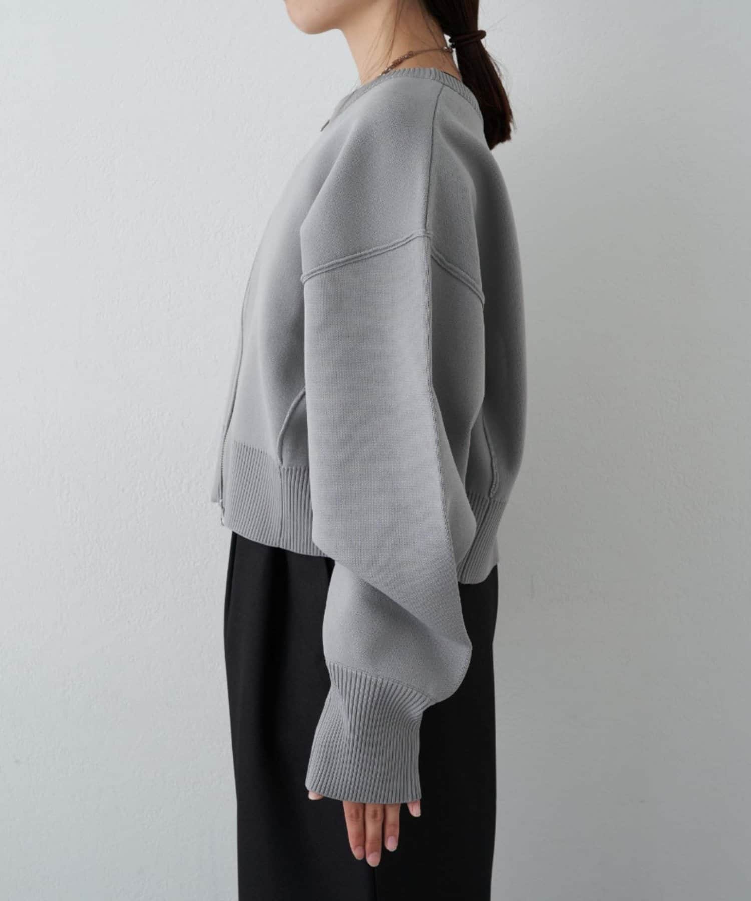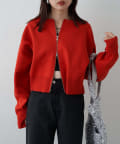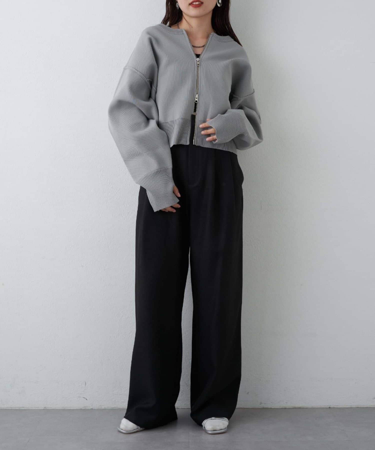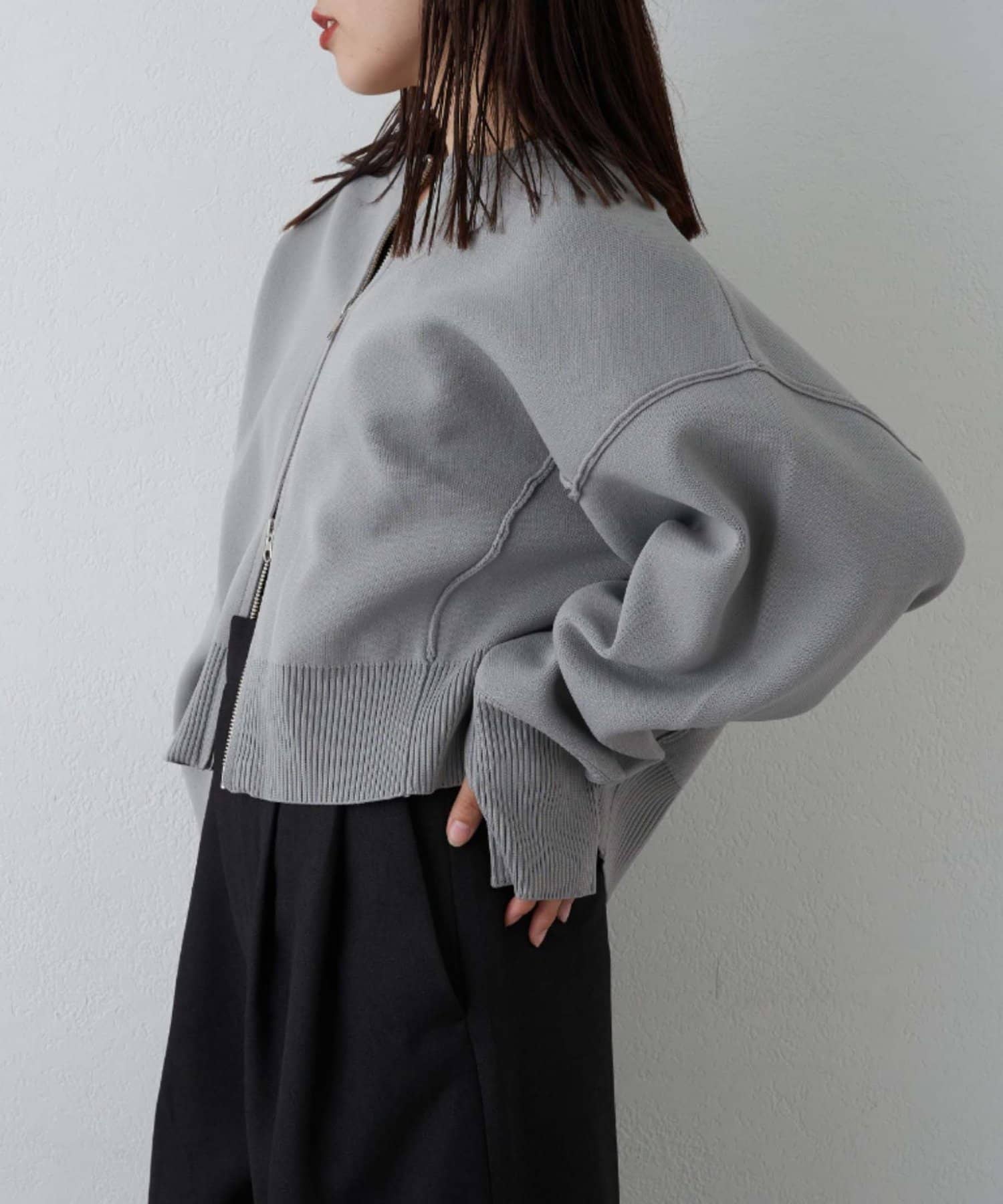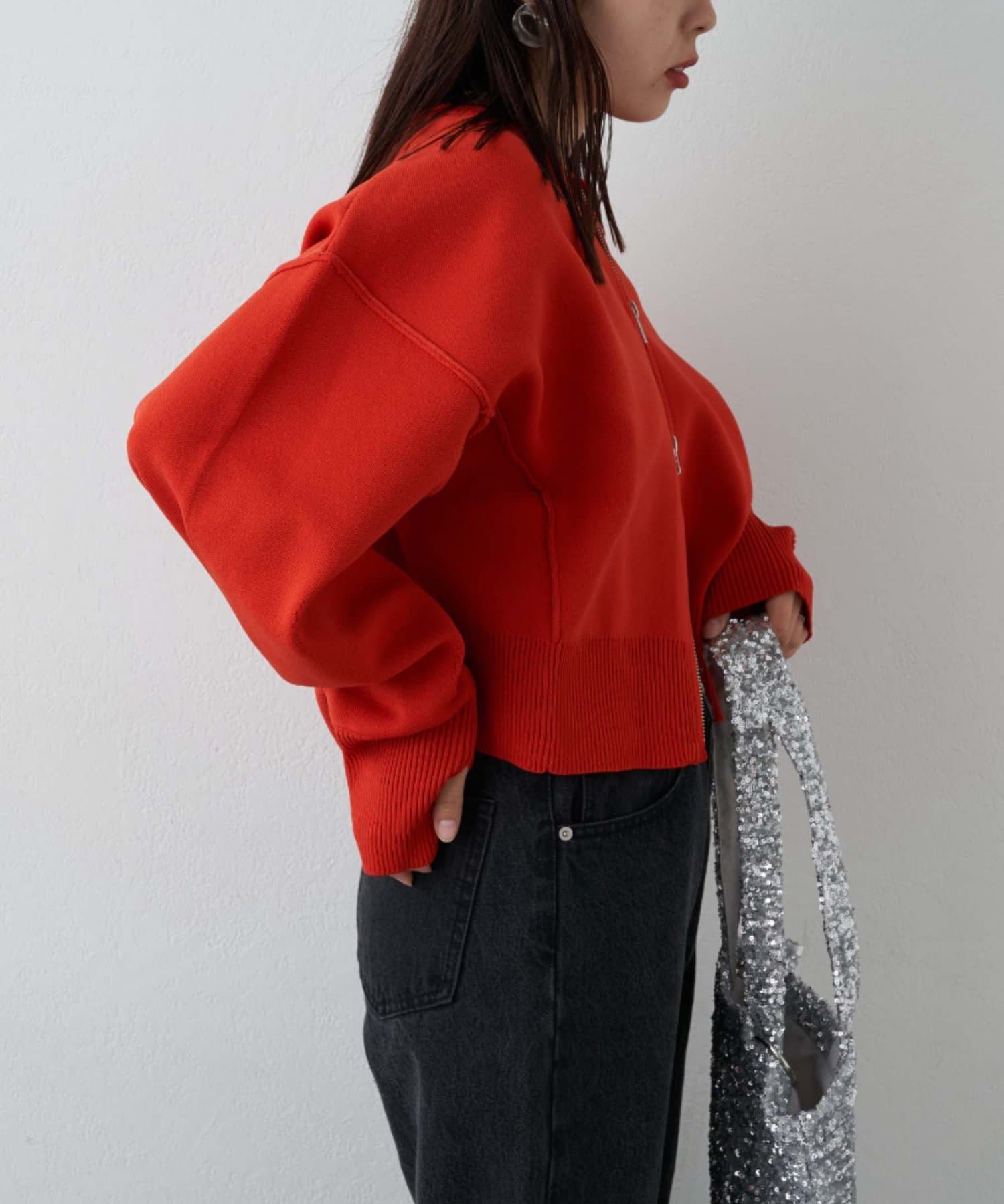 上下どちらも開くダブルジップが特徴のニットカーディガン。