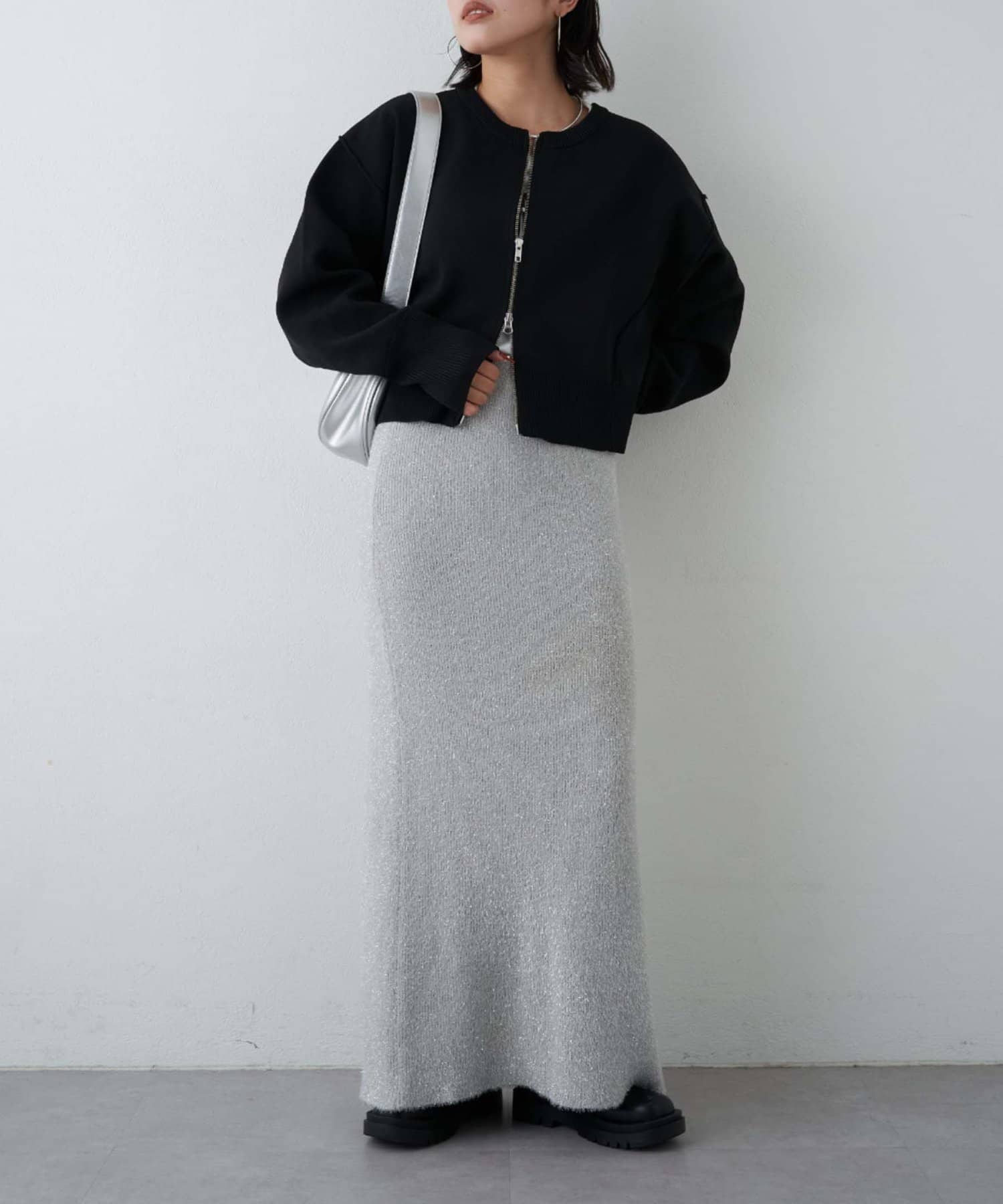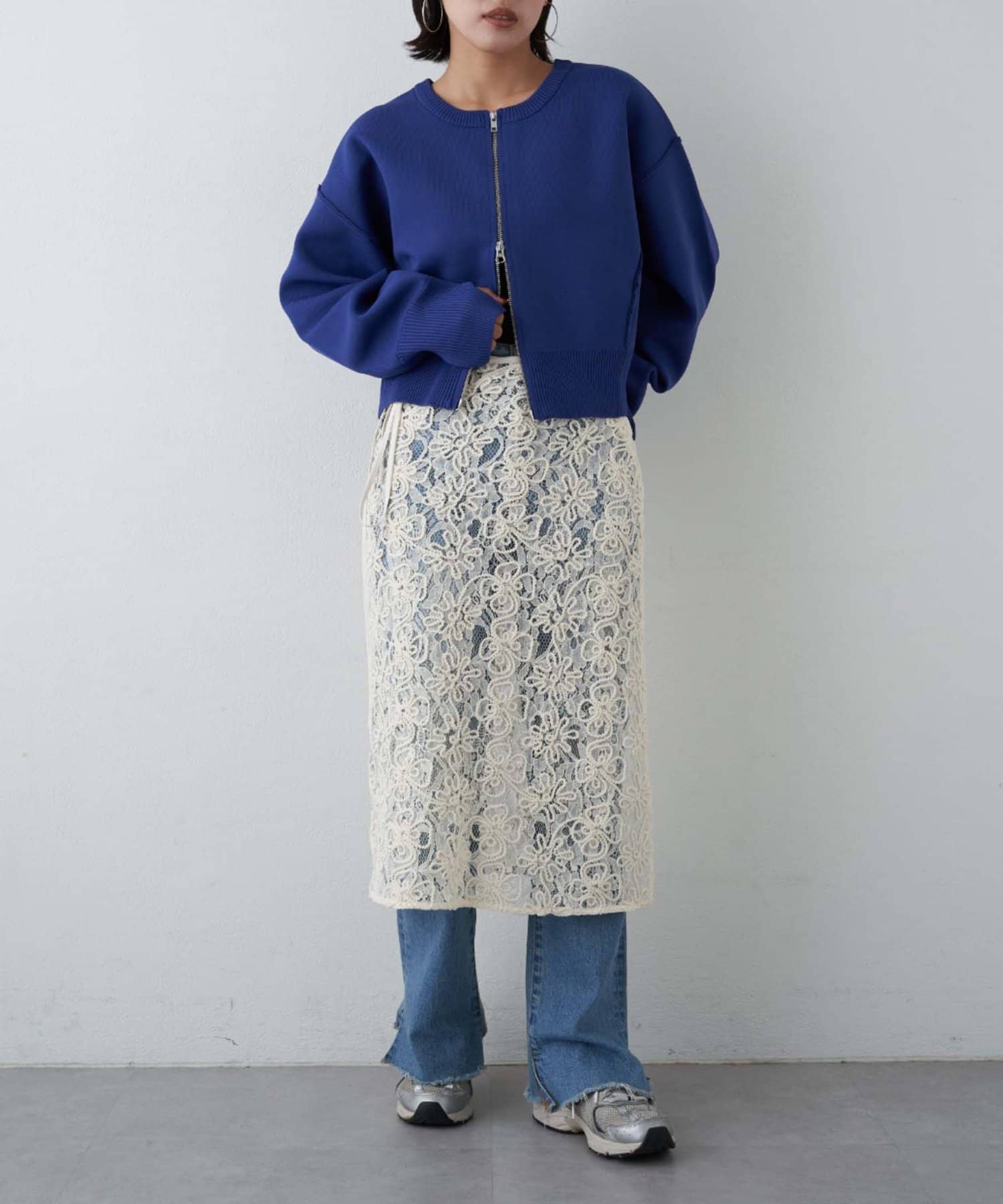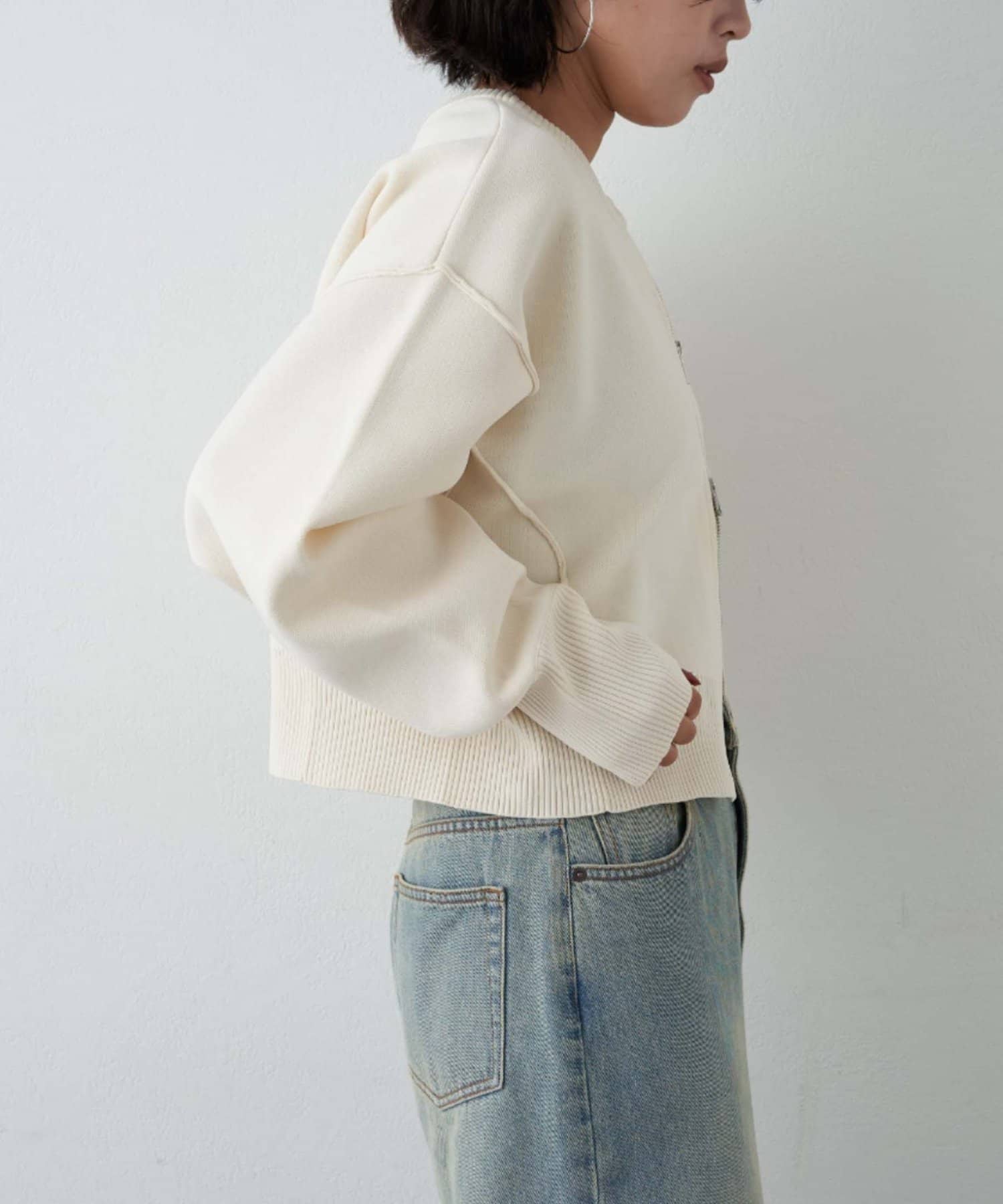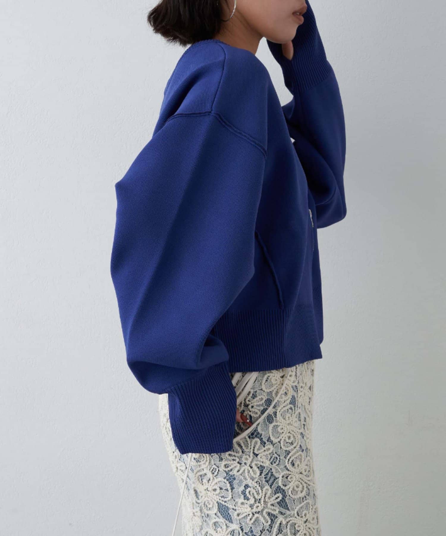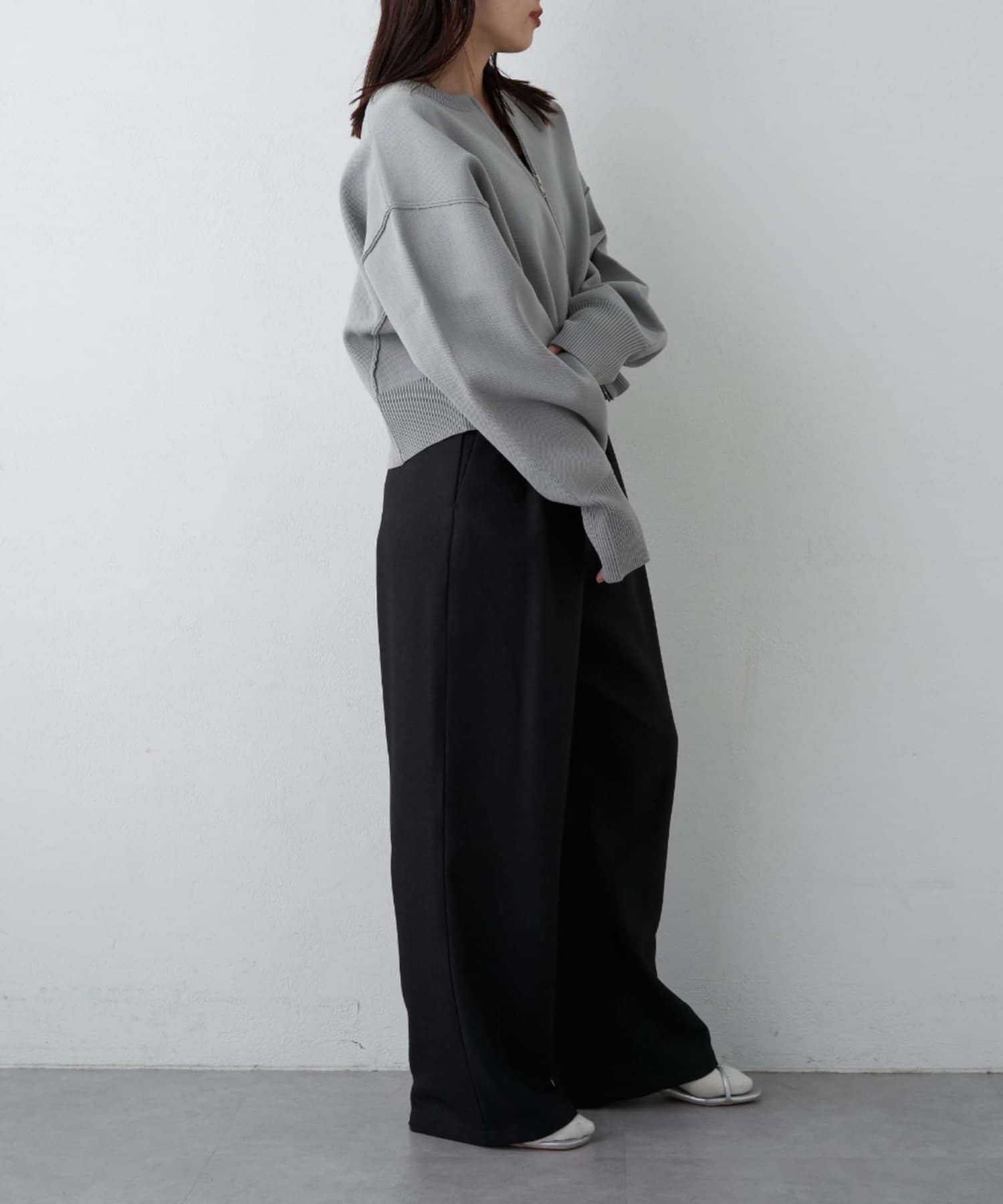 上下どちらも開くダブルジップが特徴のニットカーディガン。
