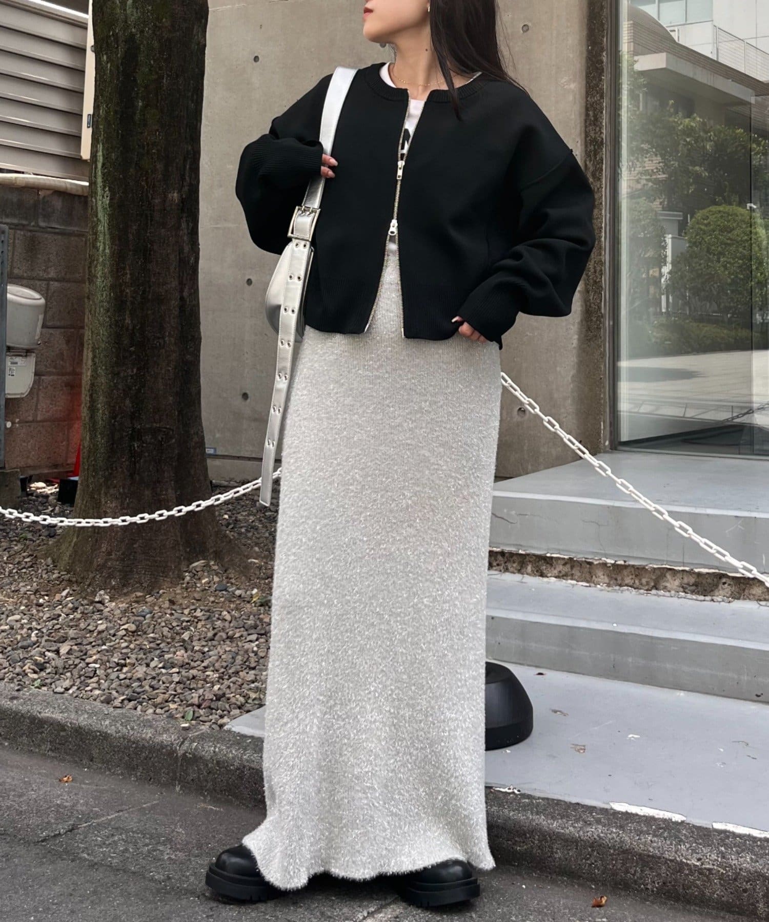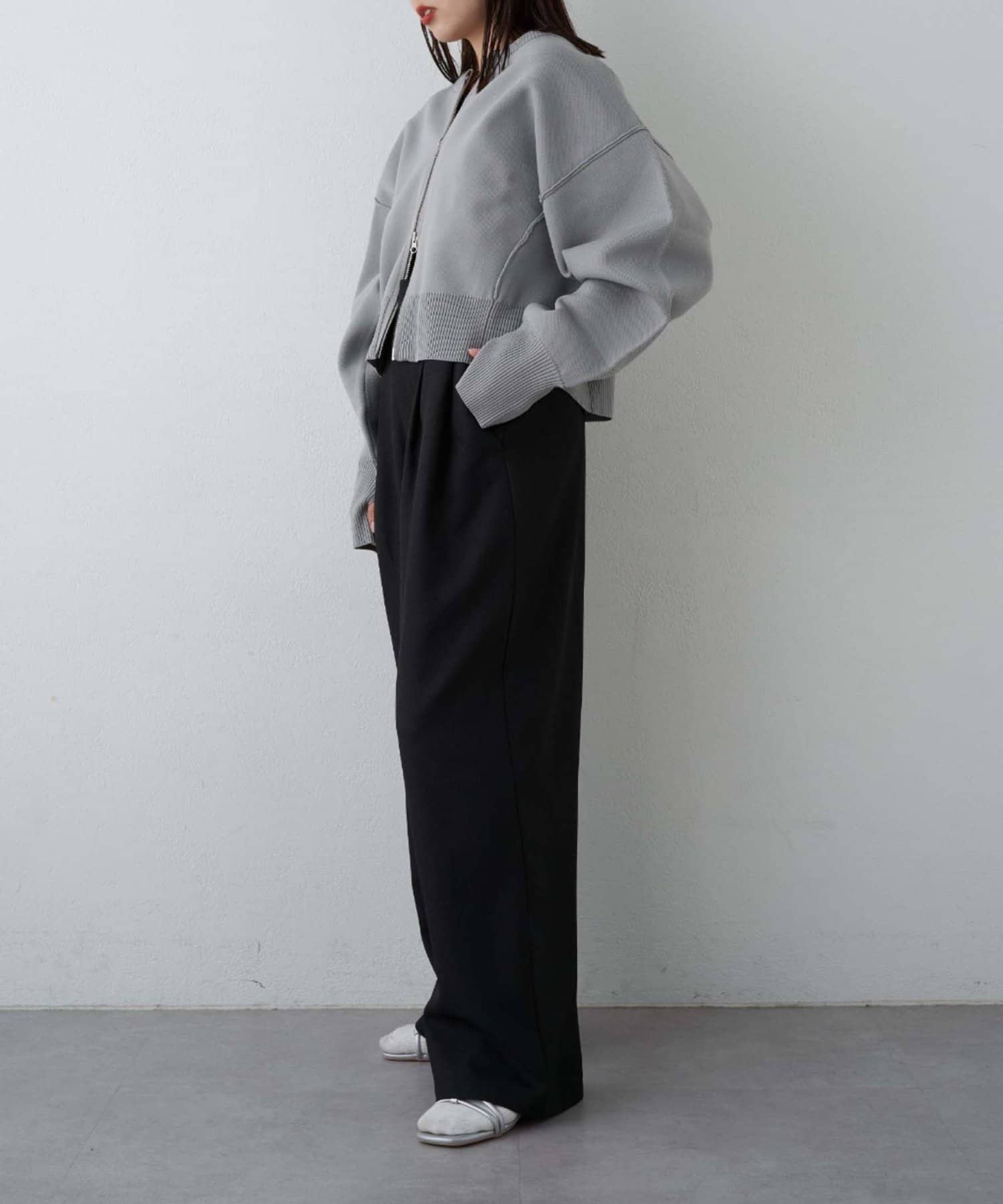 ファスナーが上下から開けられるので、抜け感が出せていい感じ。