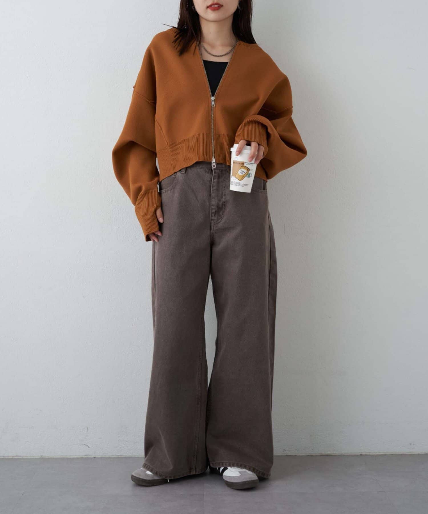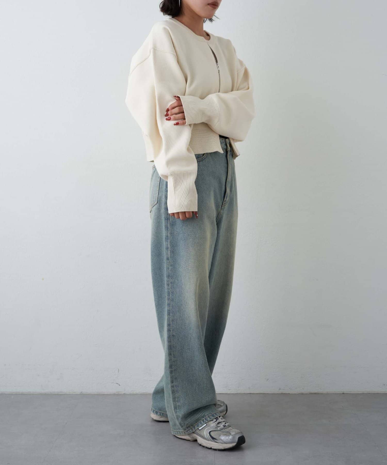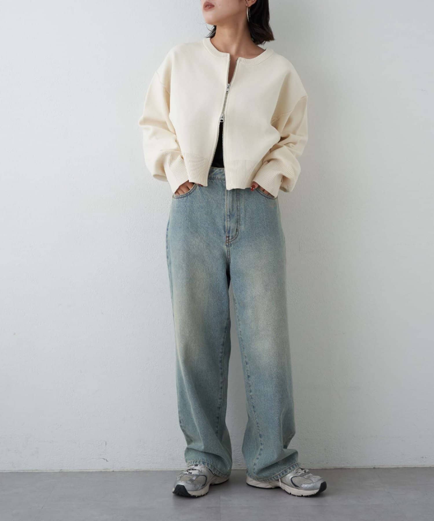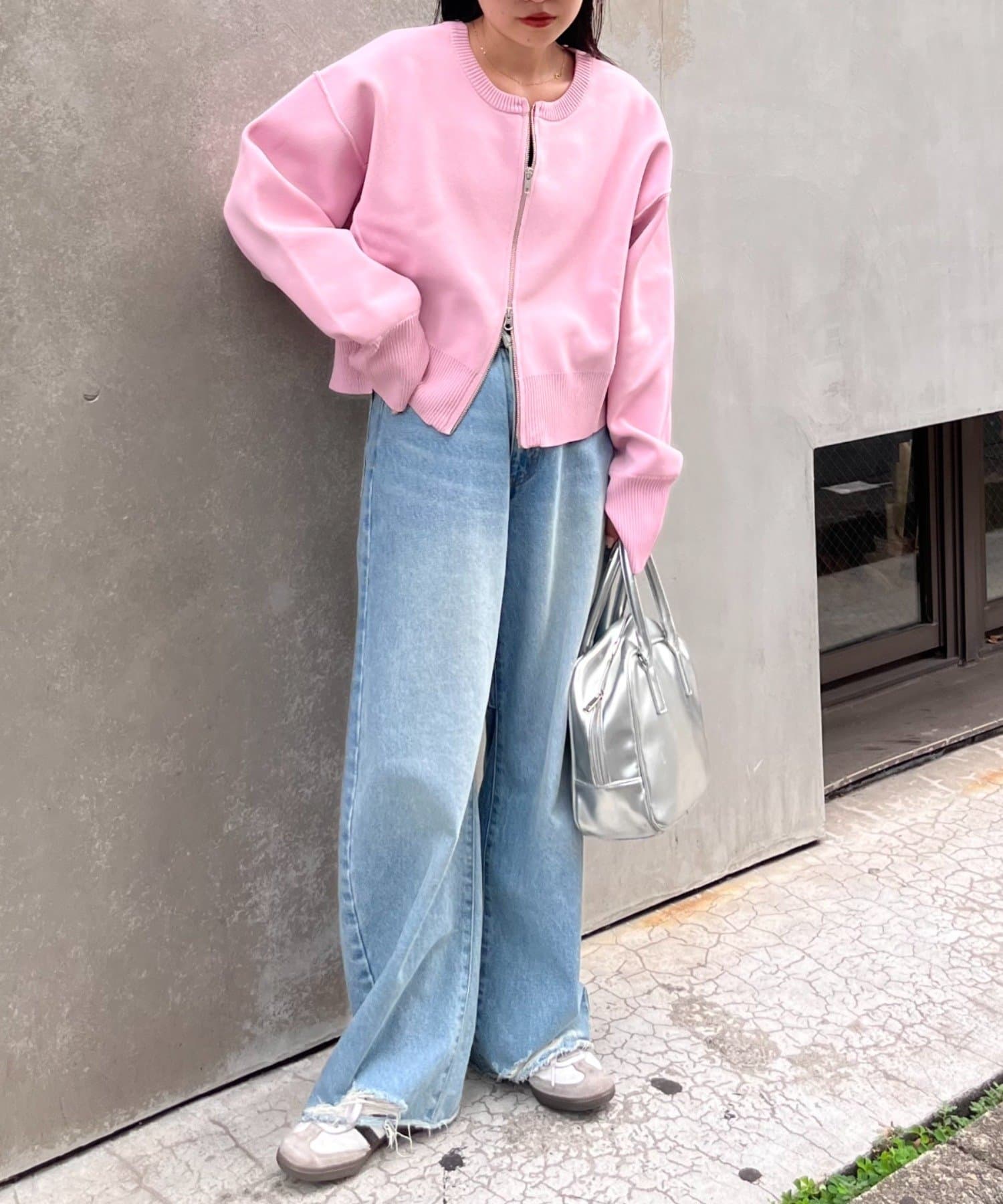 ダブルジップもおしゃれで下を開けて着るのが可愛い!デニム合わせが1番可愛い!