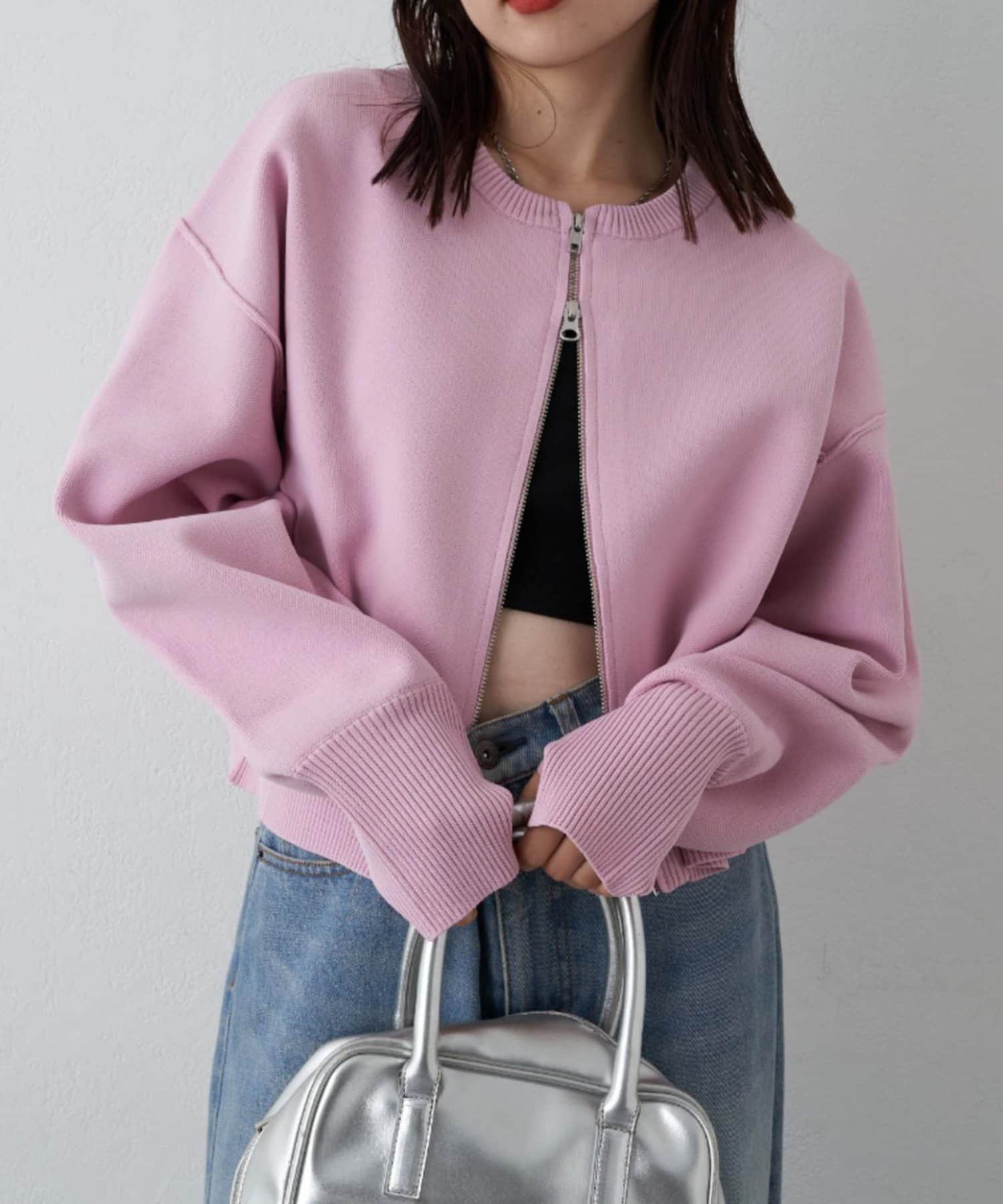 キャミに羽織るもよし、中にカラーインナーきてダブルジップで見せるのもよしで重宝します!