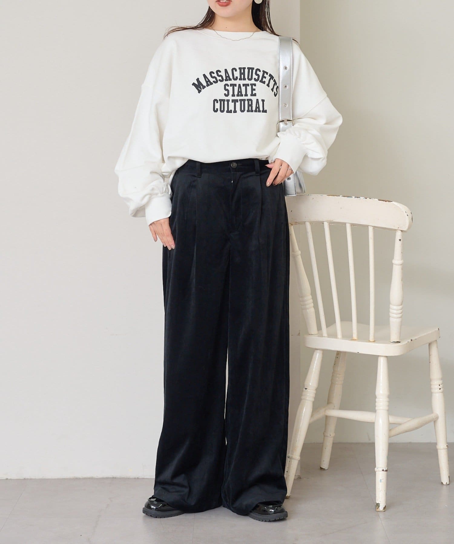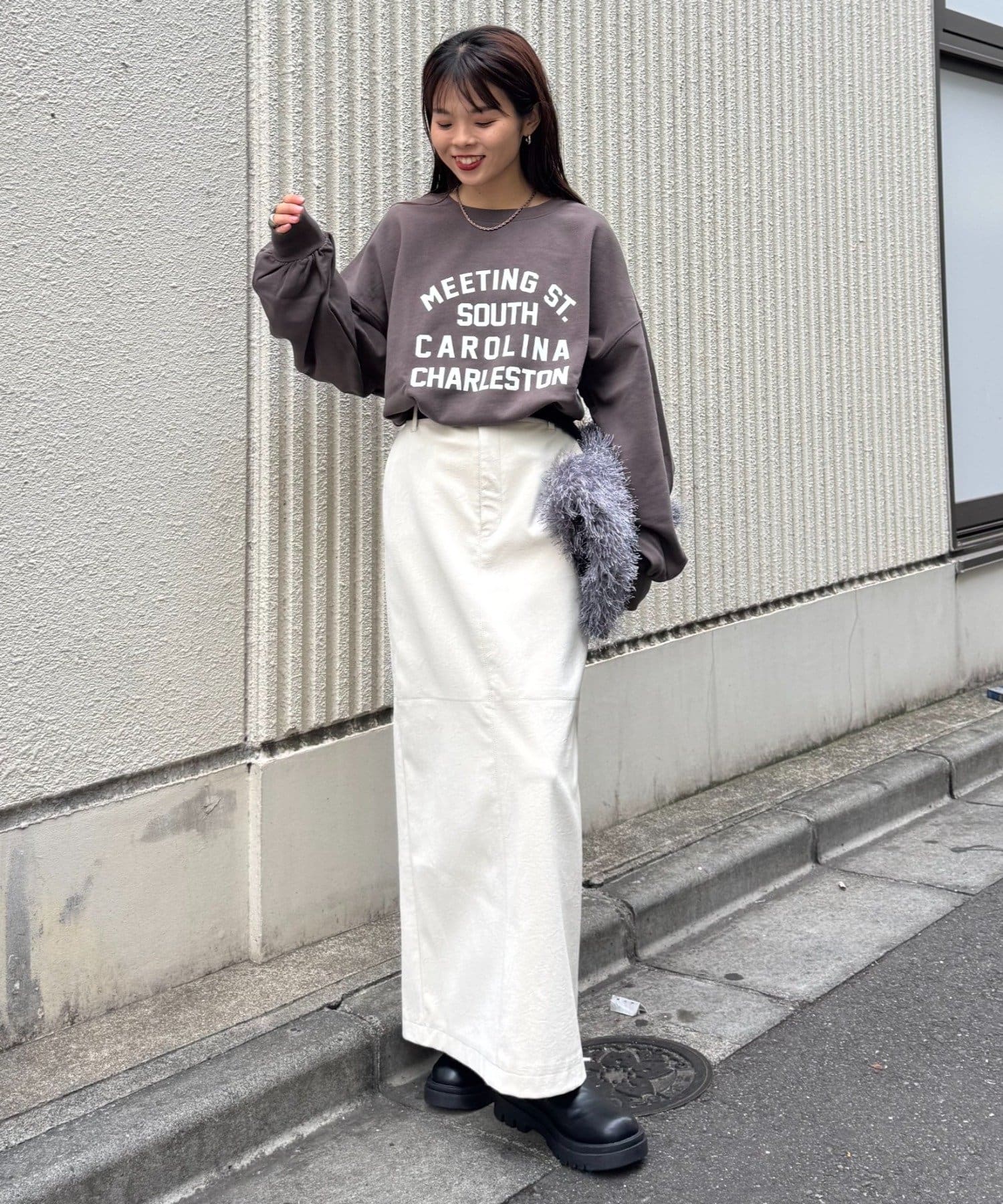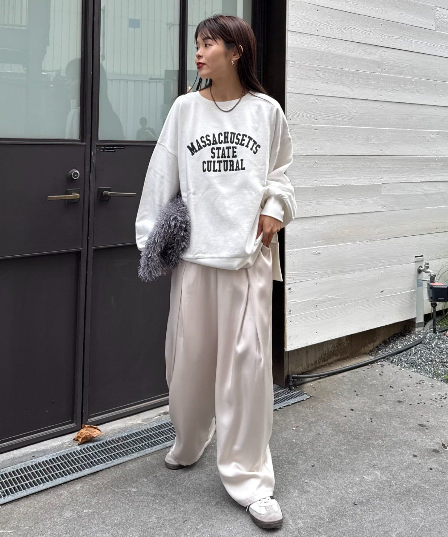 腰回りが隠れるルーズな丈感で、合わせるアイテムを選ばず着て頂けます!