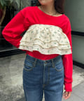 3段にあしらわれたティアードと長めの紐がポイントの1枚です。