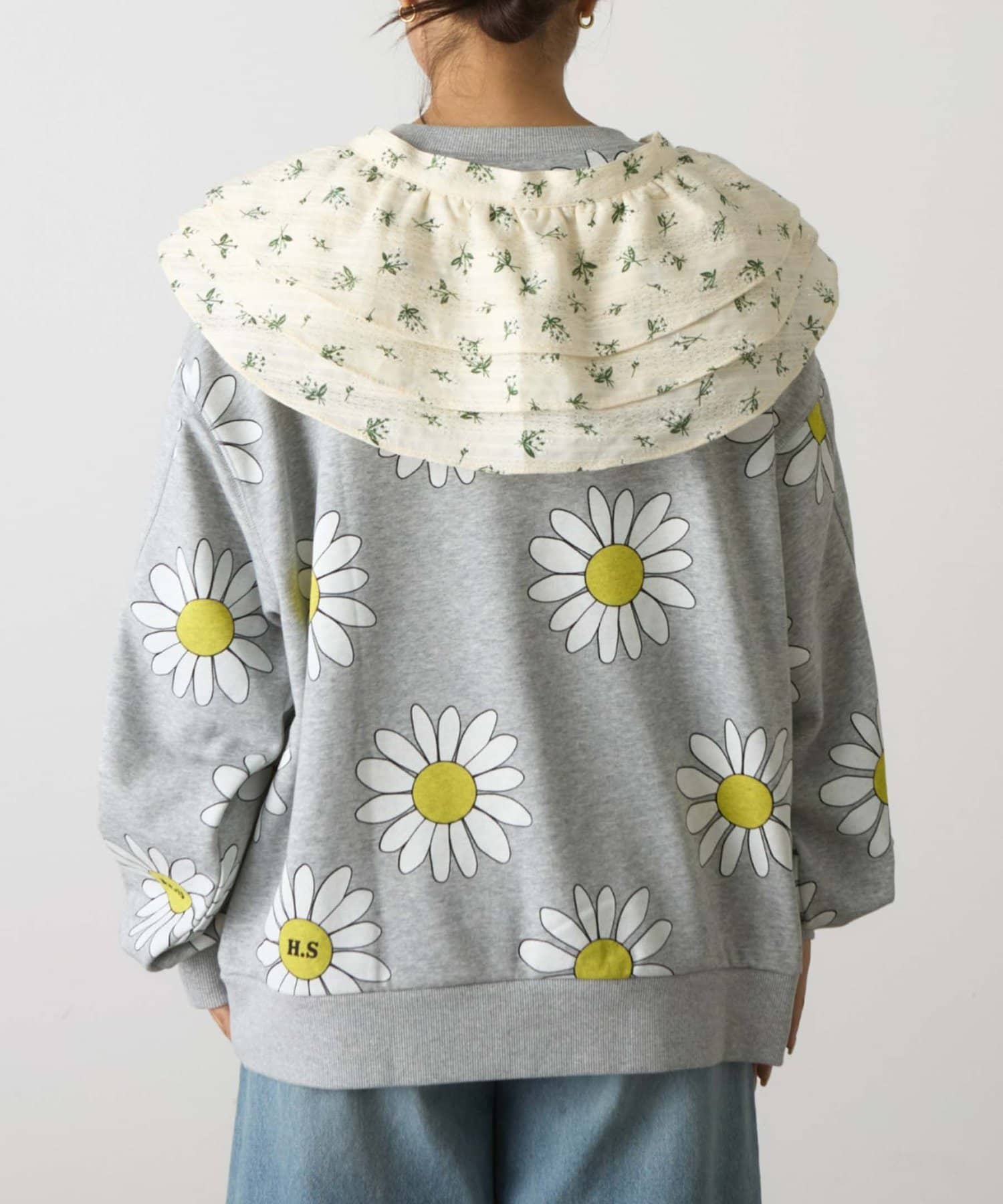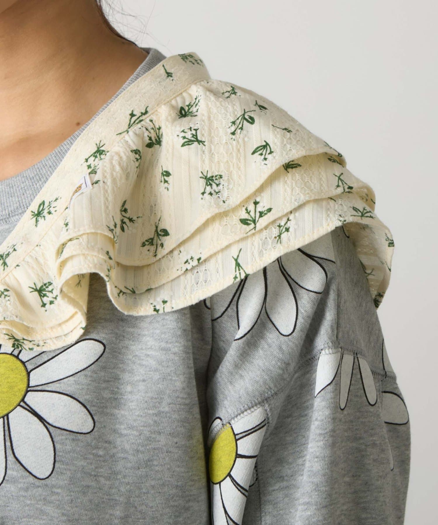 レース生地に落ち着いた配色の花柄がポイントの付けフリル!
