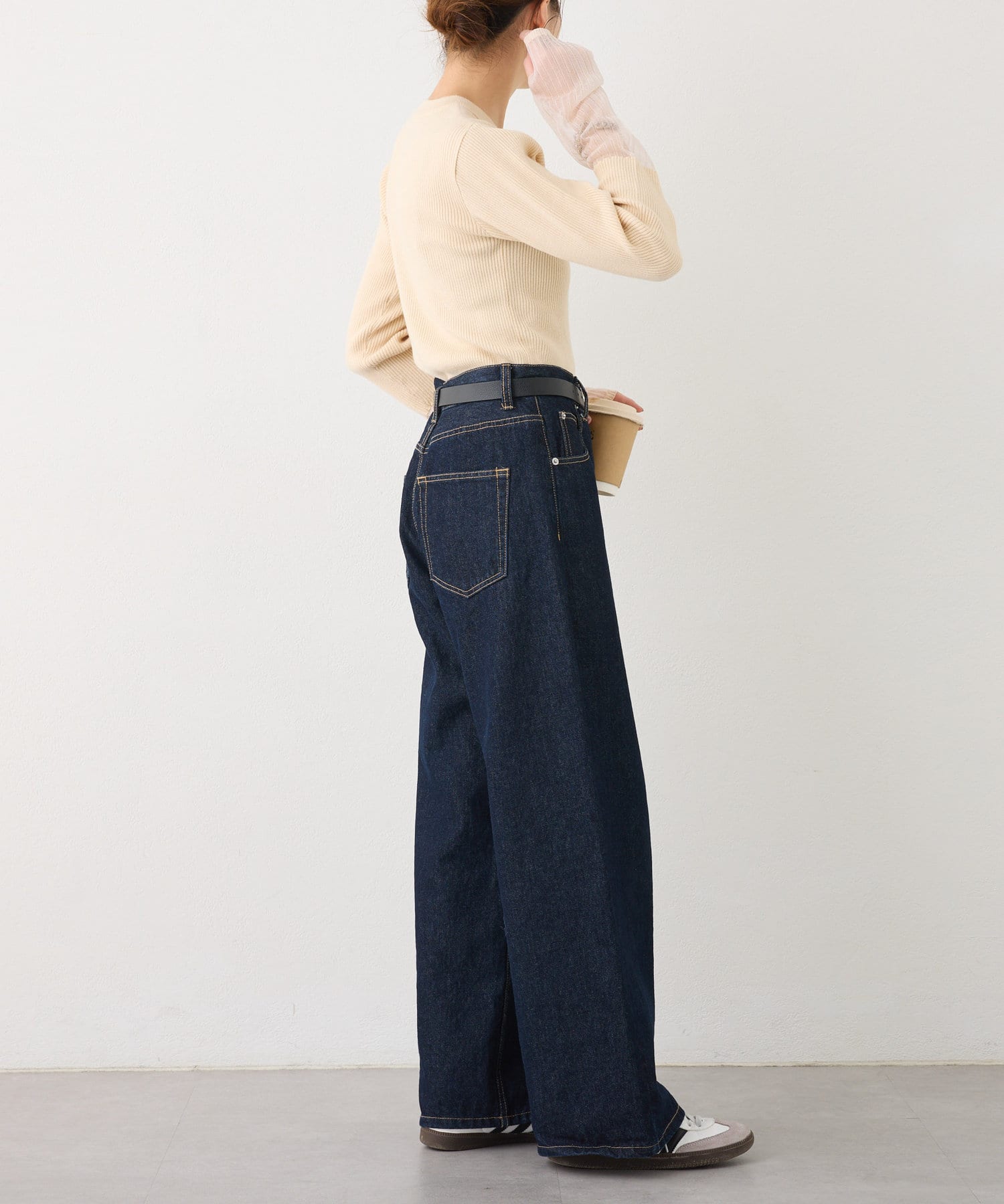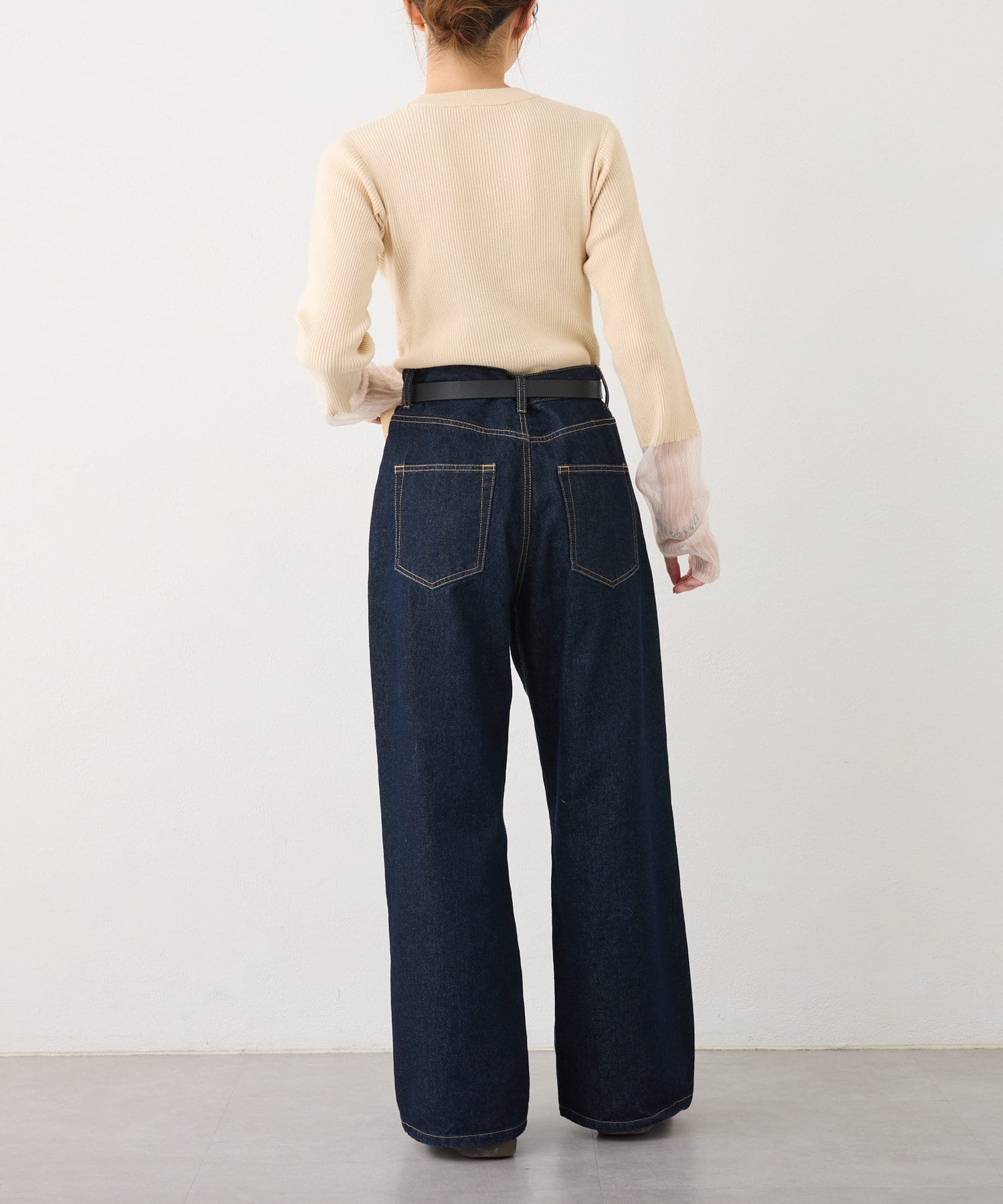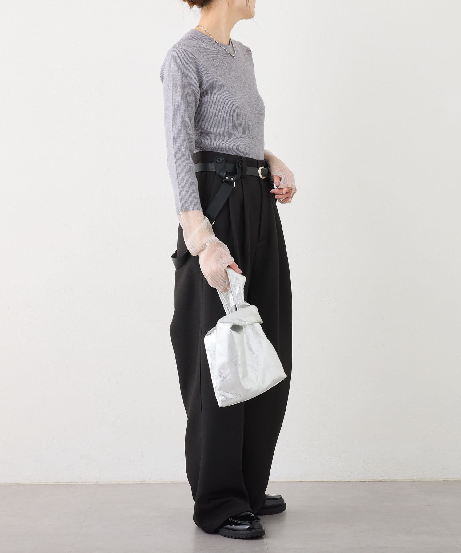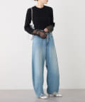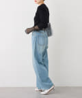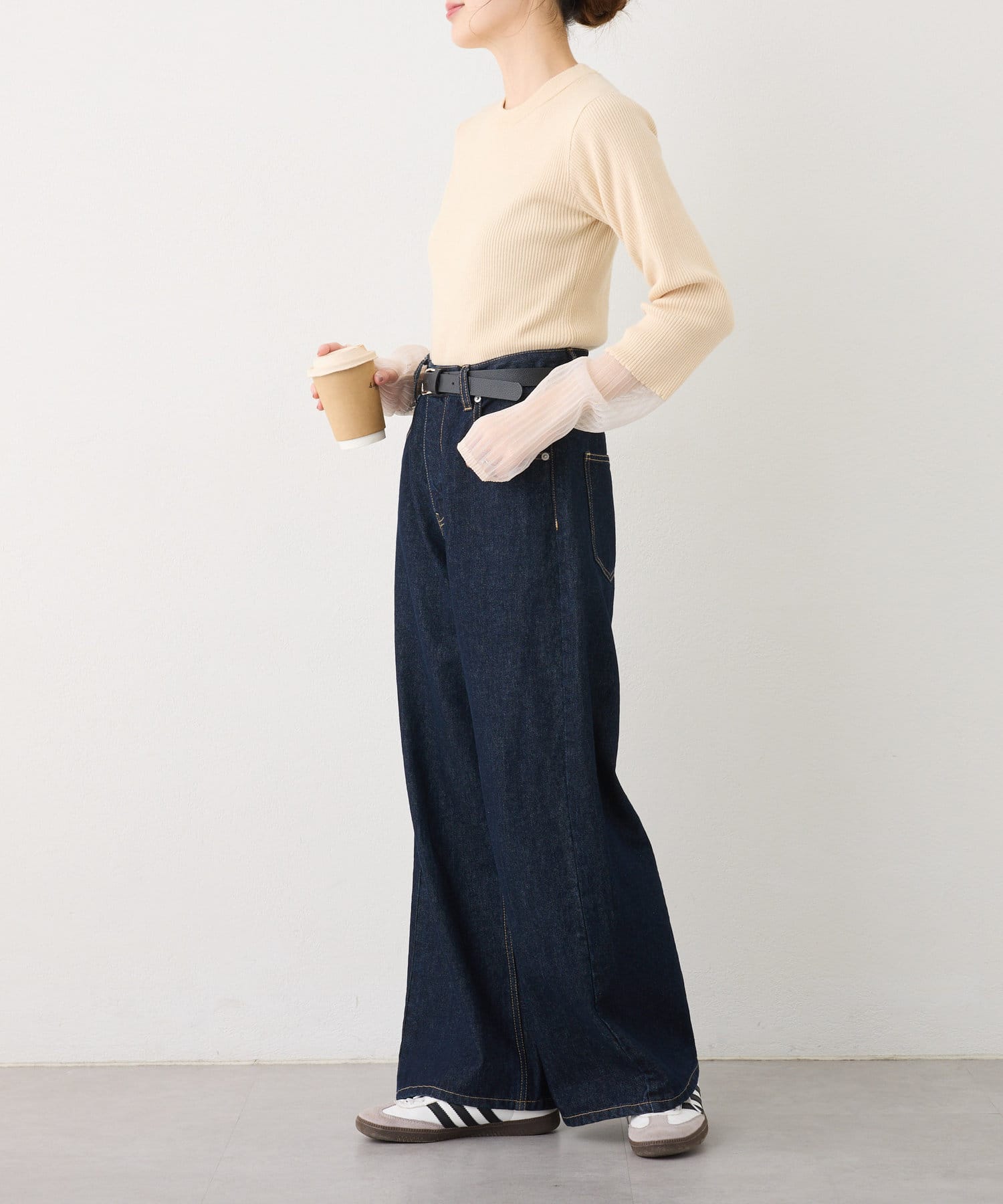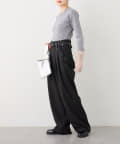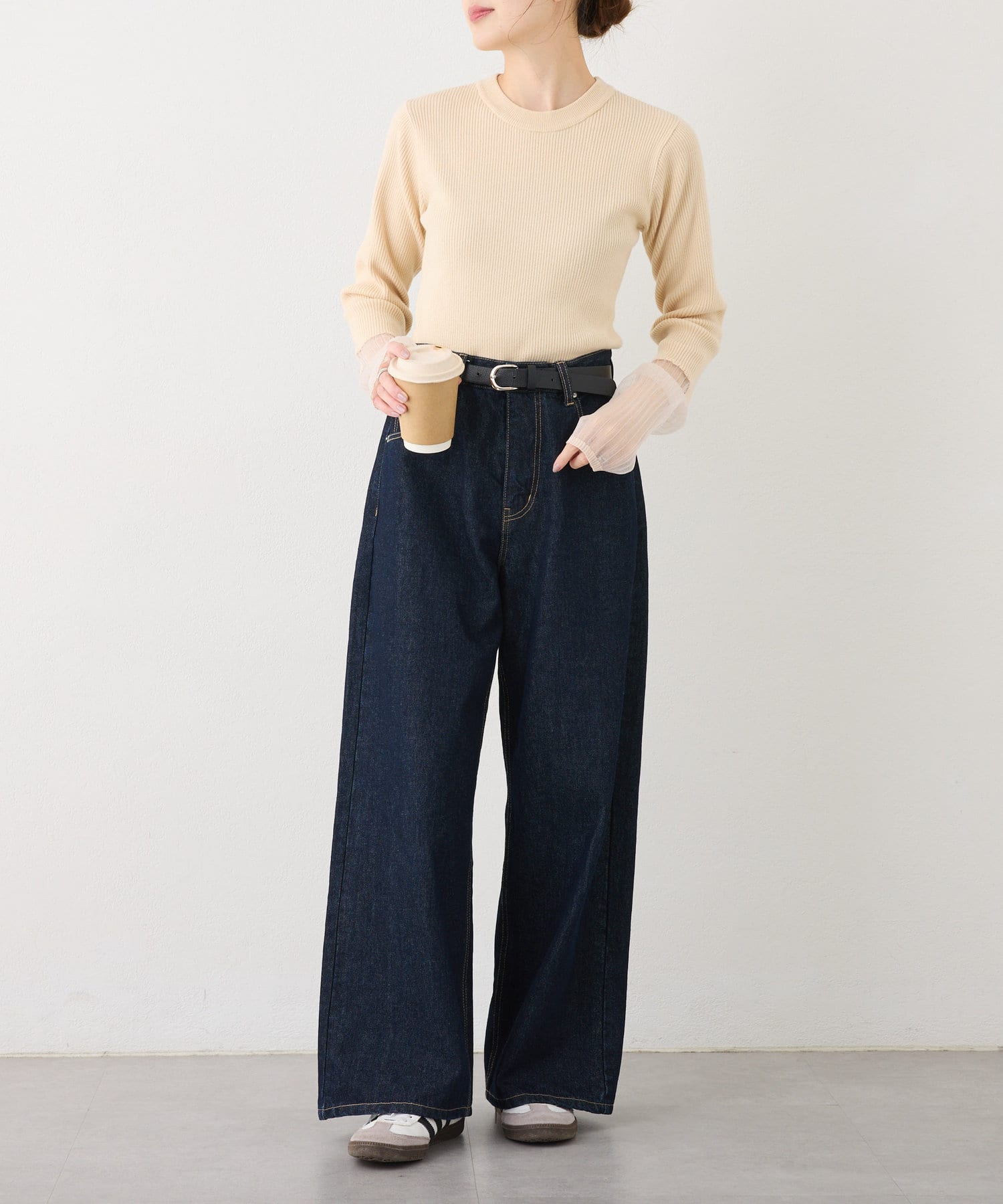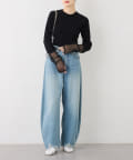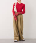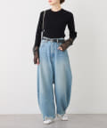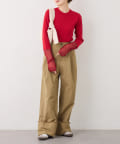 すっきりとしたシルエットのアイテムなので、ボトムにインして合わせるのがおすすめです。