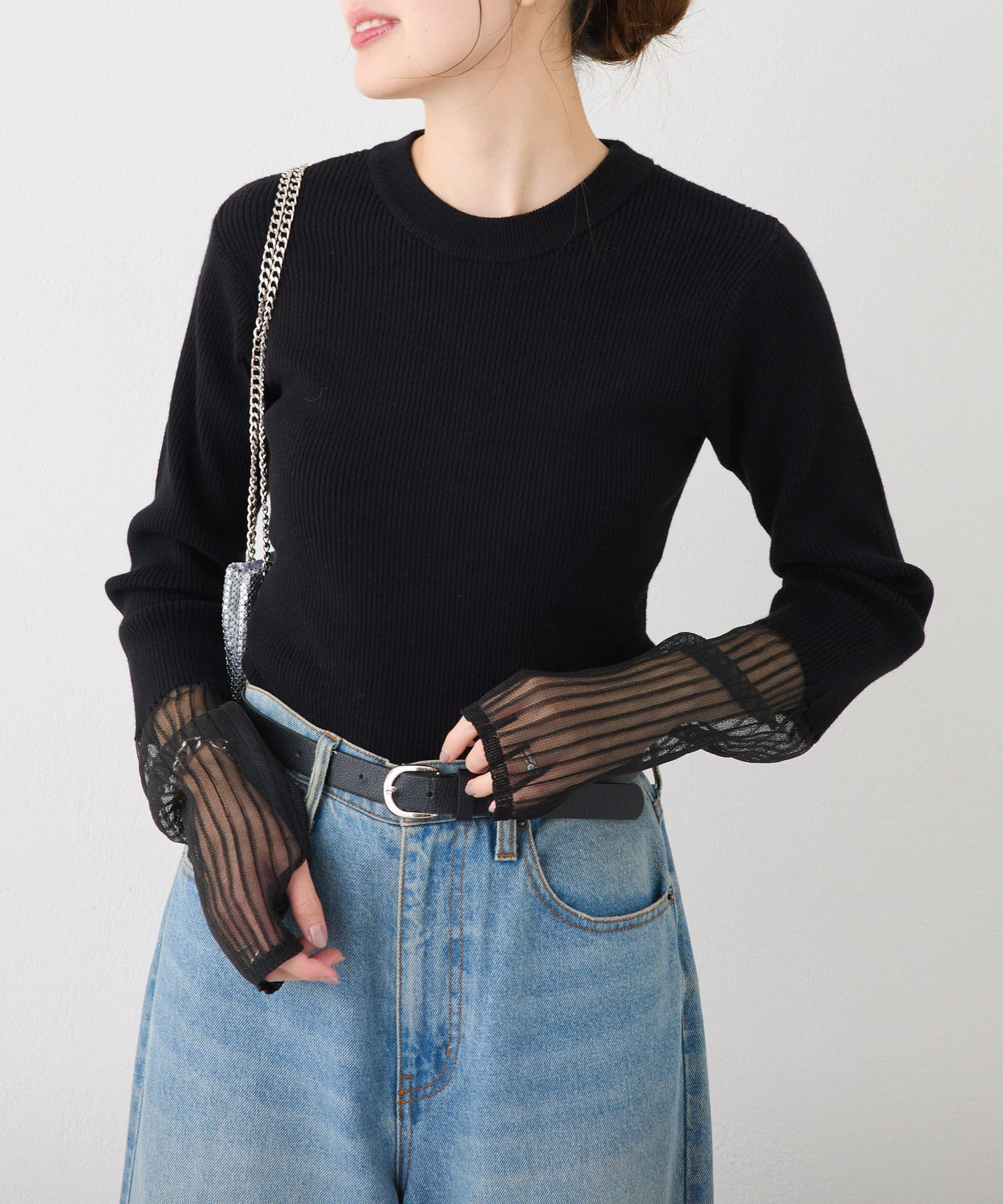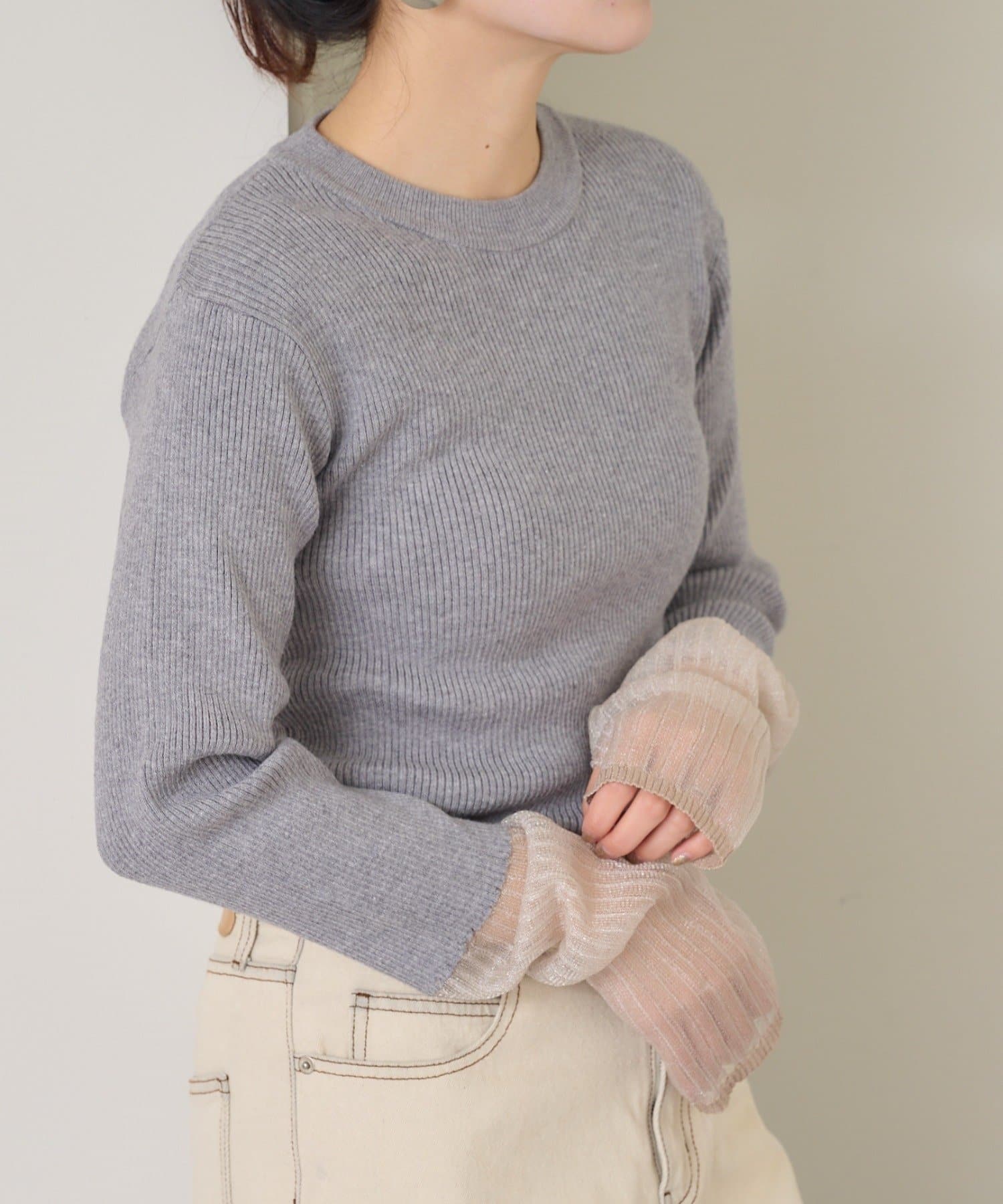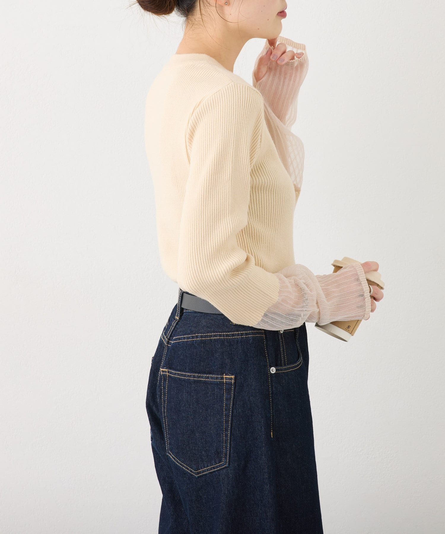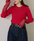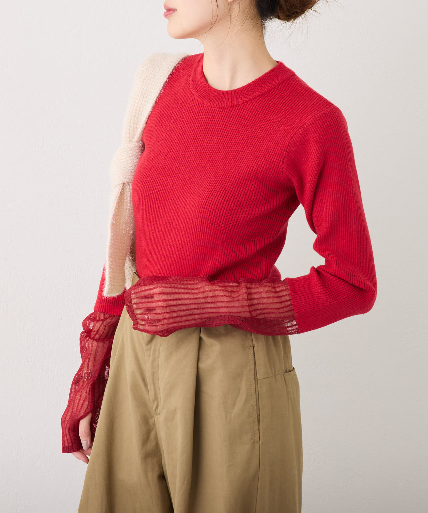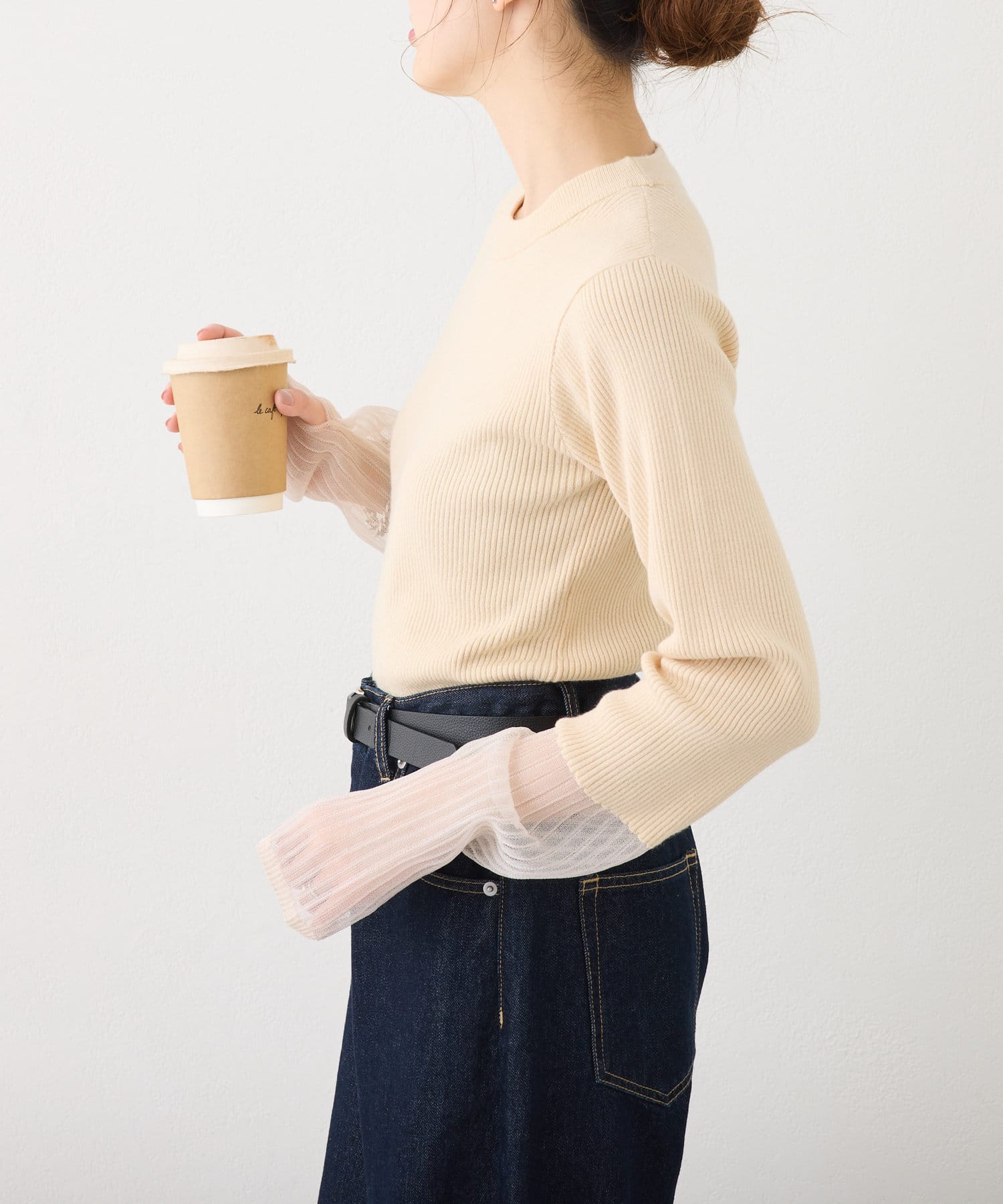 袖がレースなのでチラ見せしてもかわいい万能ニットです。