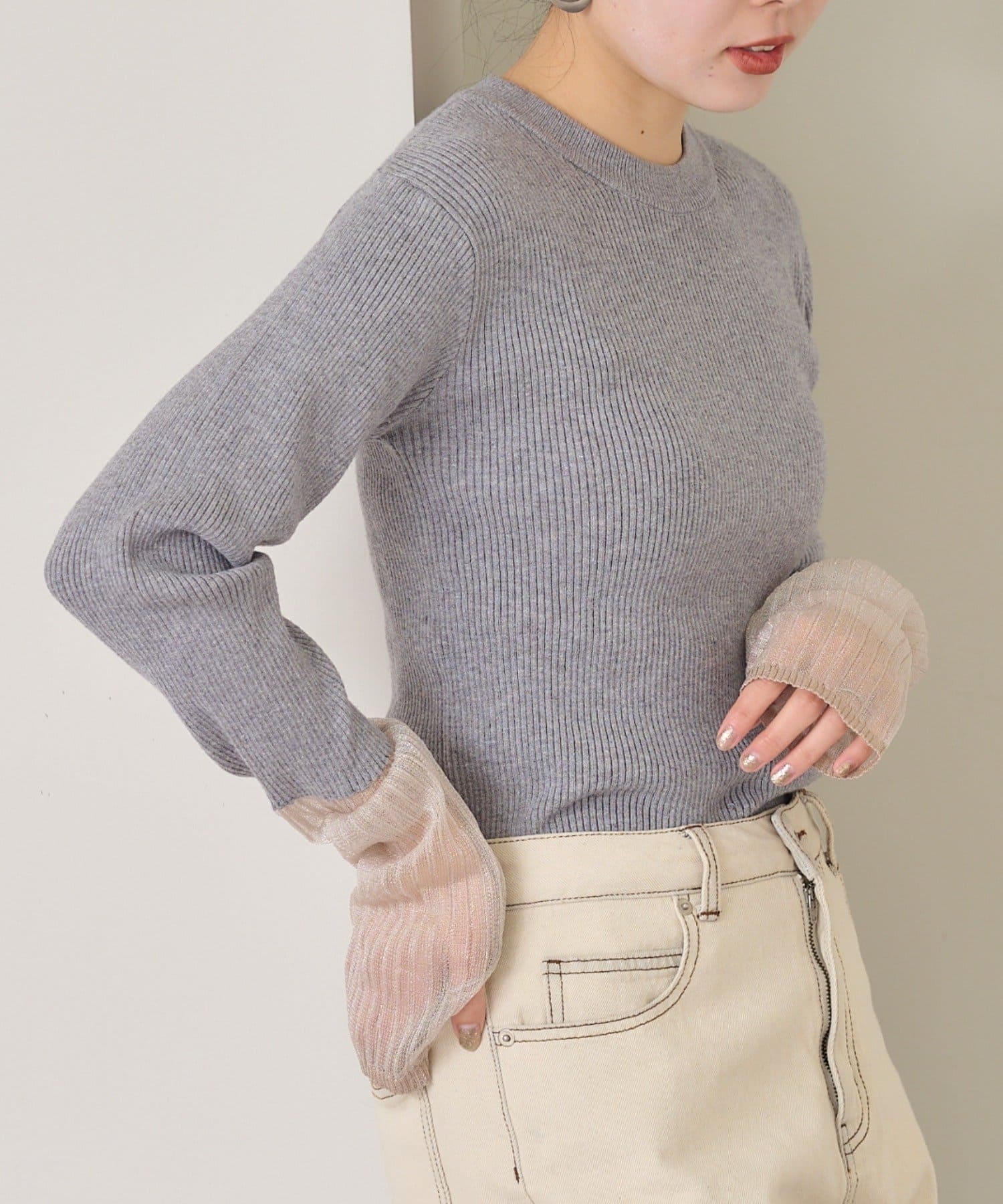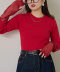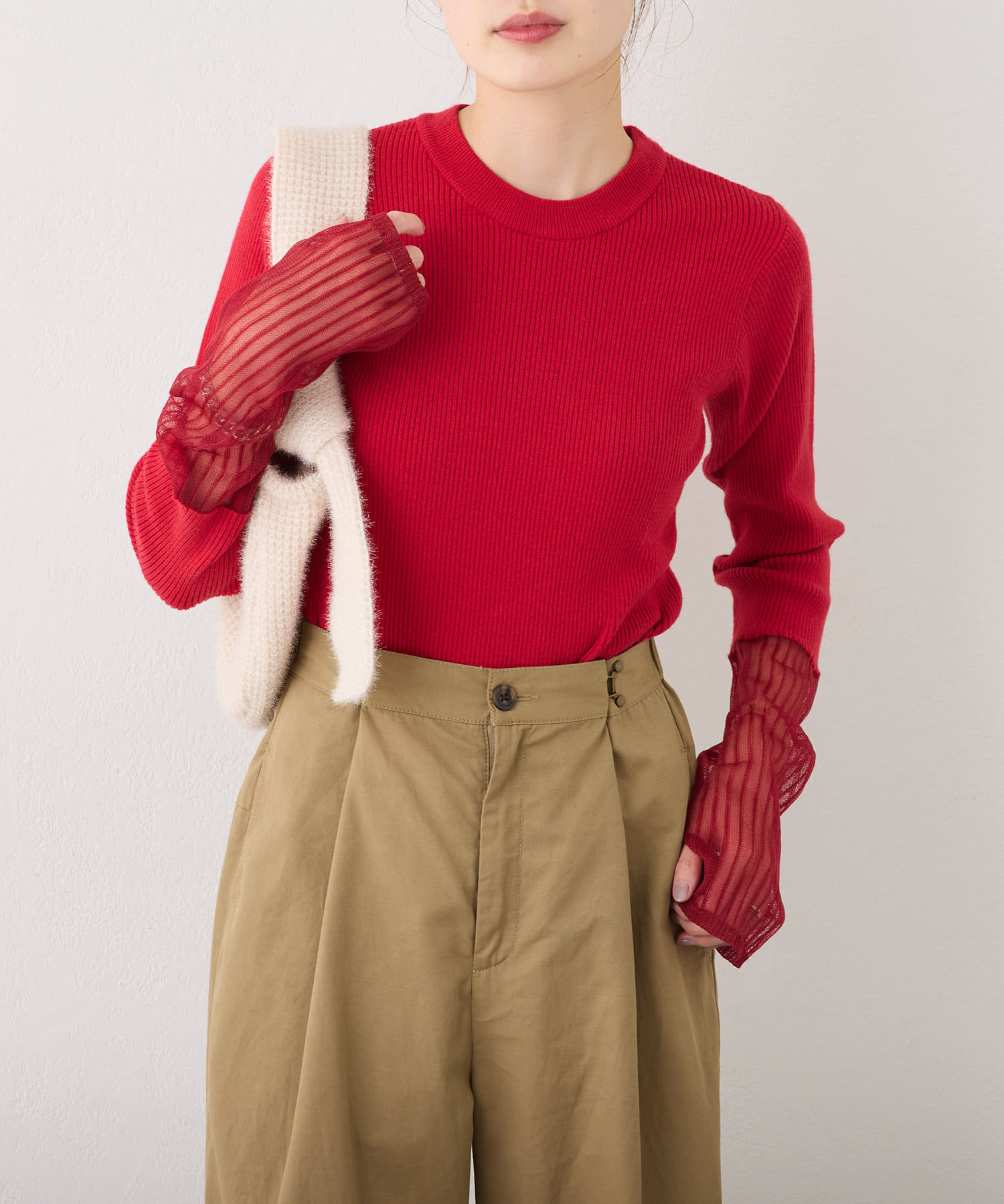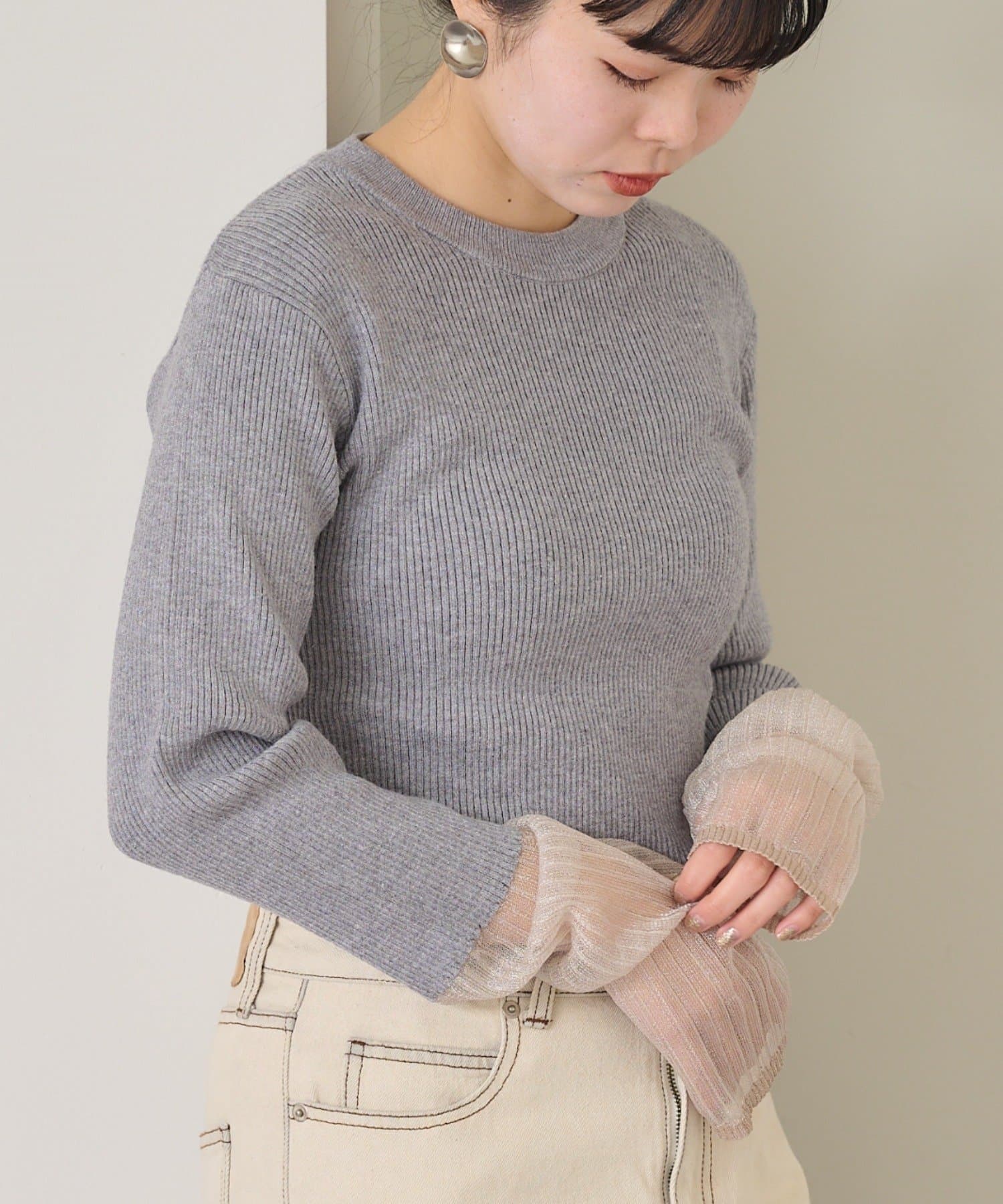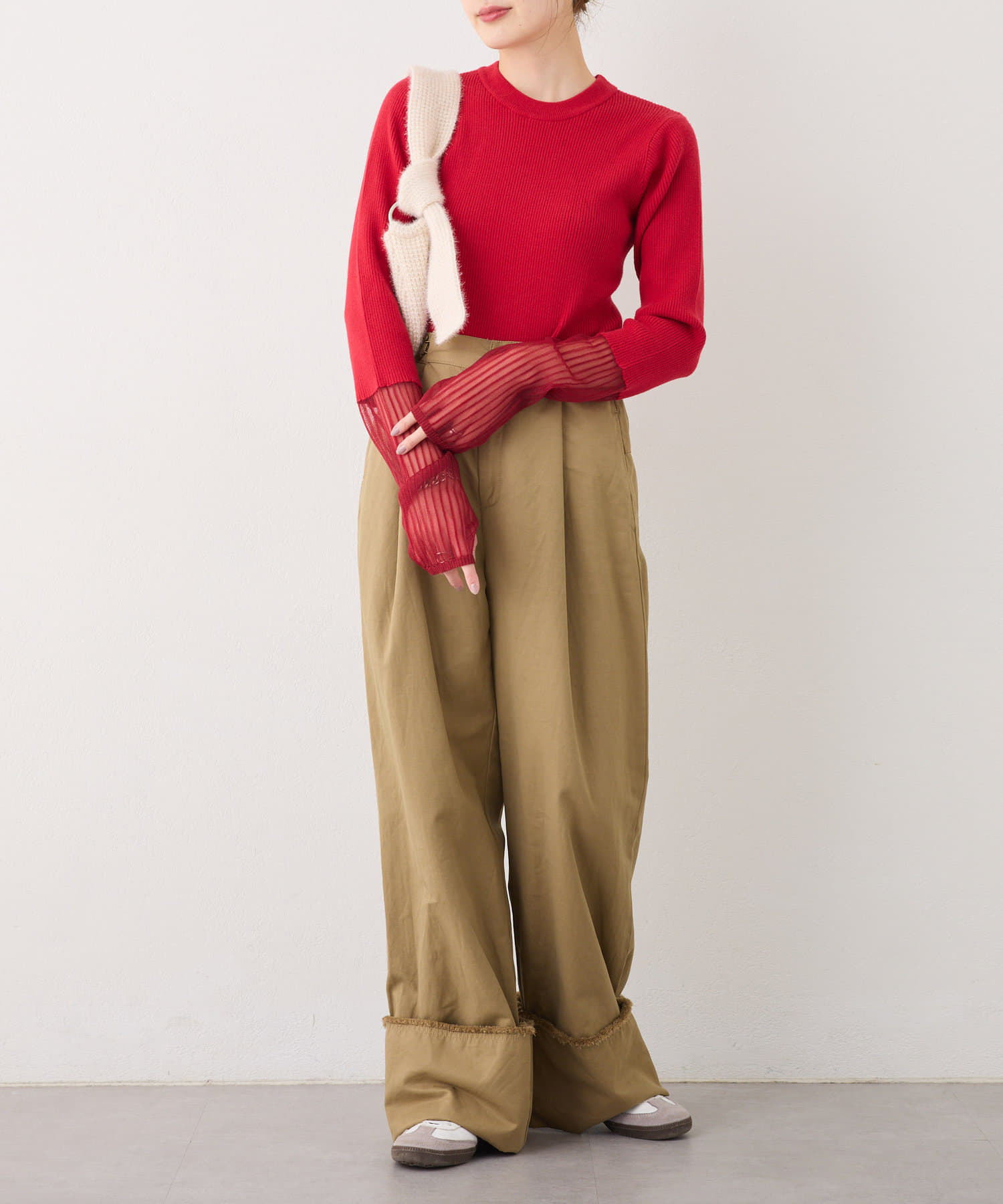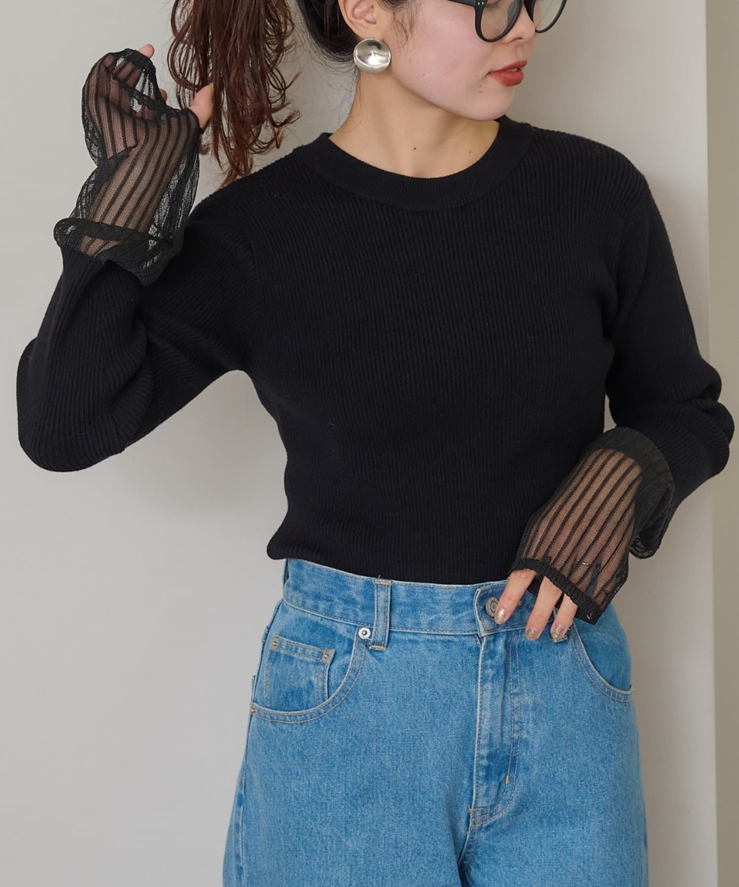袖がレースなのでチラ見せしてもかわいい万能ニットです。