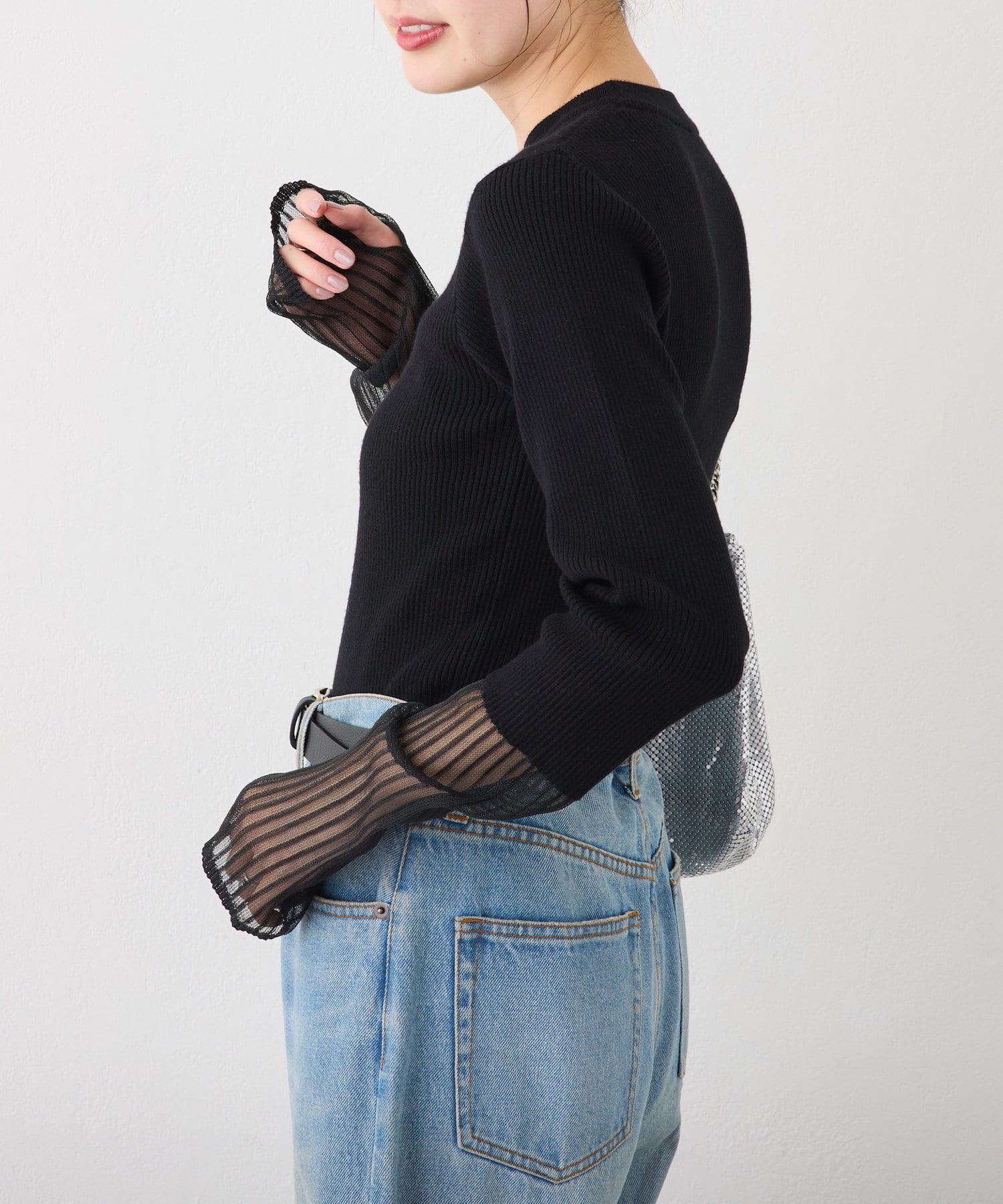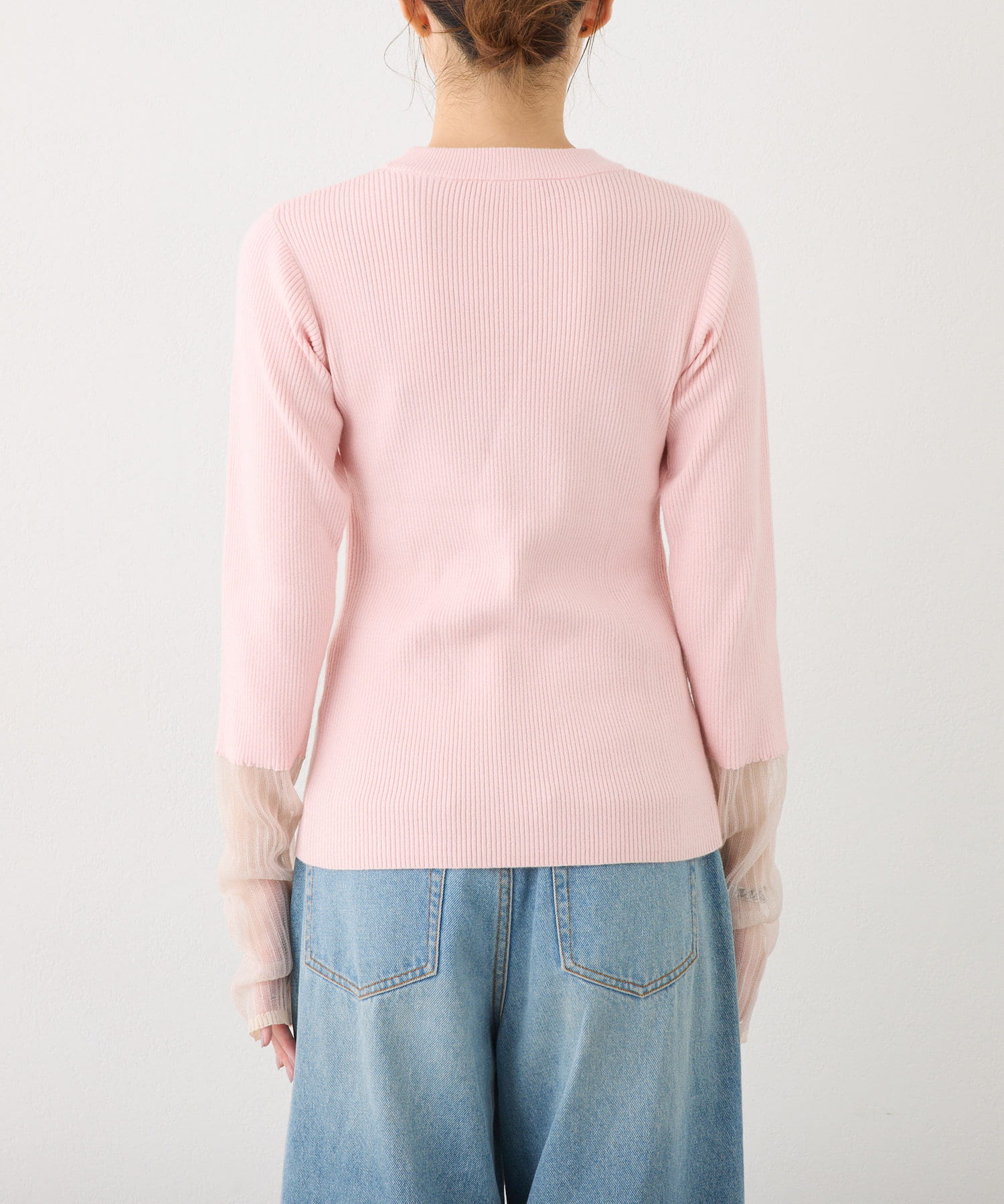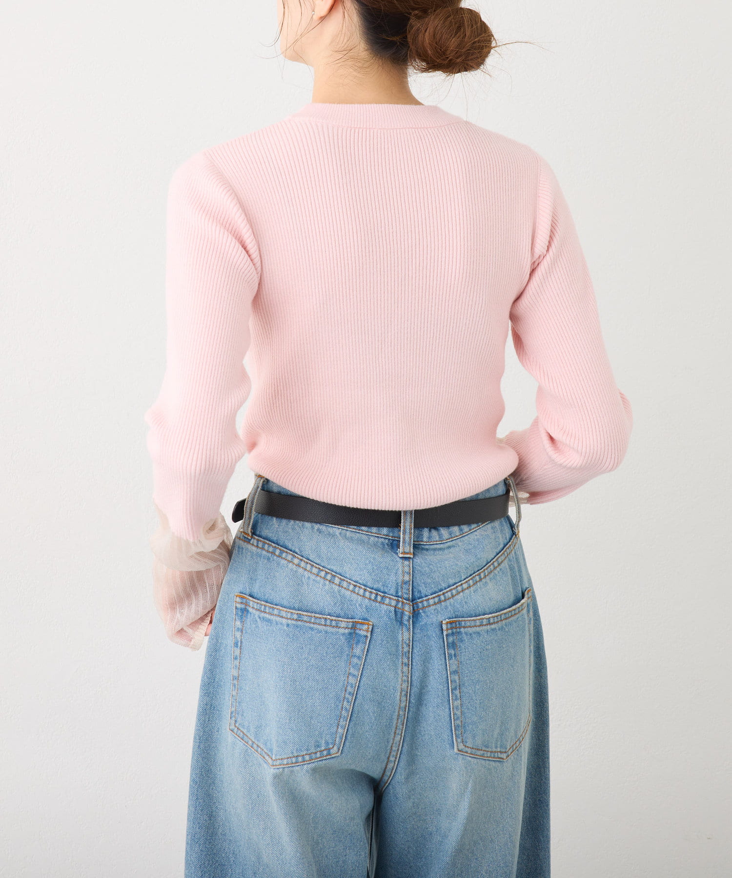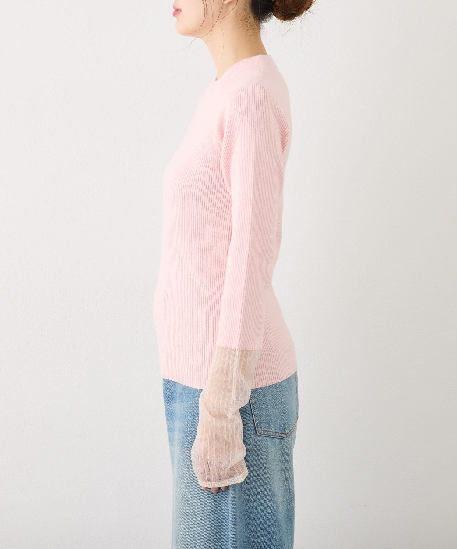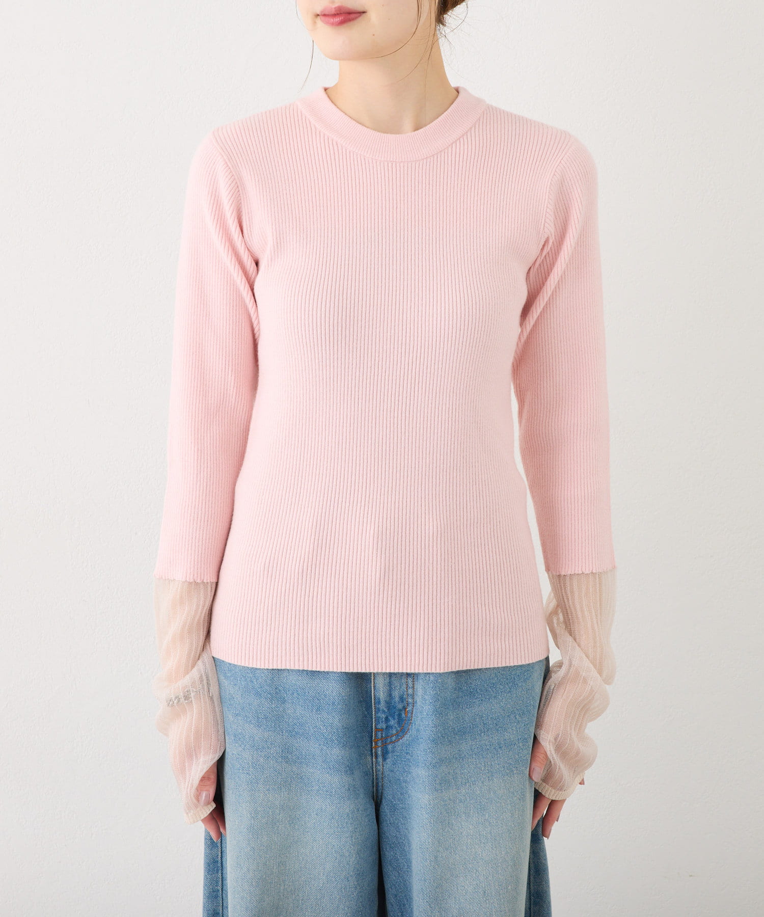 袖がレースなのでチラ見せしてもかわいい万能ニットです。