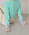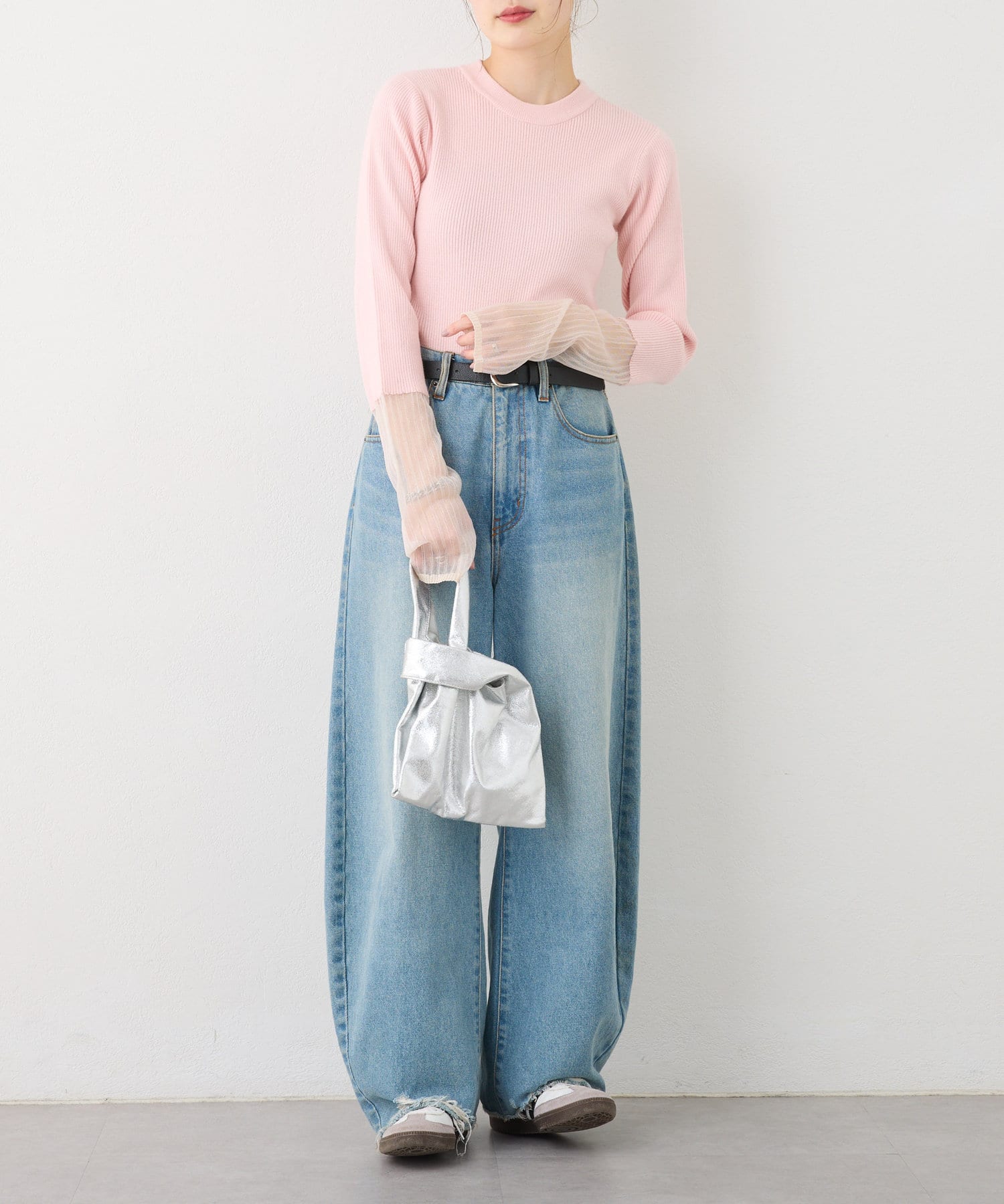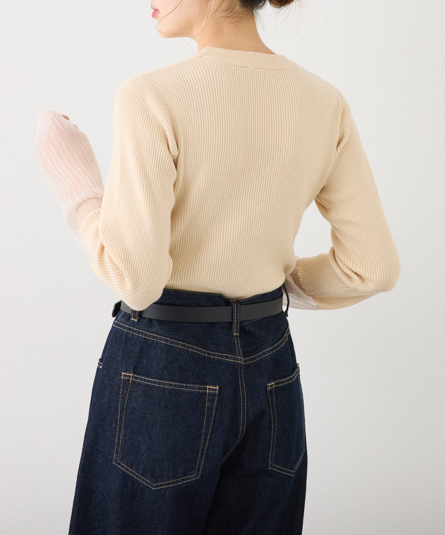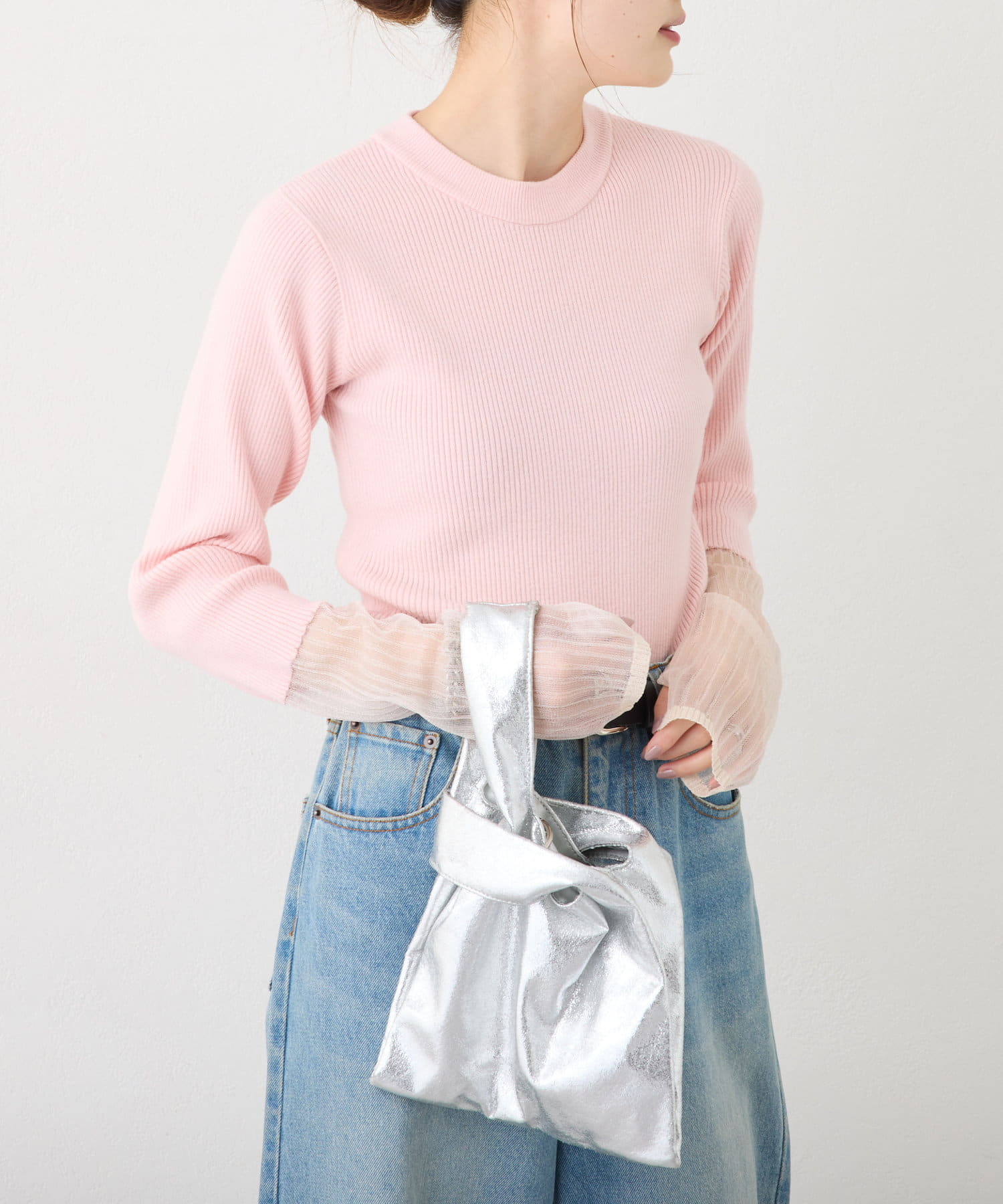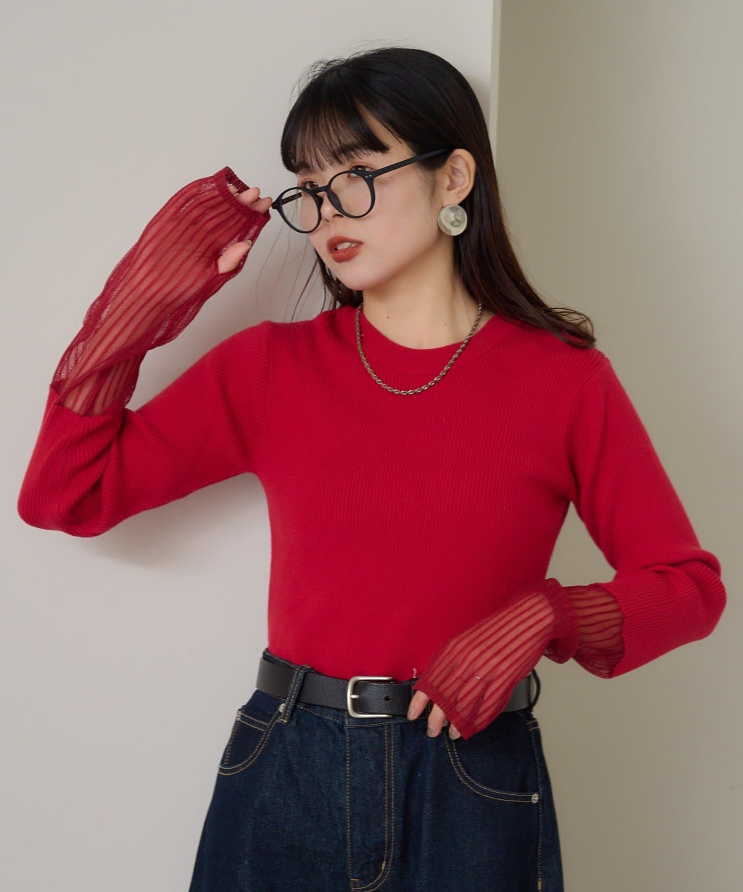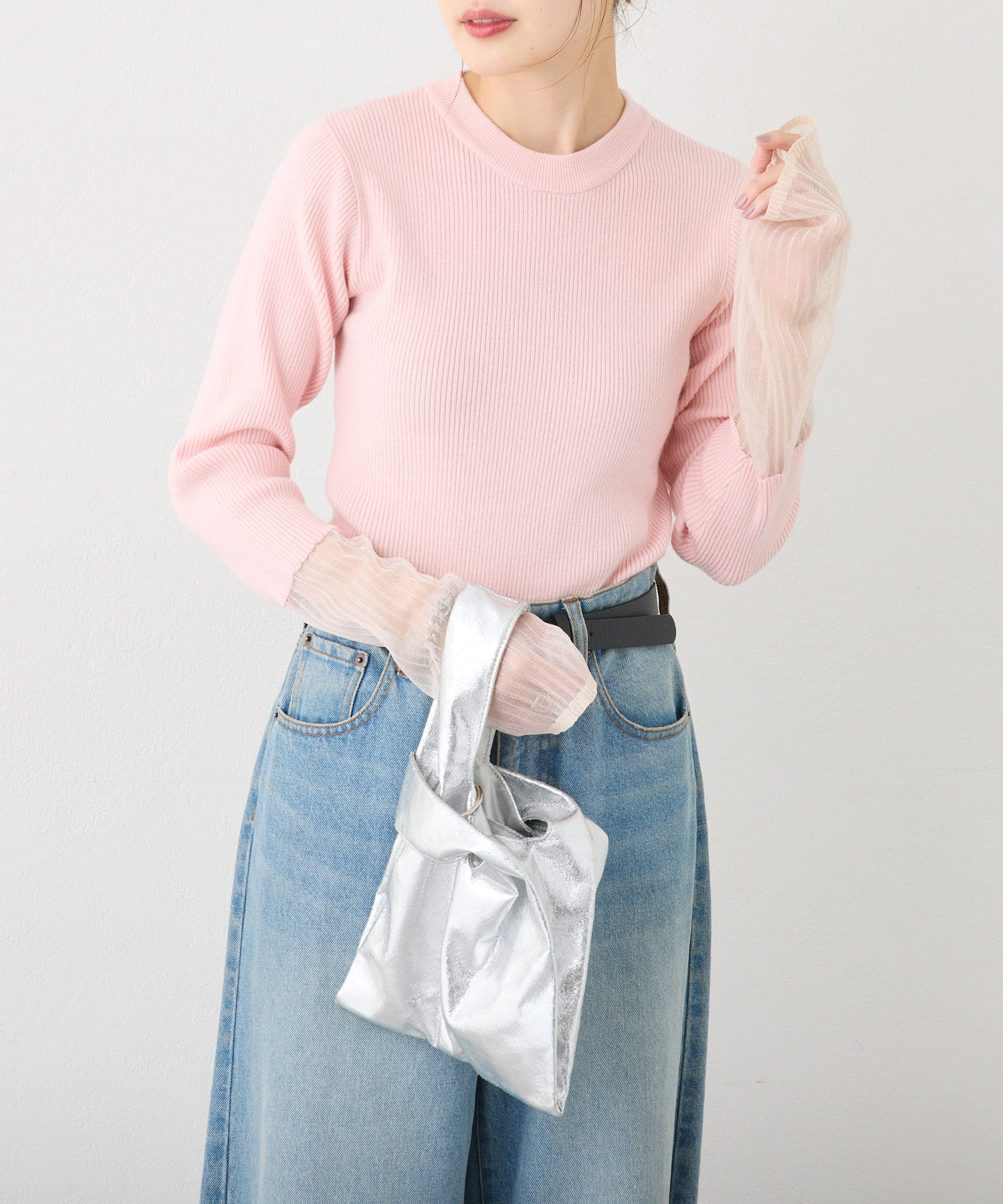袖がレースなのでチラ見せしてもかわいい万能ニットです。