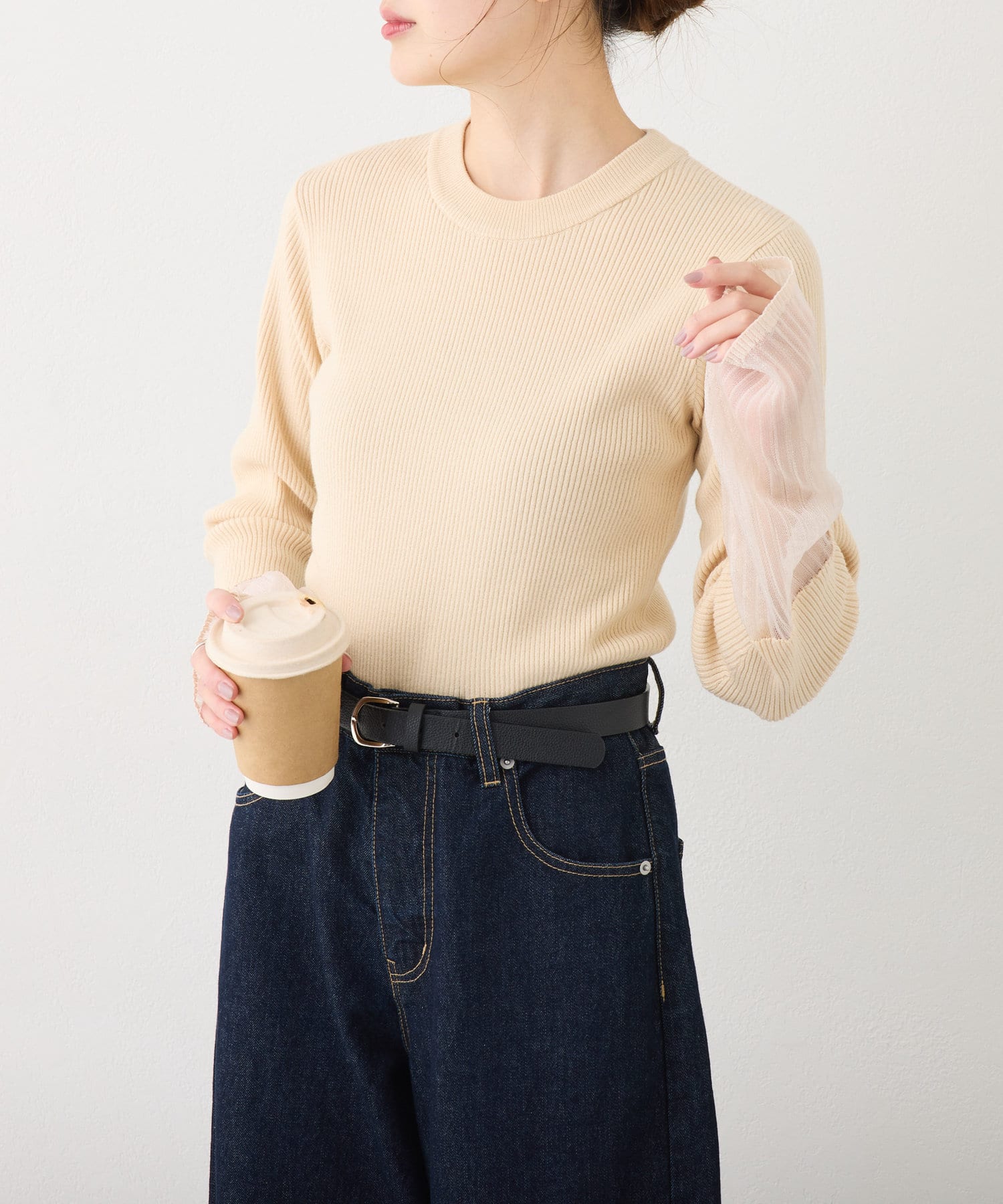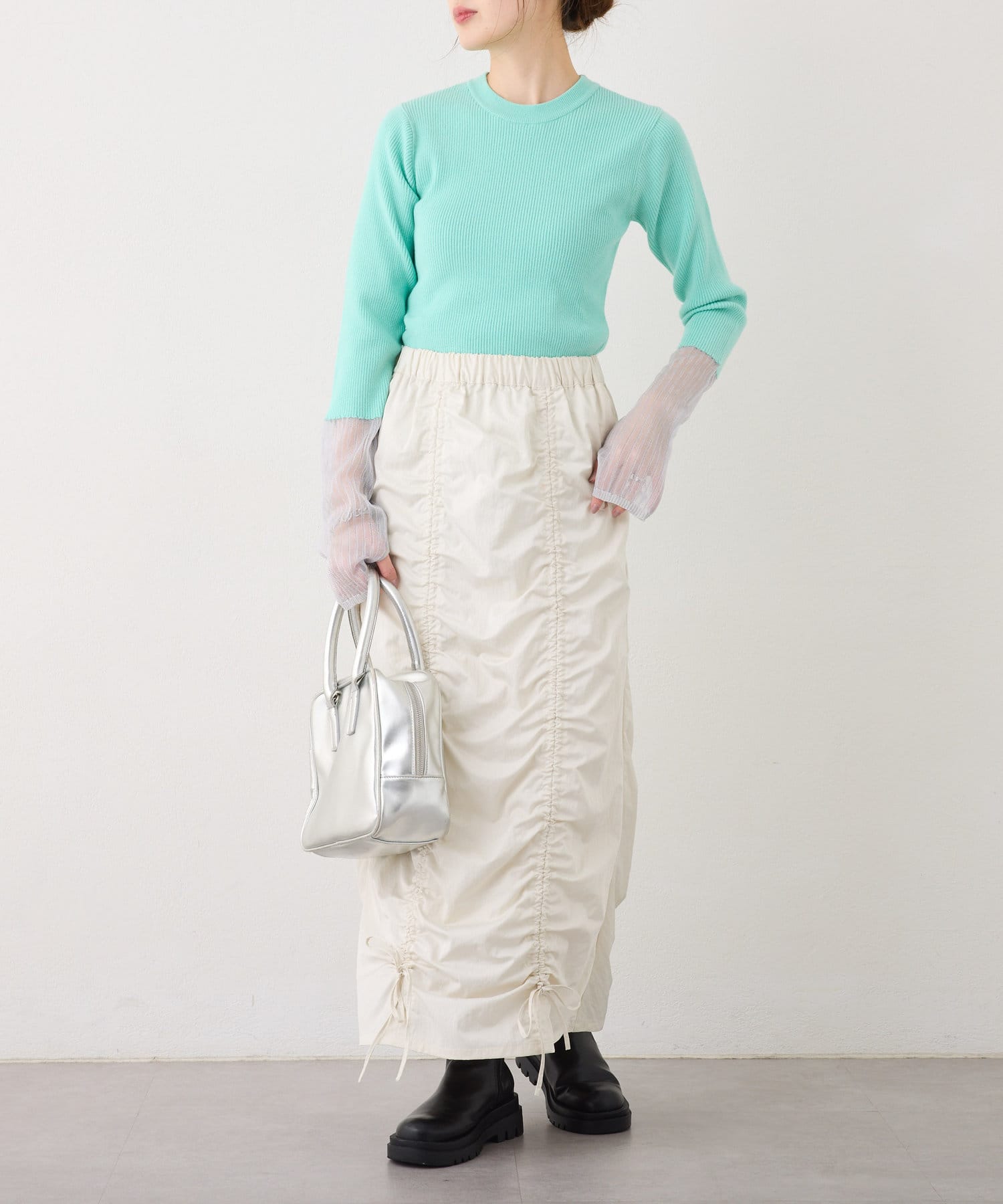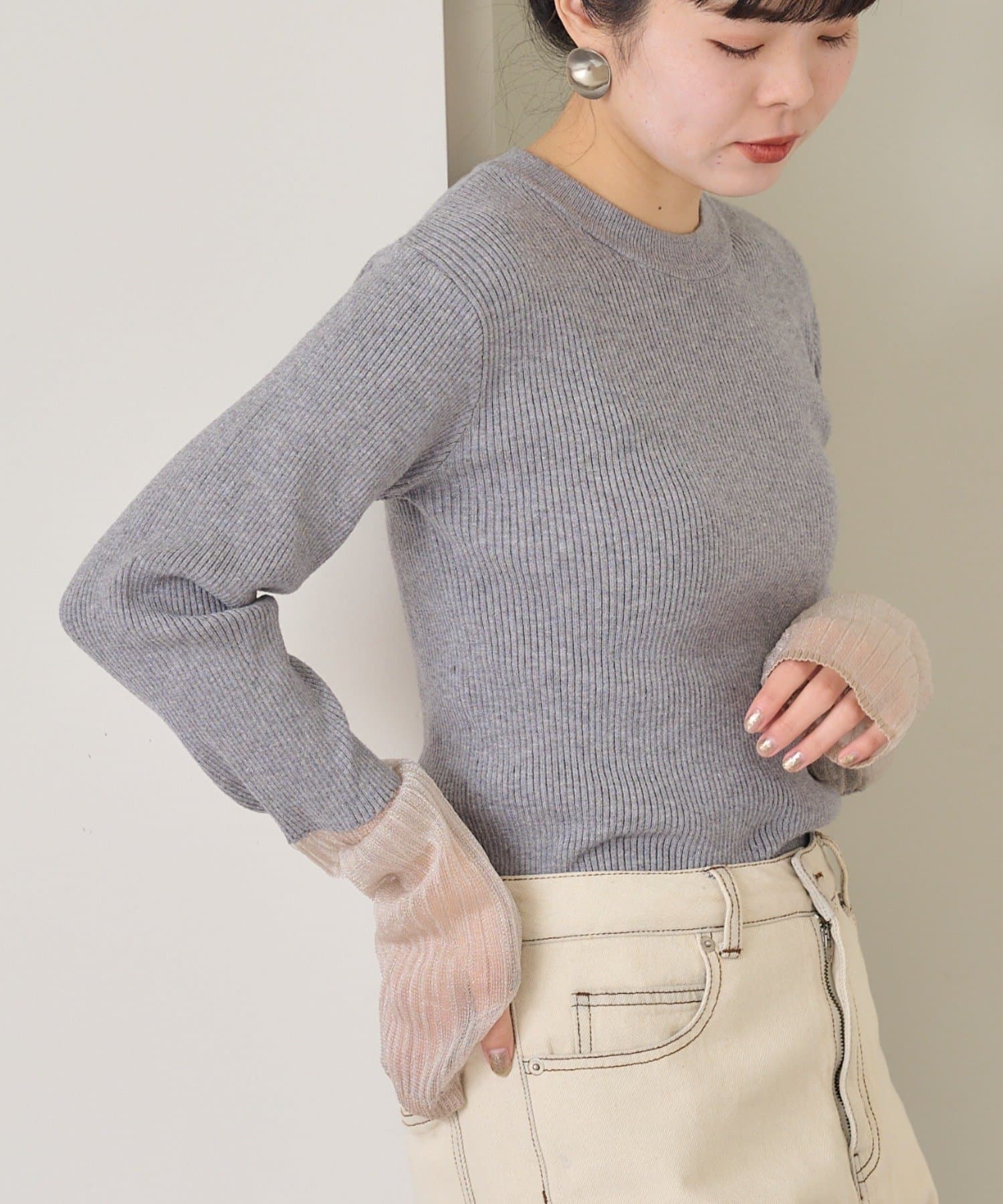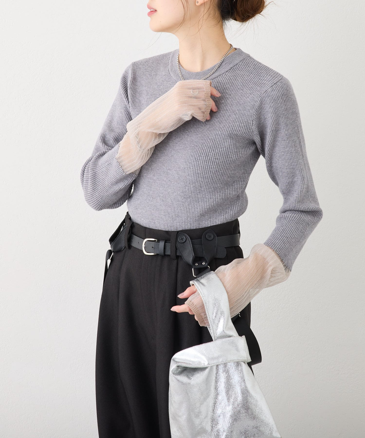 チュール素材の切り替えデザインを施し、周りと差が付くこなれた雰囲気に♩