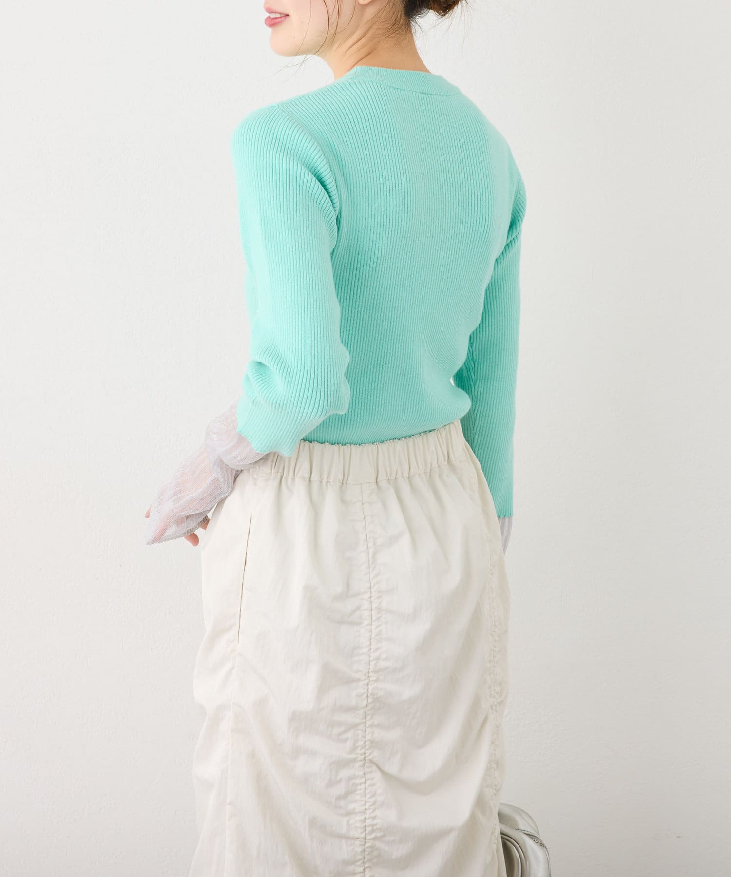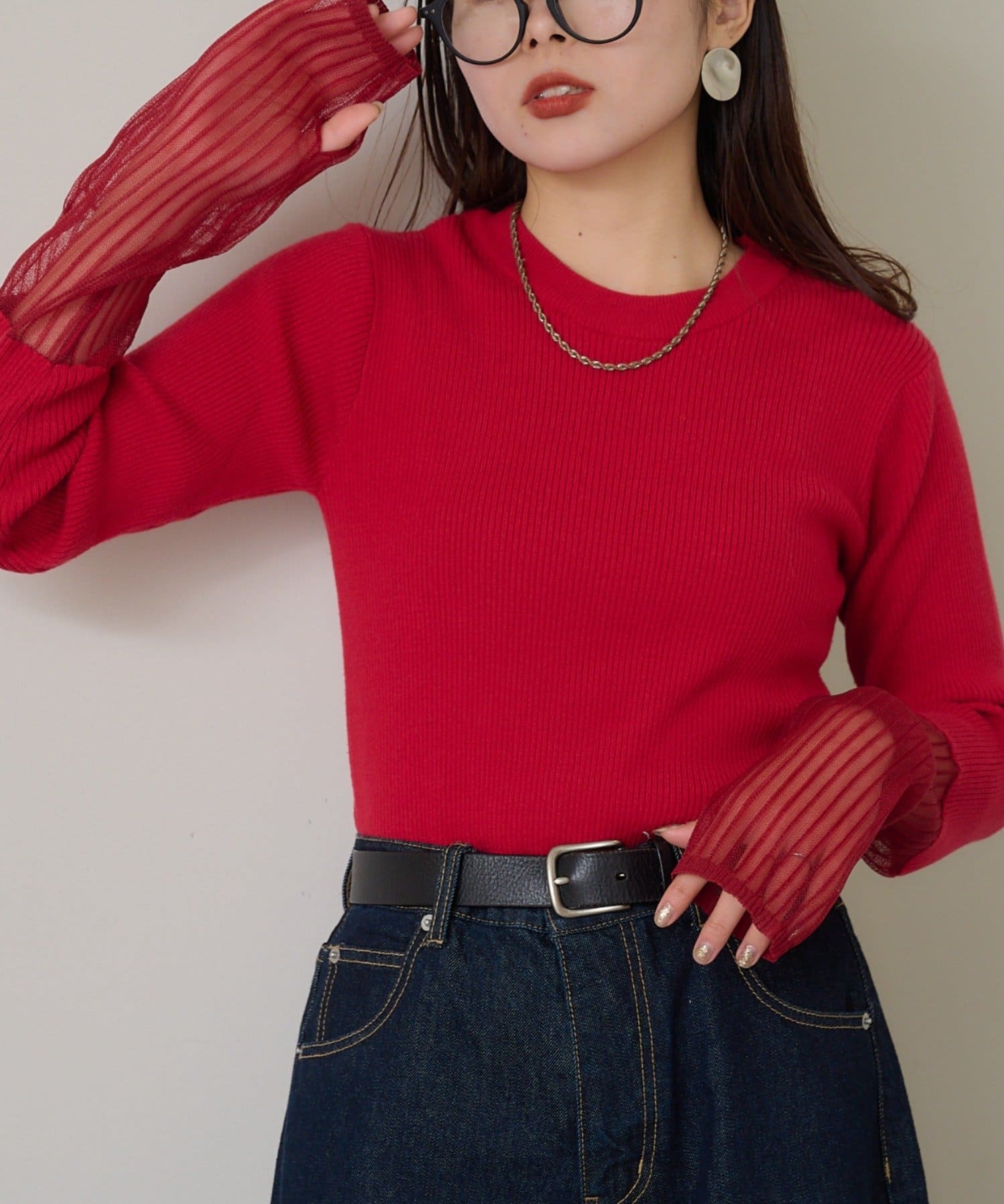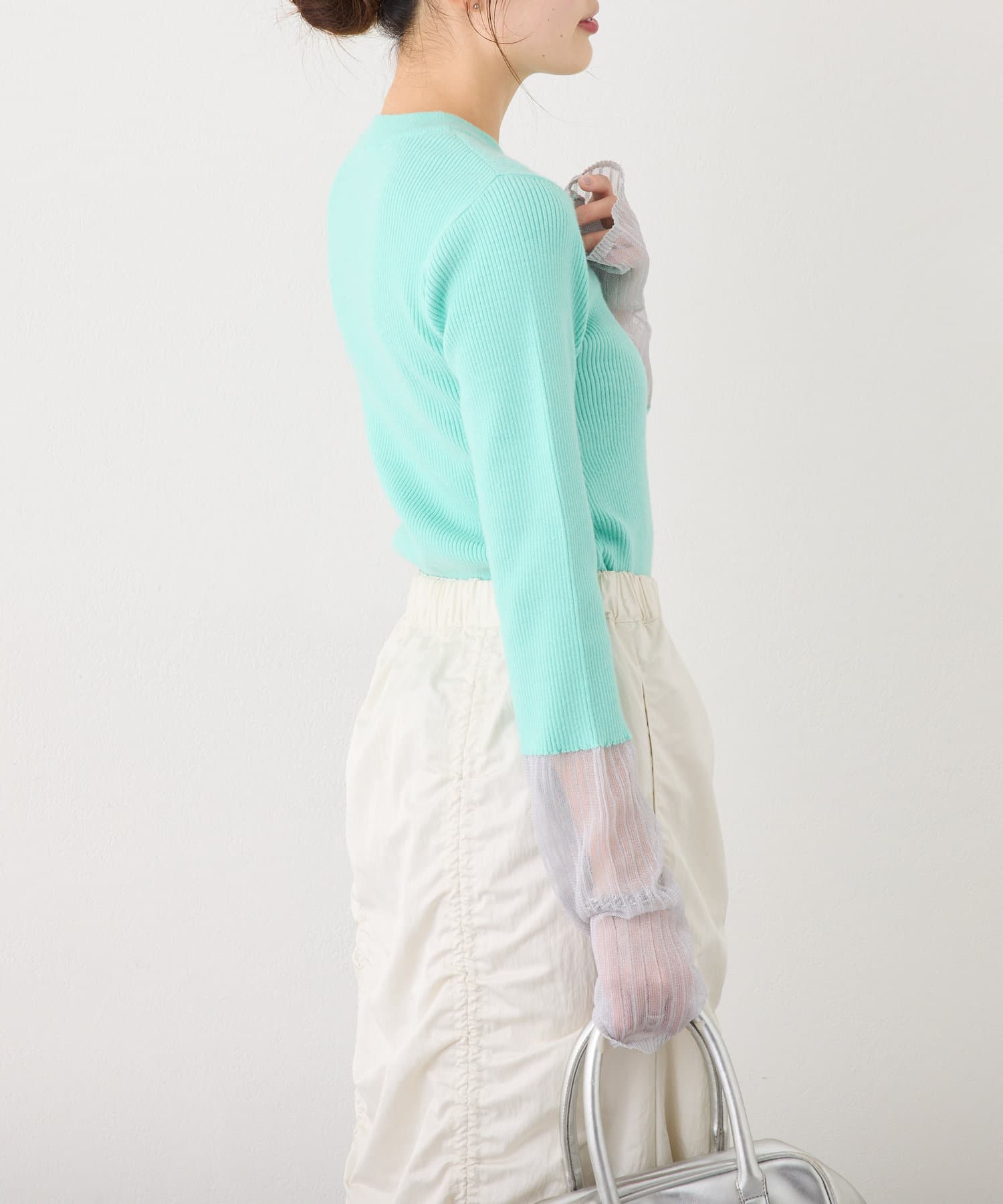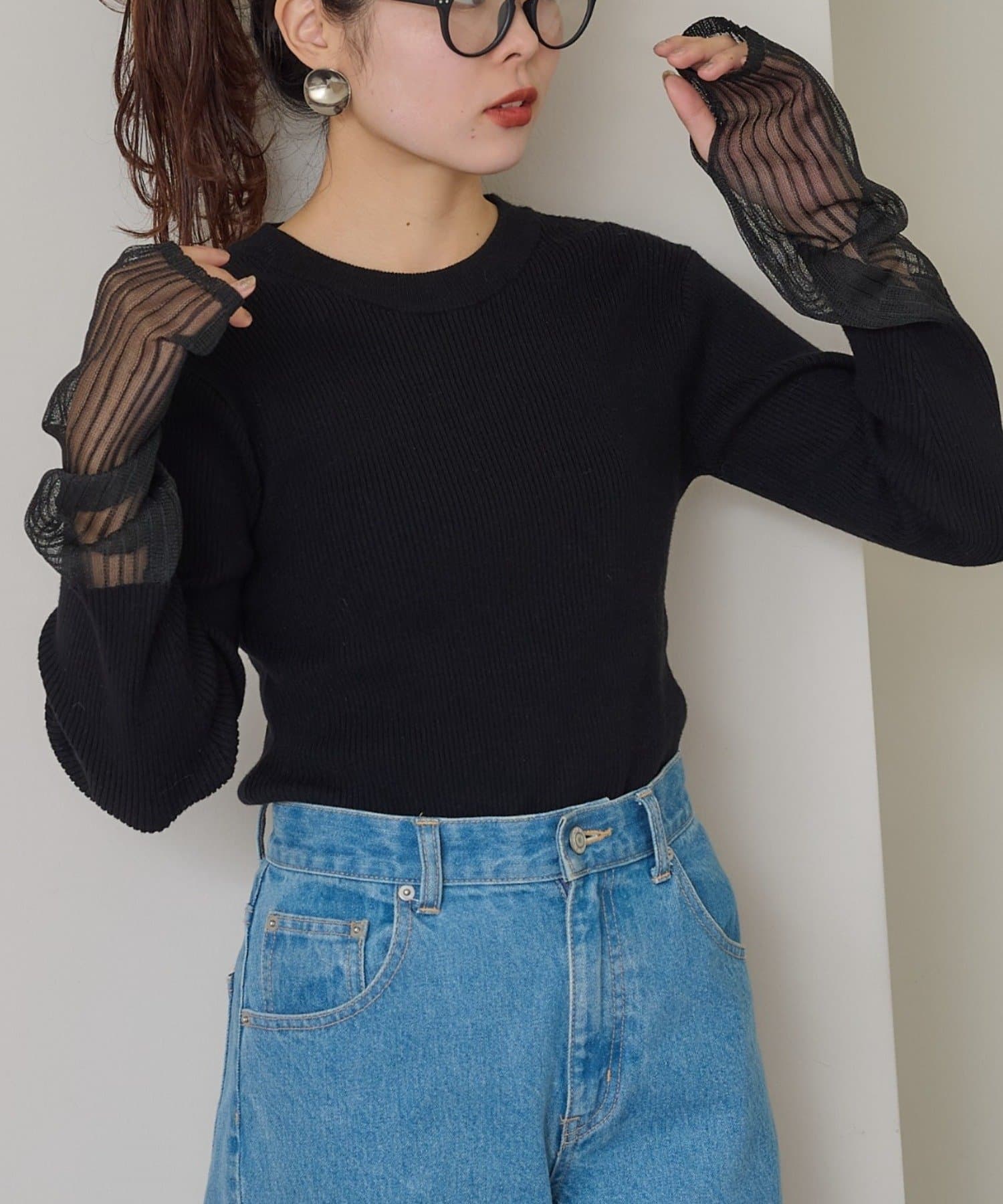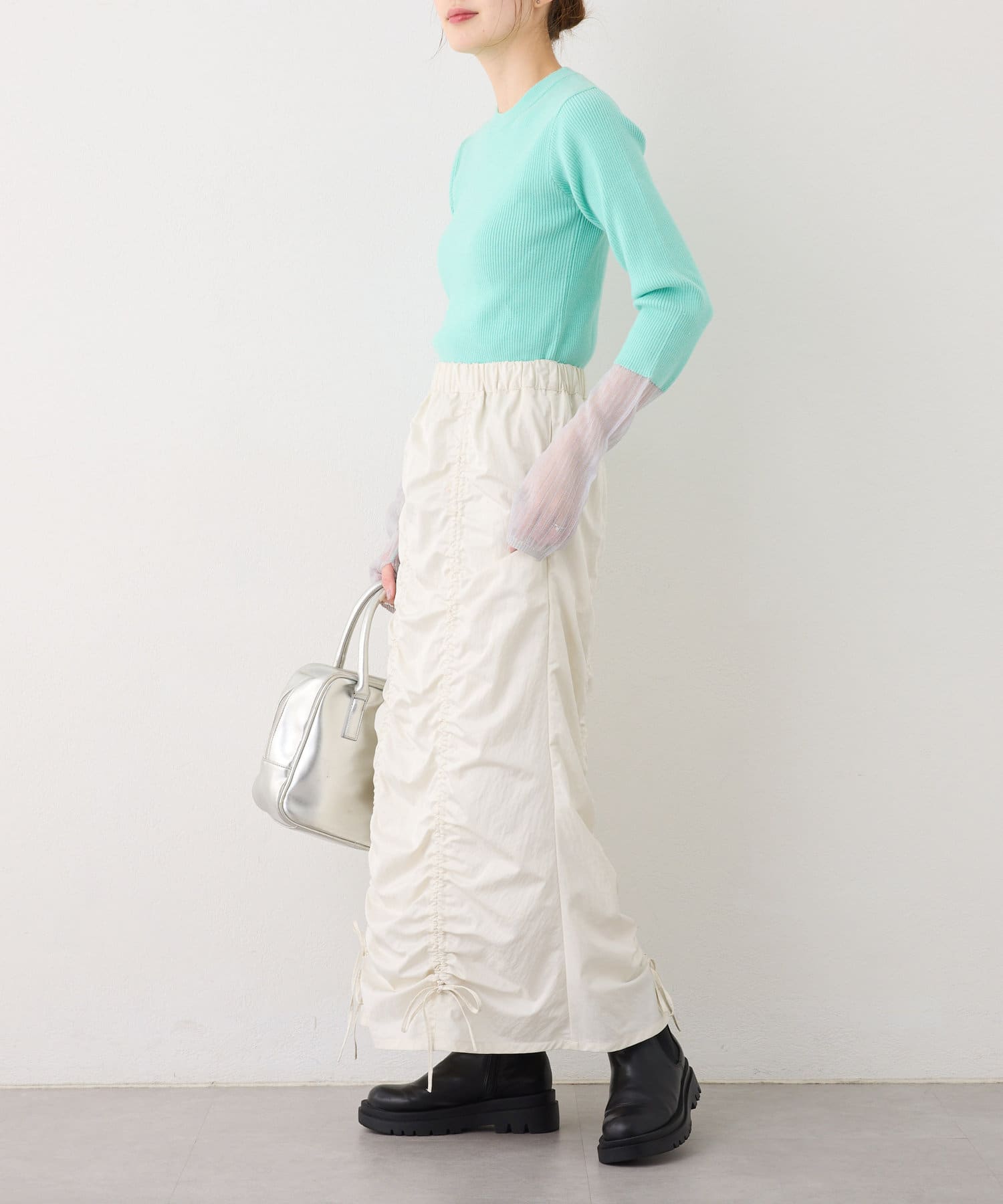 チュール素材の切り替えデザインを施し、周りと差が付くこなれた雰囲気に♩