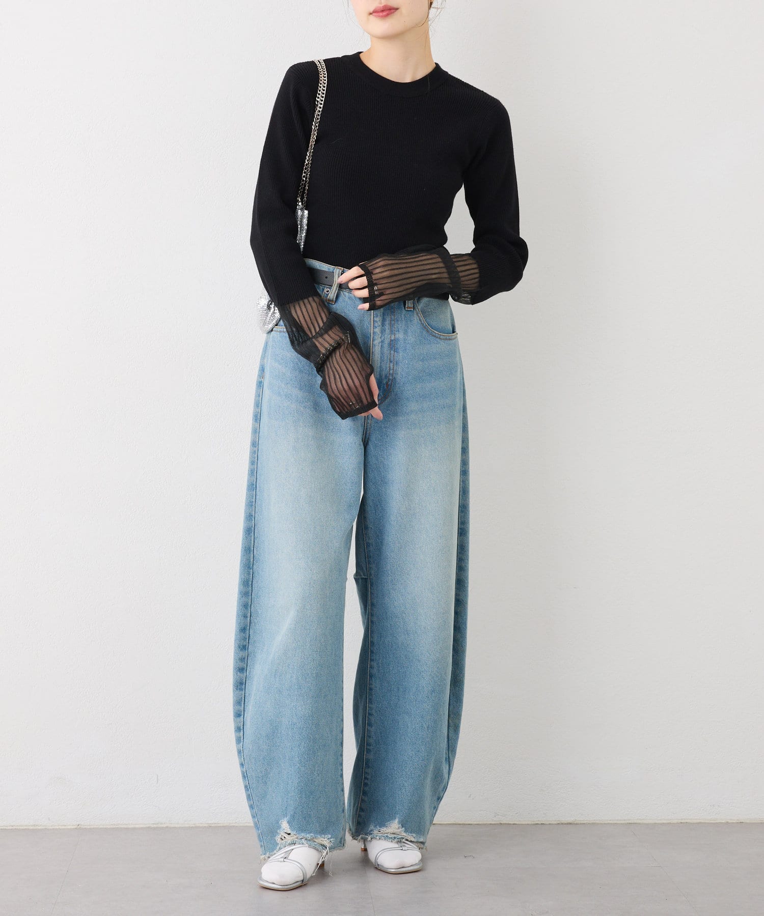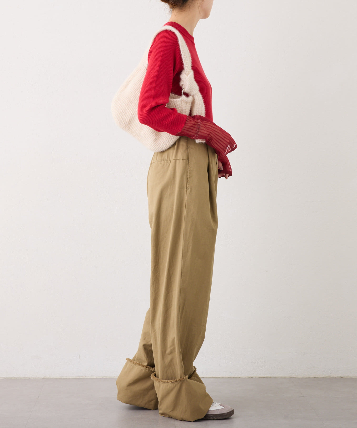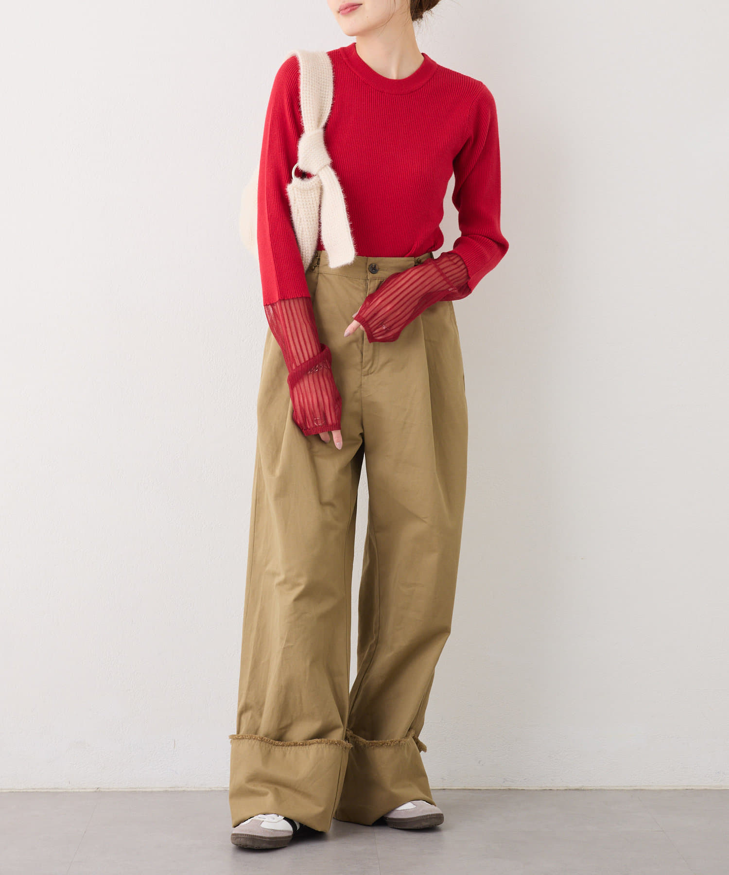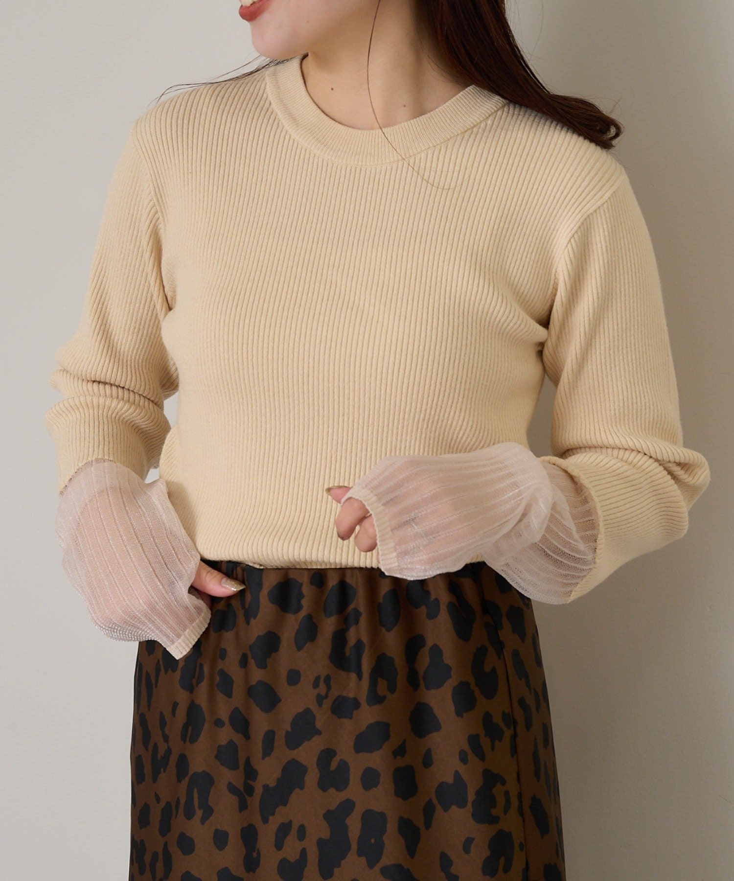 チュール素材の切り替えデザインを施し、周りと差が付くこなれた雰囲気に♩