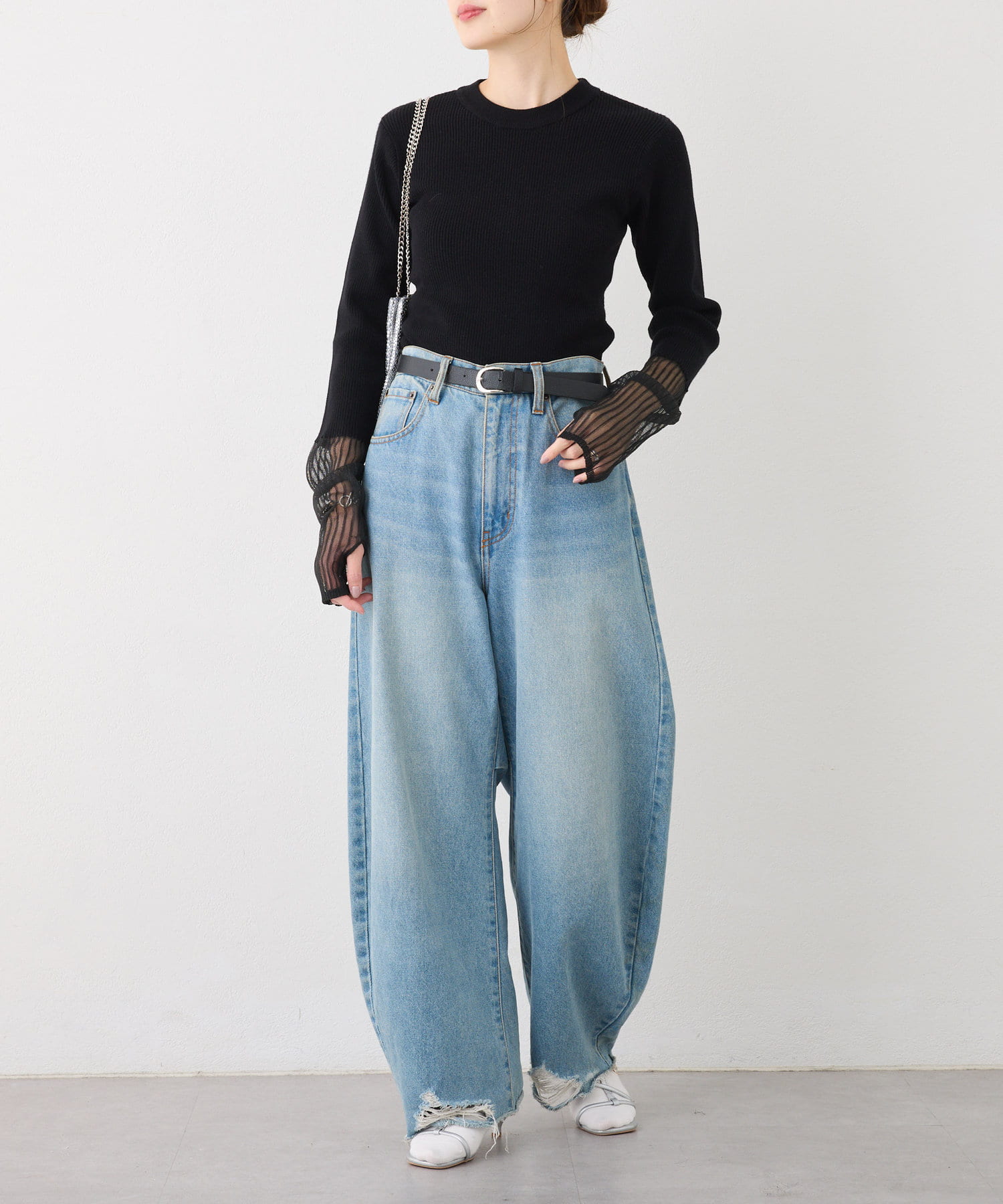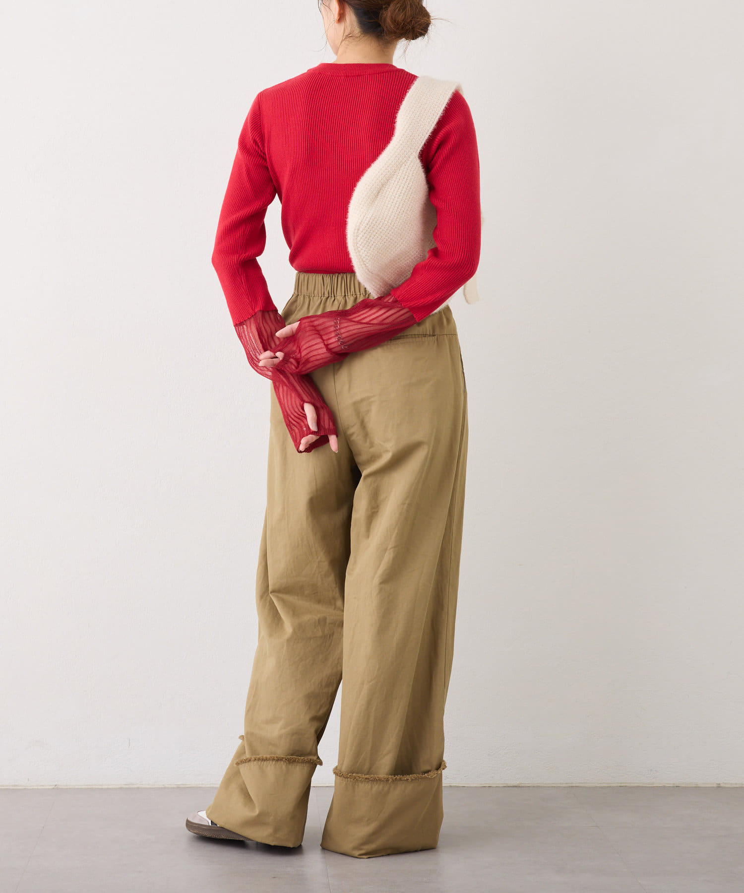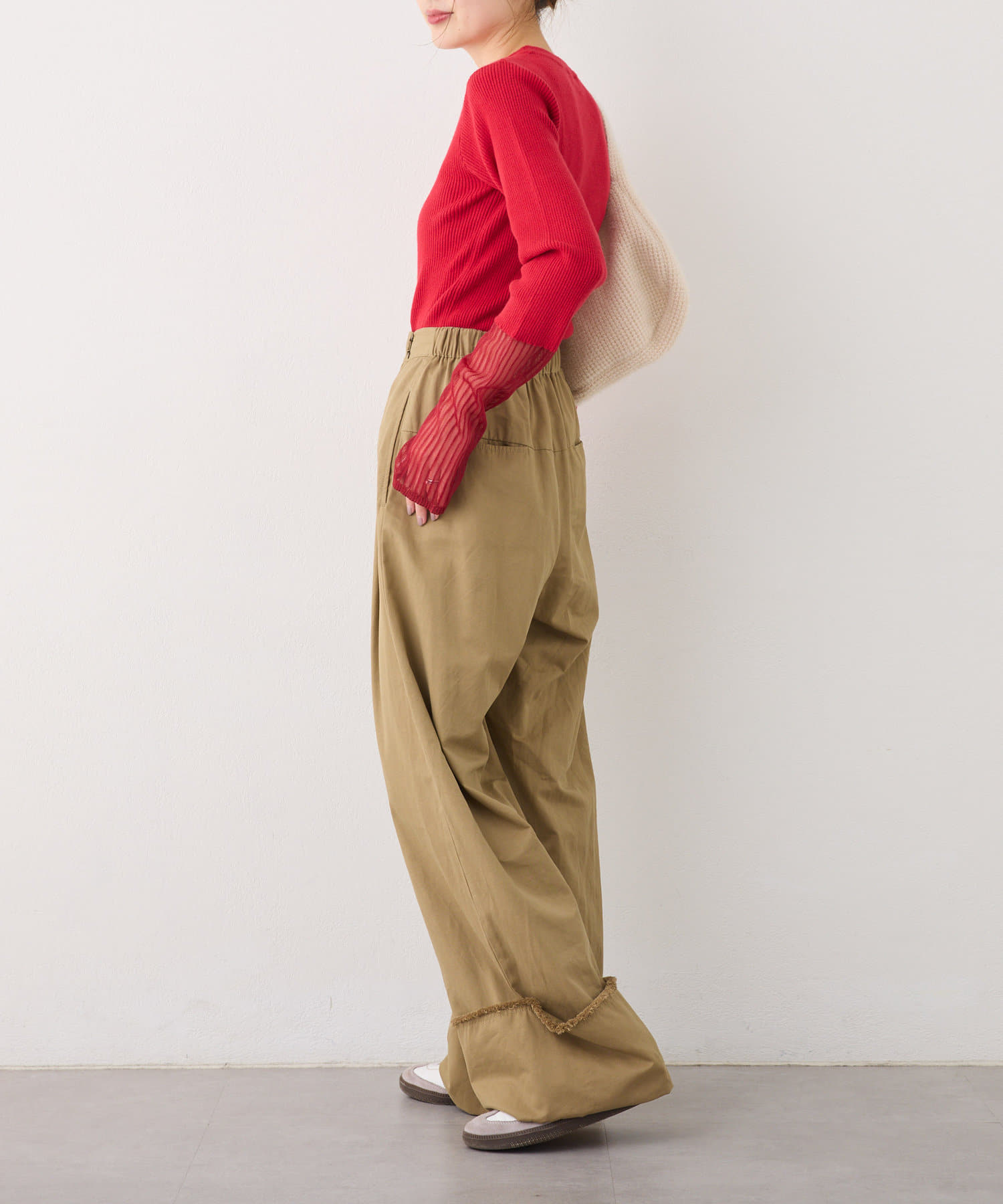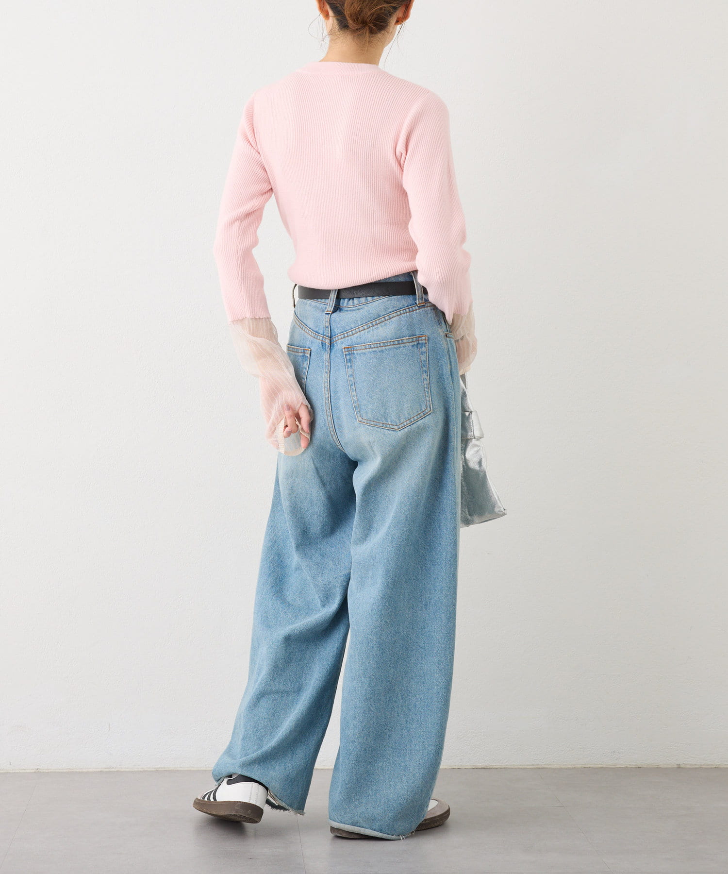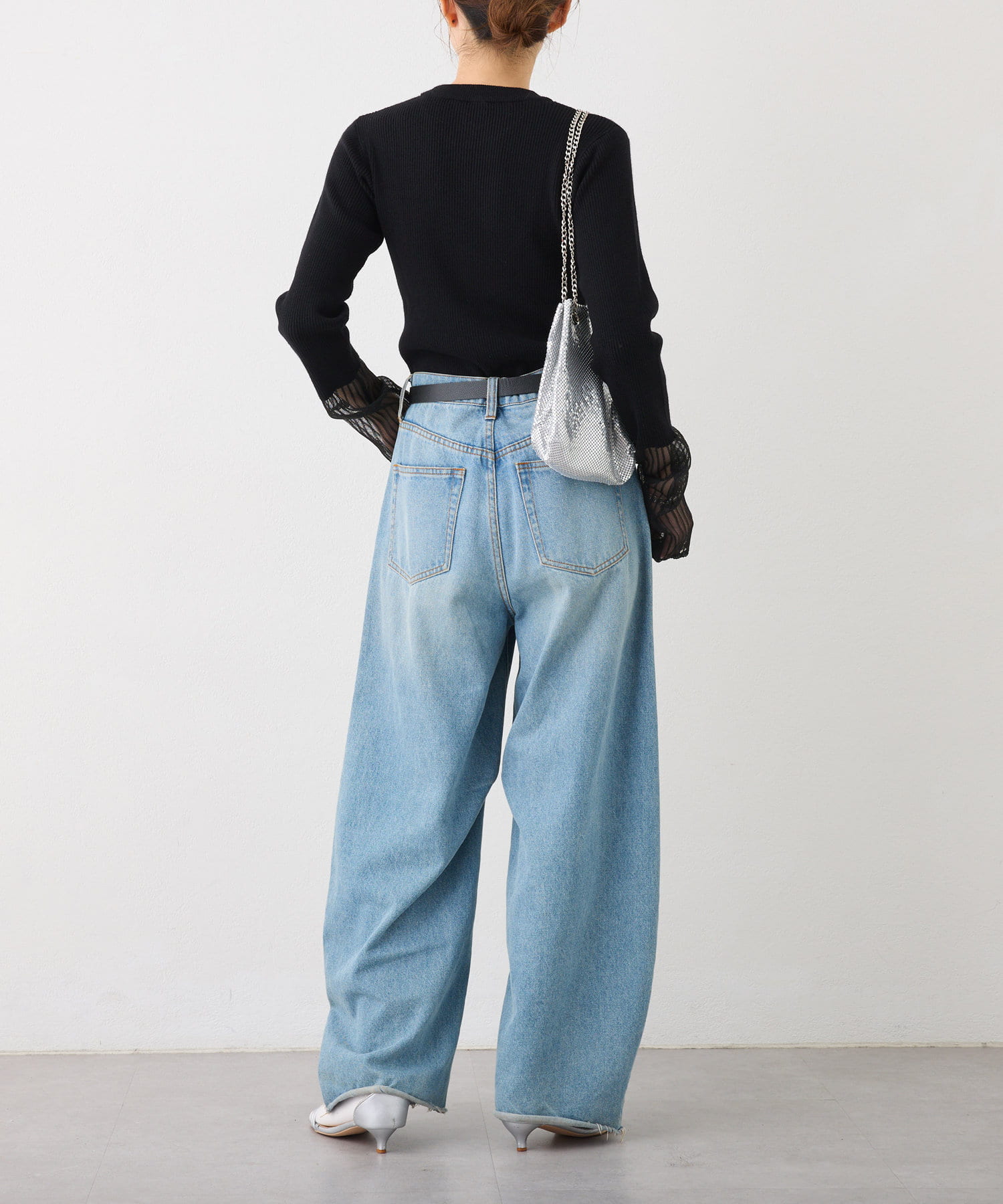 チュール素材の切り替えデザインを施し、周りと差が付くこなれた雰囲気に♩